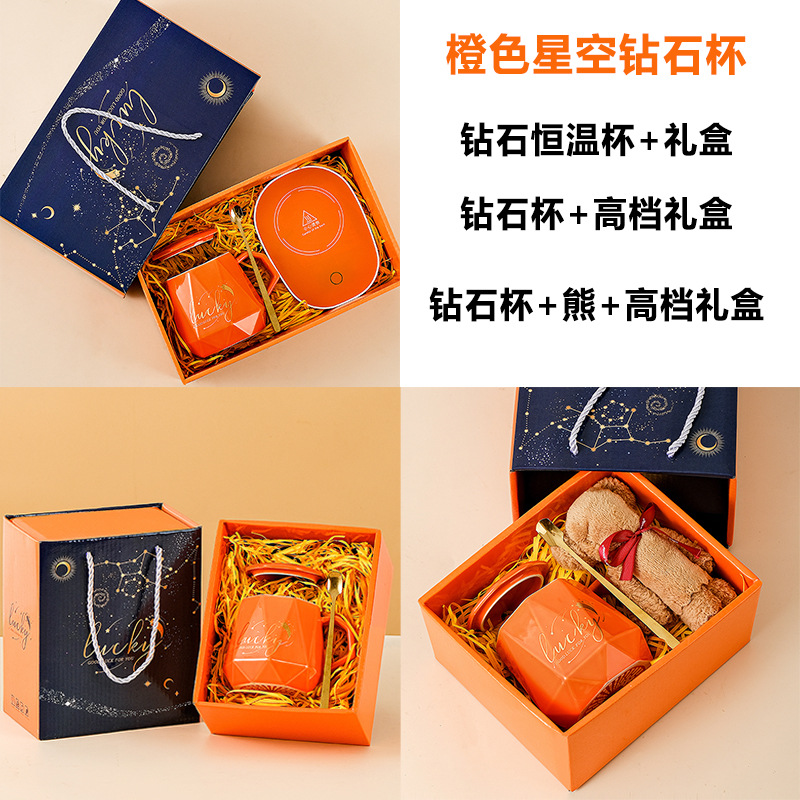 钻石水杯高颜值恒温杯加热暖暖杯陶瓷杯子马克杯礼盒实用小礼品批