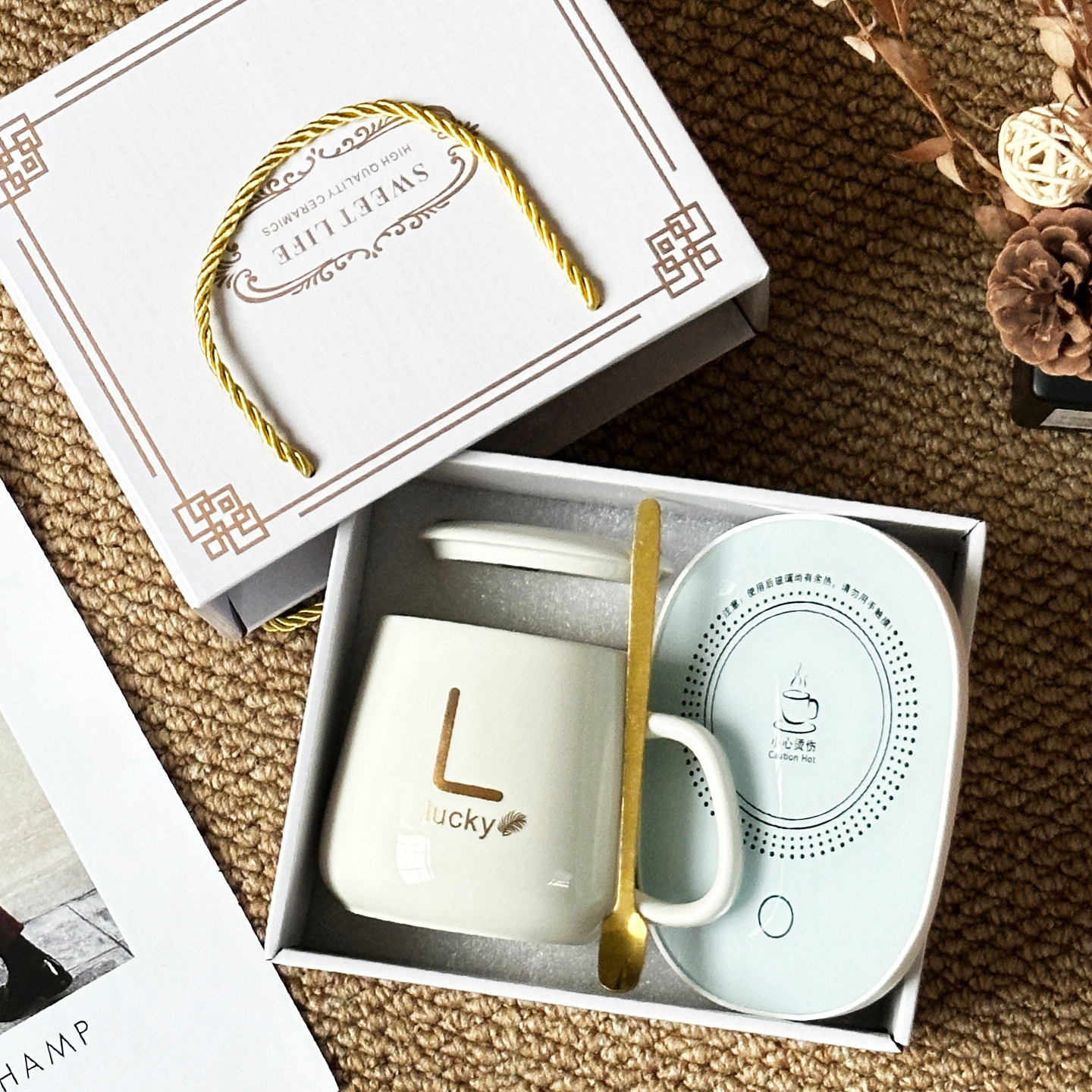 实用55度恒温杯保温加热牛奶陶瓷暖暖杯礼盒装开业礼品活动赠送品