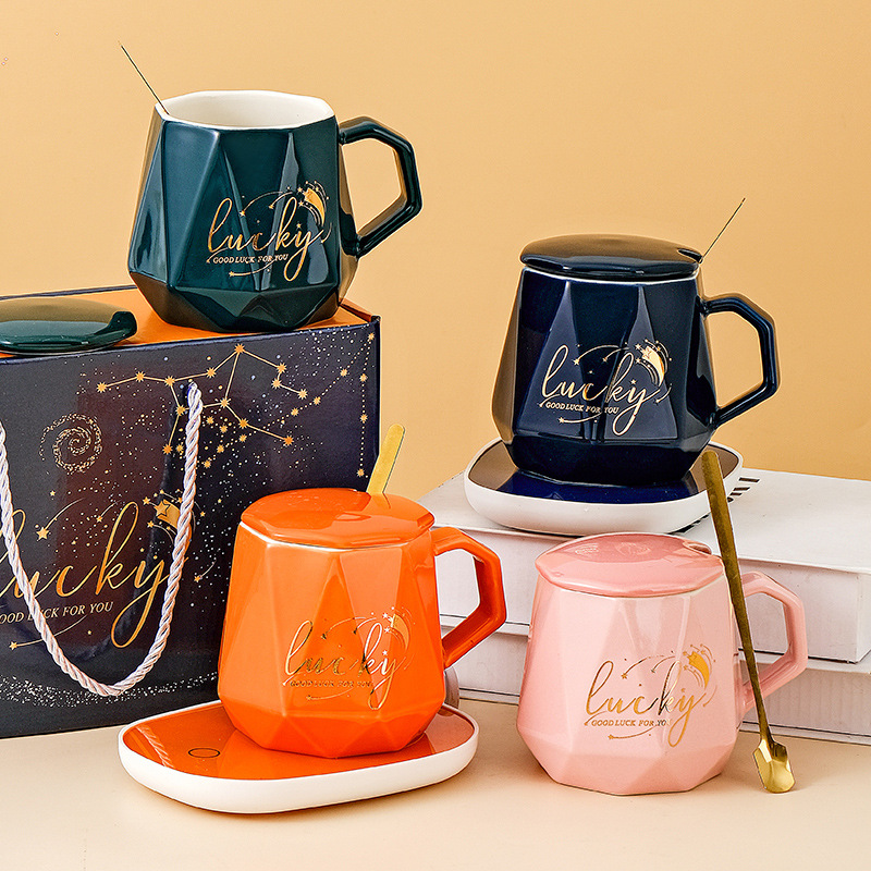 陶瓷杯子马克杯实用开业小礼品钻石水杯礼盒套装高颜值伴手礼批发