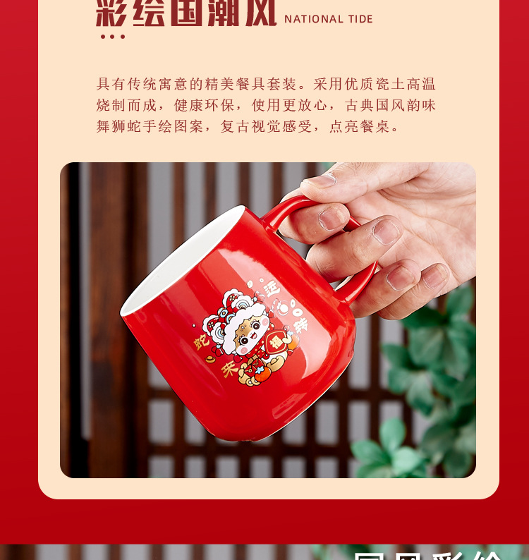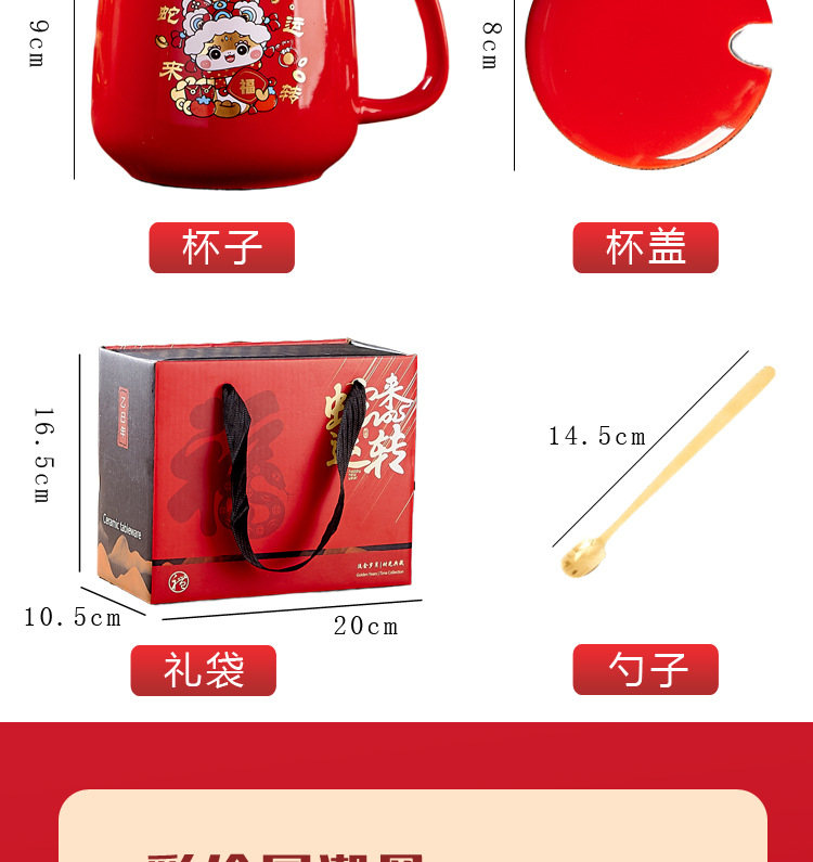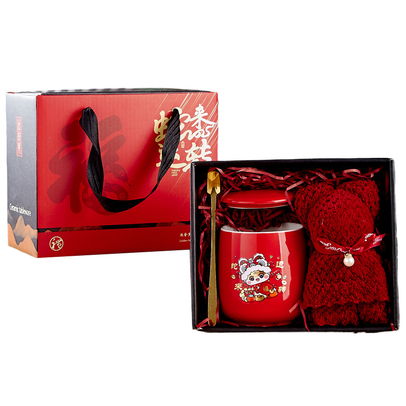 蛇年杯子伴手礼套装水杯礼品陶瓷马克杯带盖带勺礼盒定制蛇年礼盒