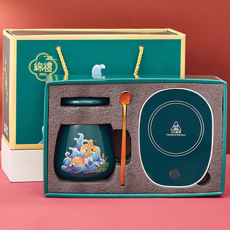 锦鲤暖暖杯恒温杯加热杯陶瓷马克杯咖啡杯套装水杯实用礼品伴手礼