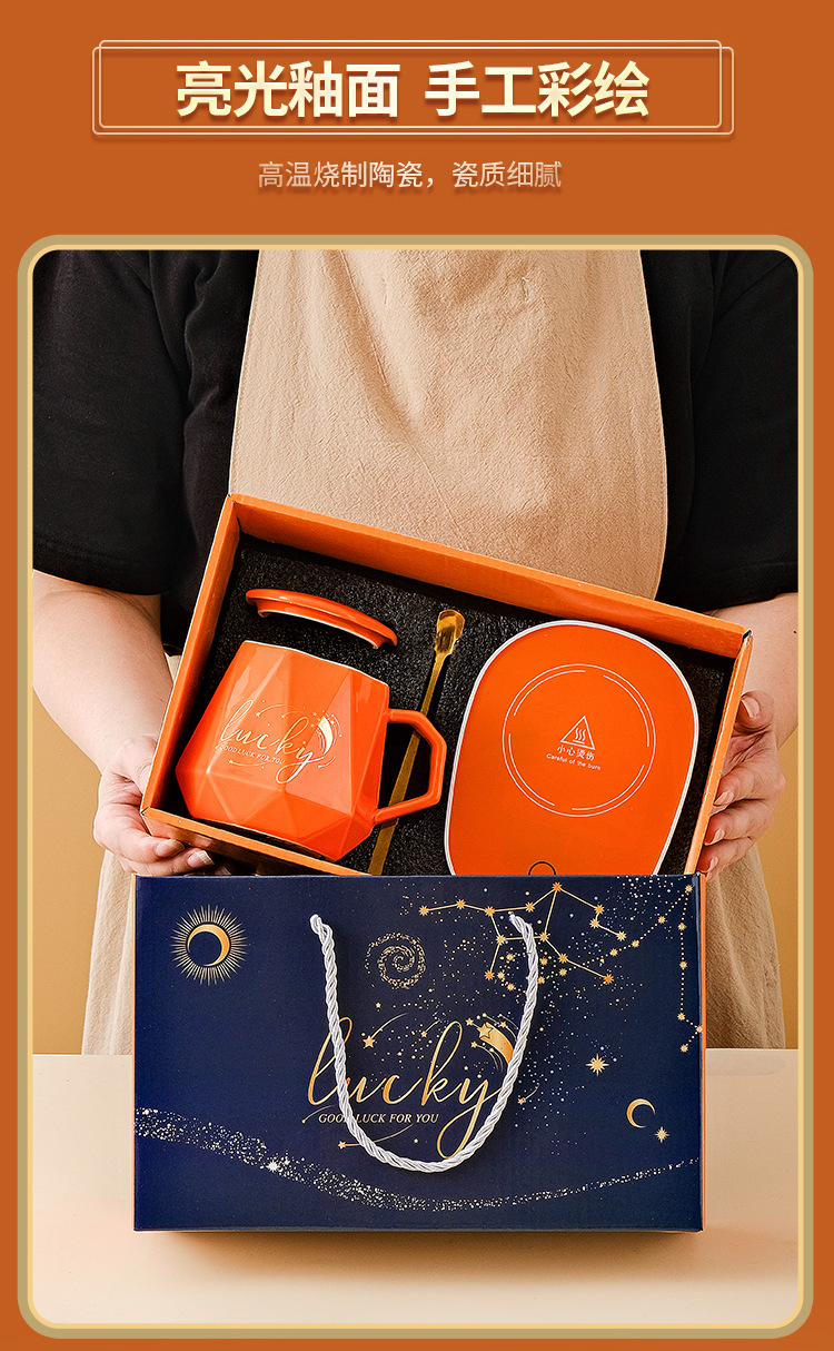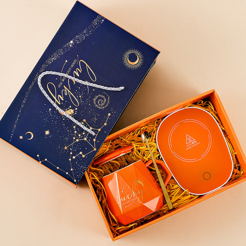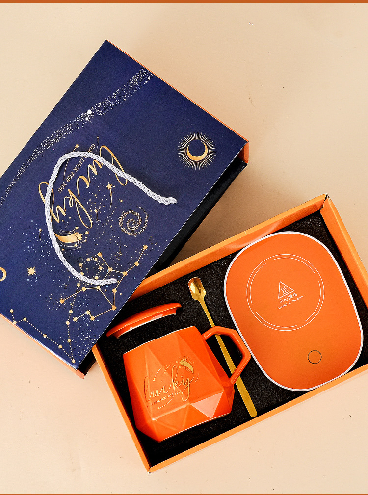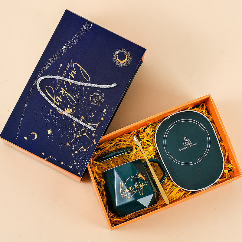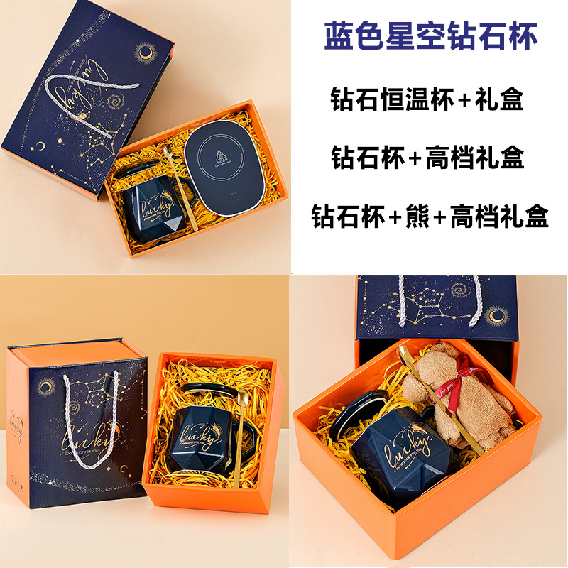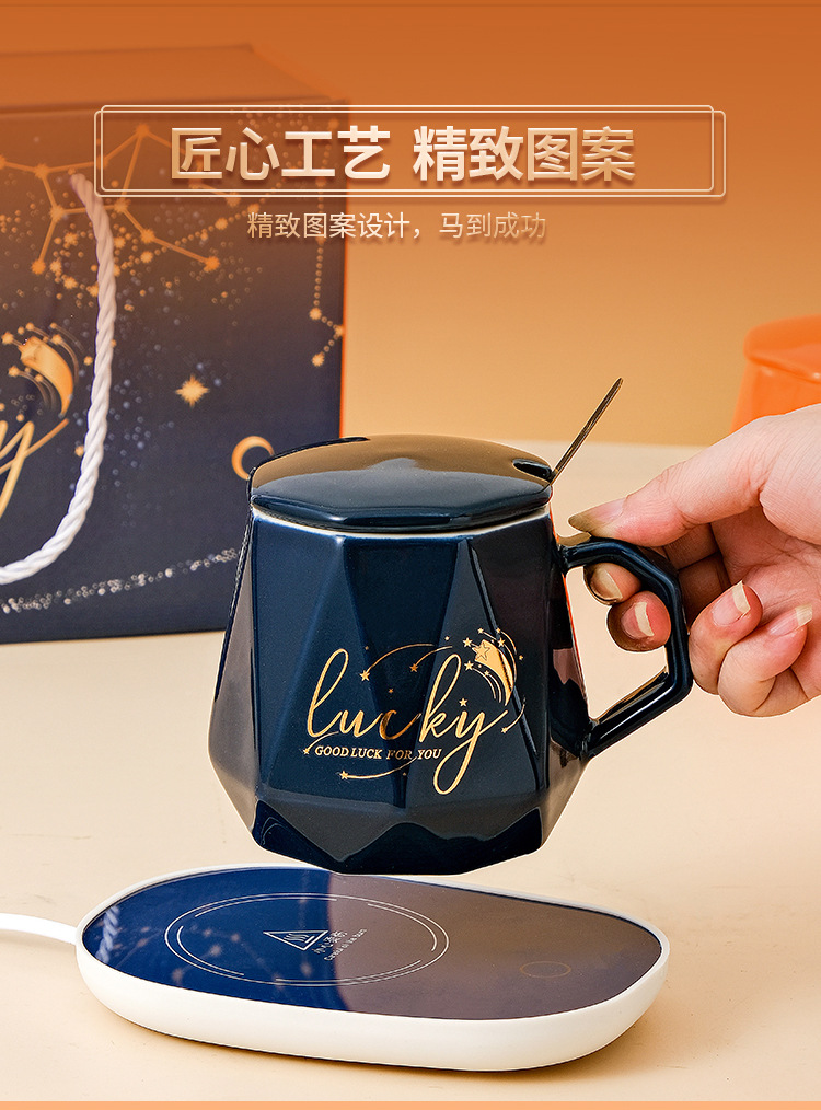 钻石水杯恒温加热杯暖暖杯套装陶瓷杯子马克杯礼盒装小礼品伴手礼