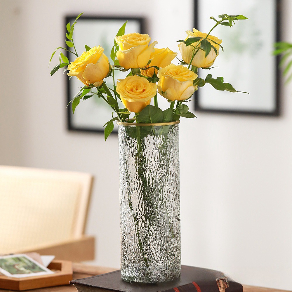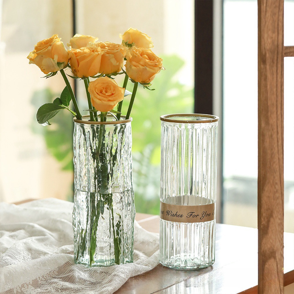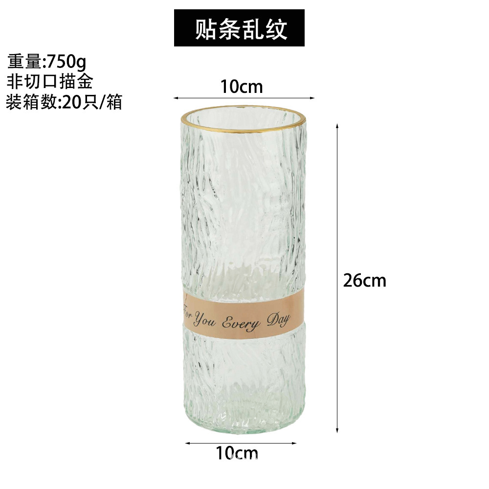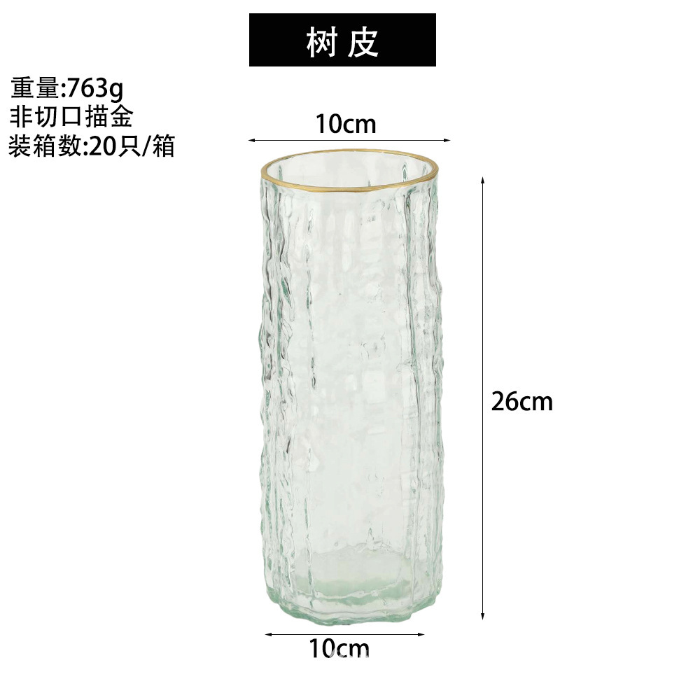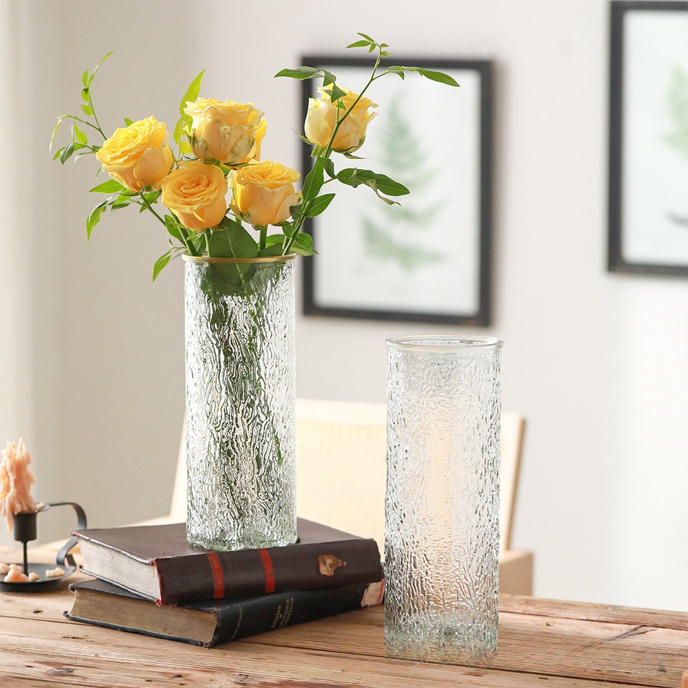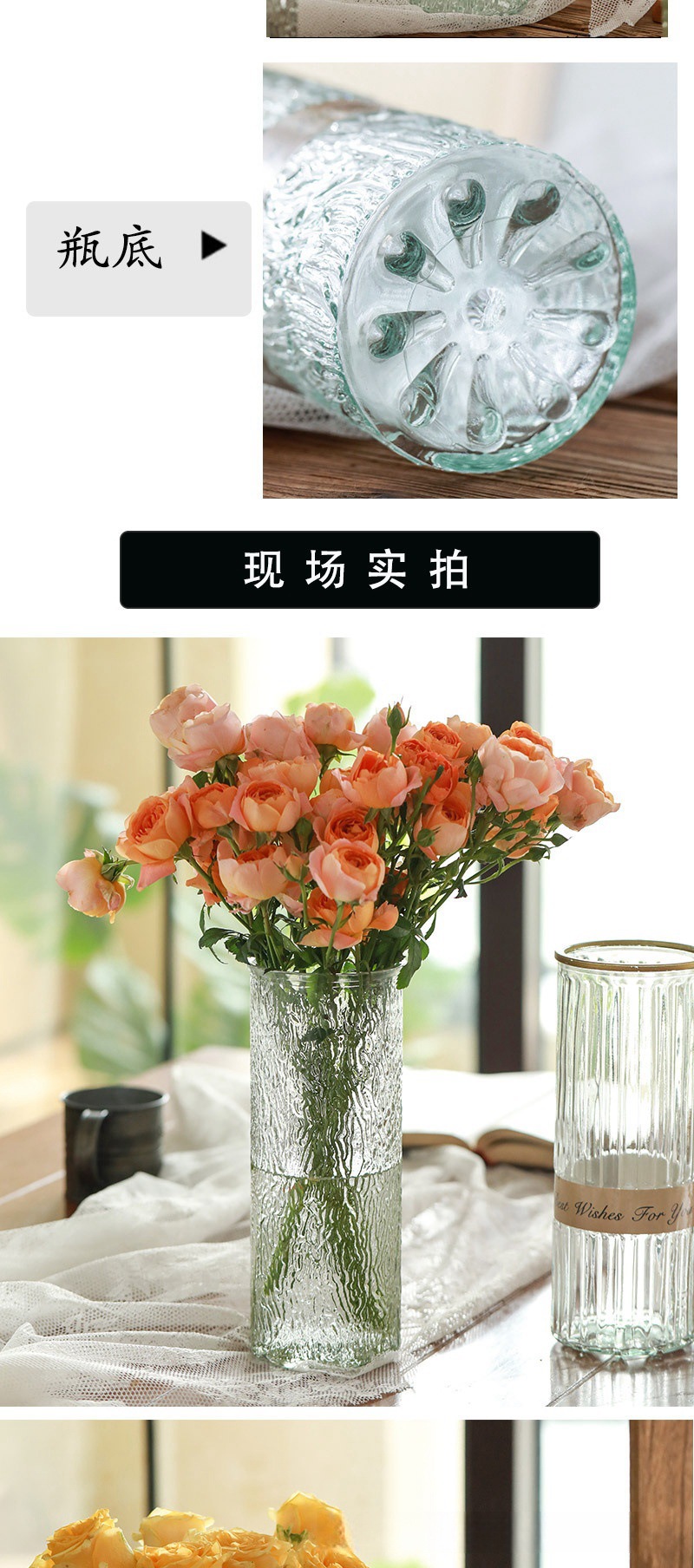 透明玻璃花瓶创意浮雕冰川纹客厅餐桌摆件水养鲜花仿真花插花器