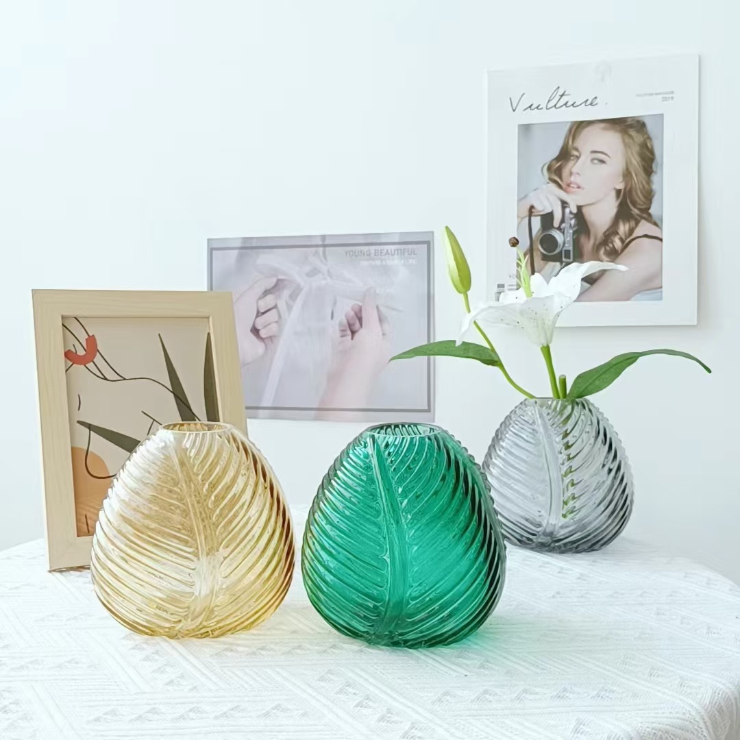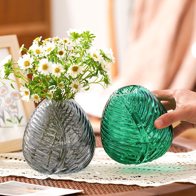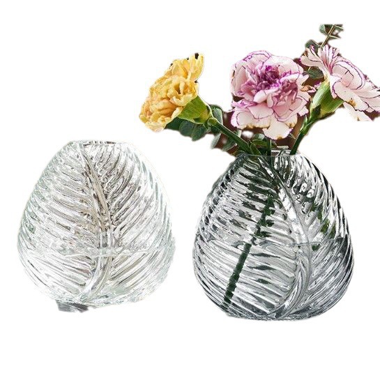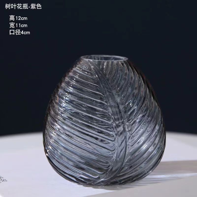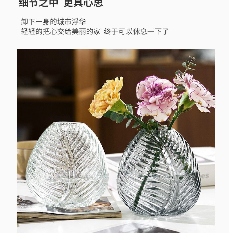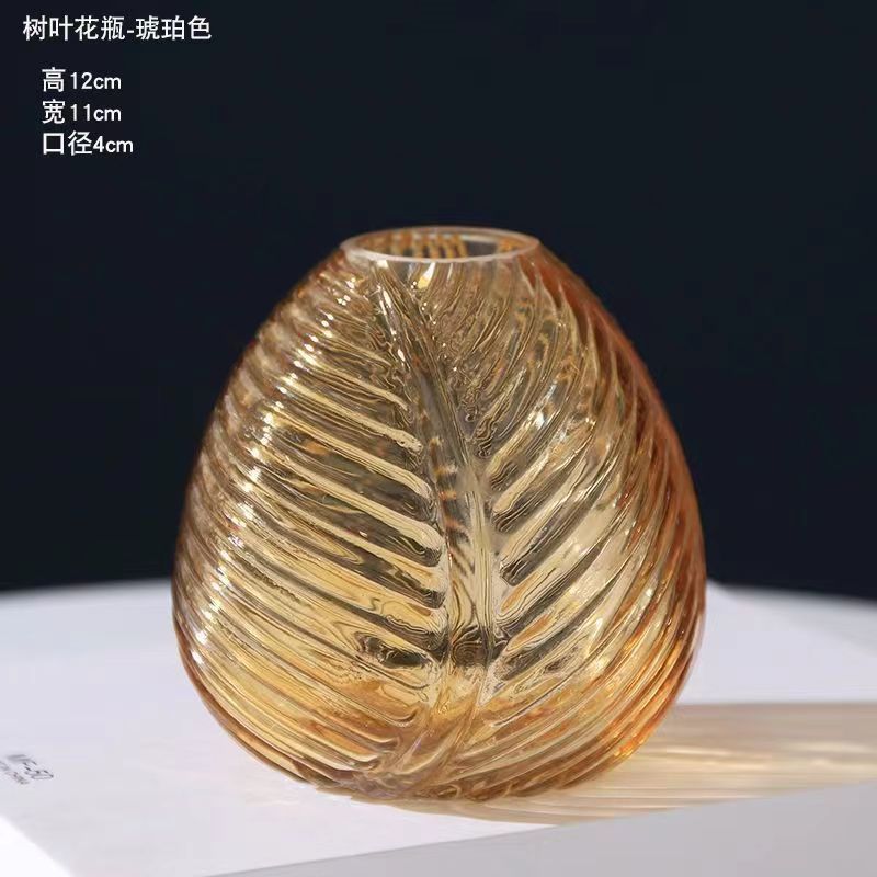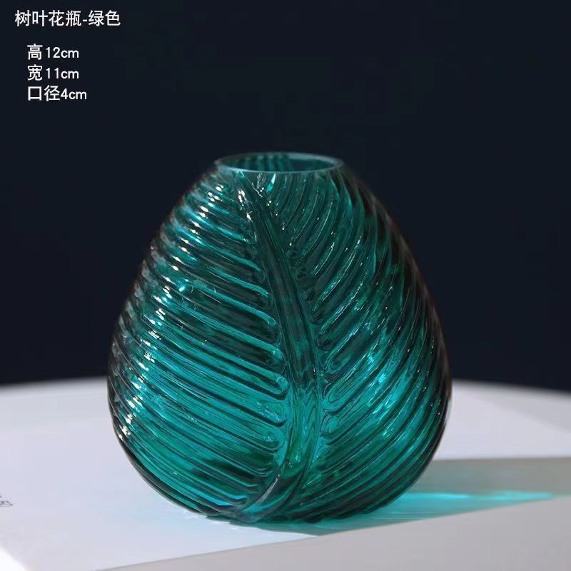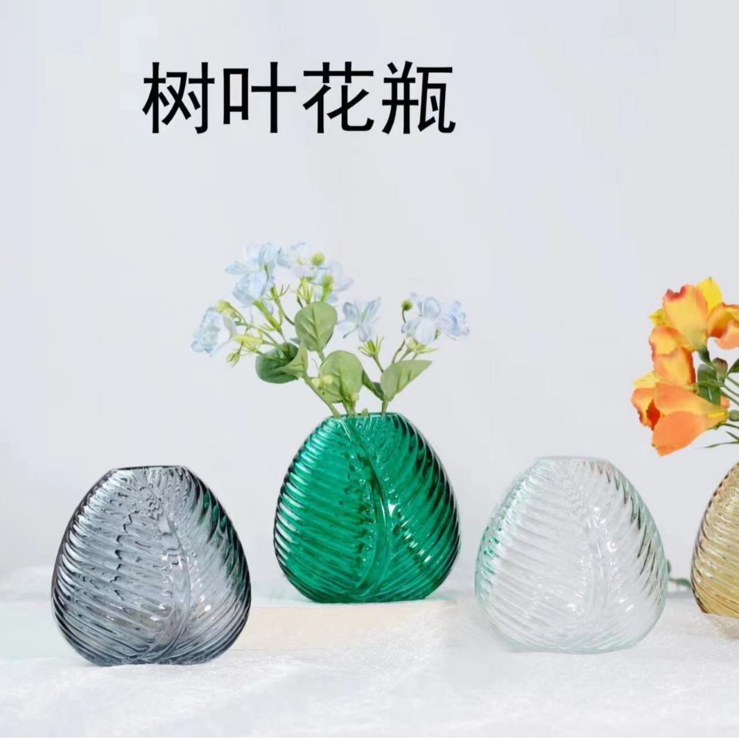 批发轻奢北欧树叶纹理创意玻璃花瓶水养鲜花客厅摆件插花瓶代发