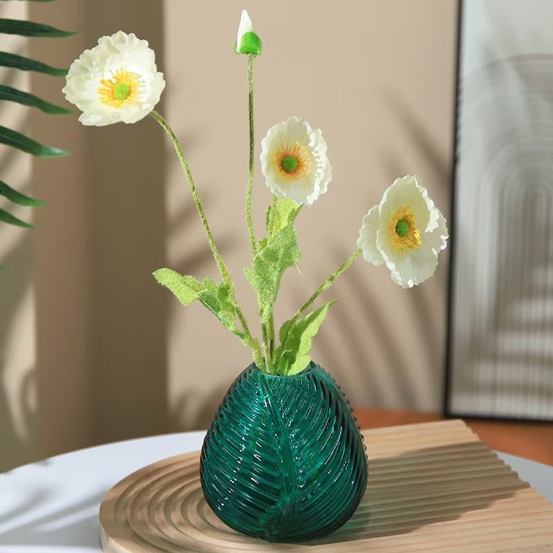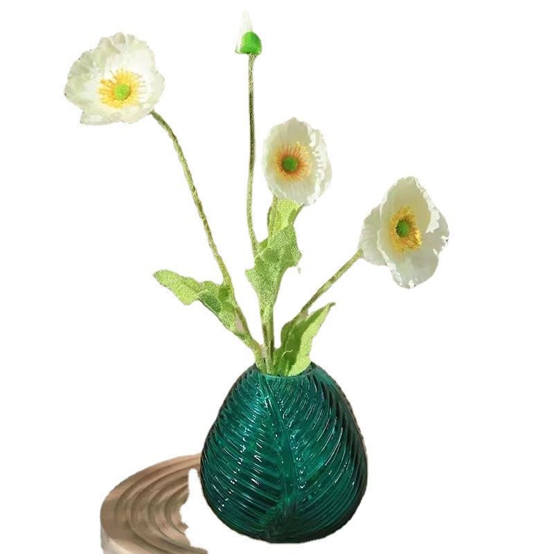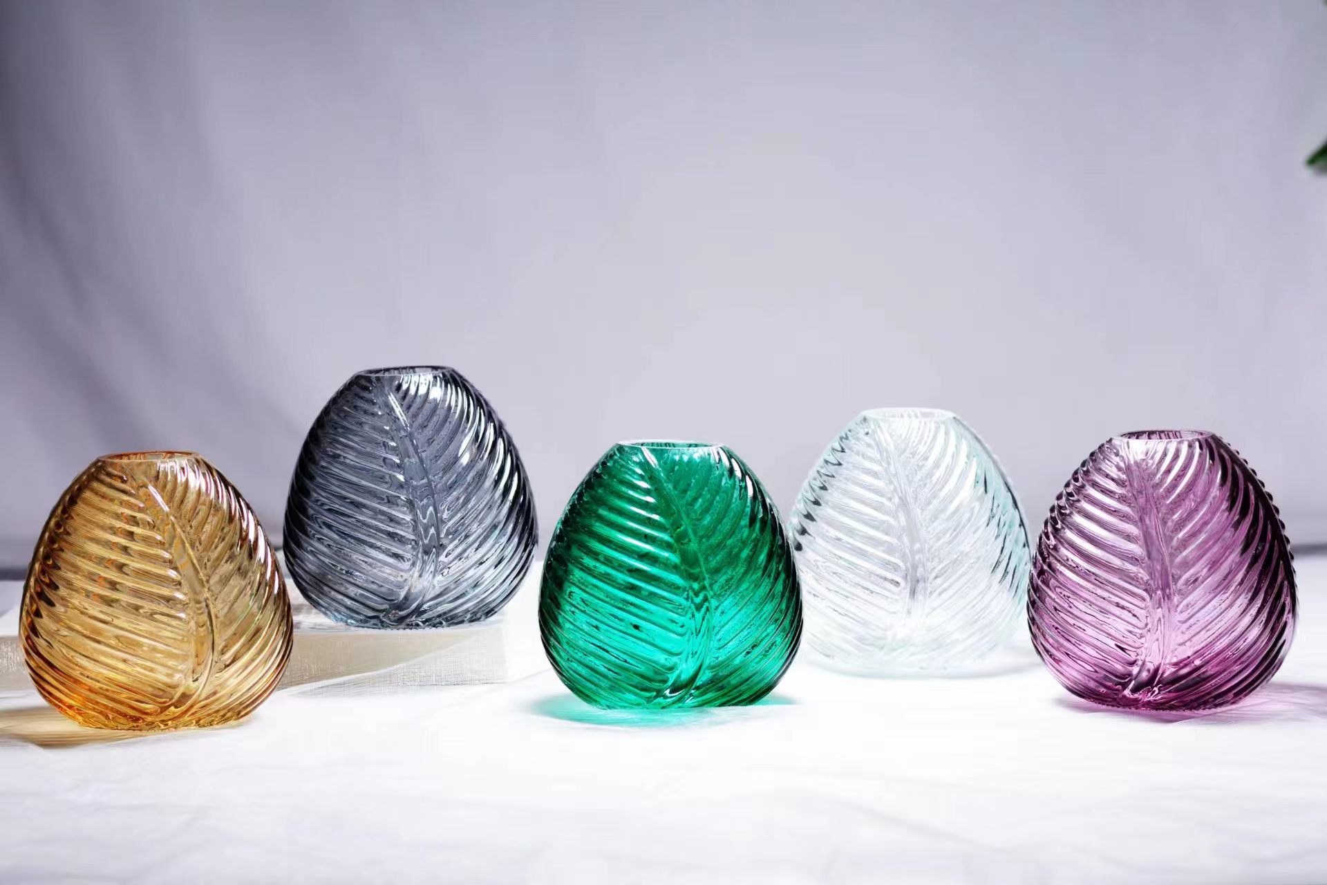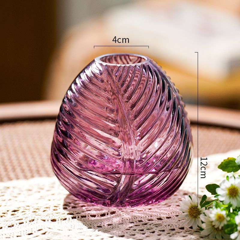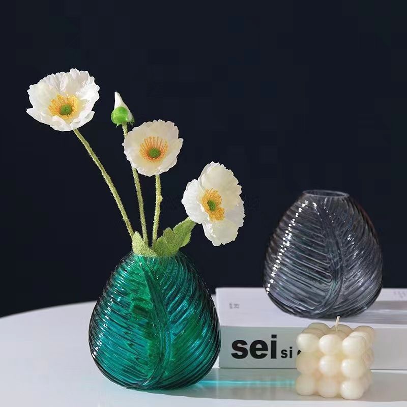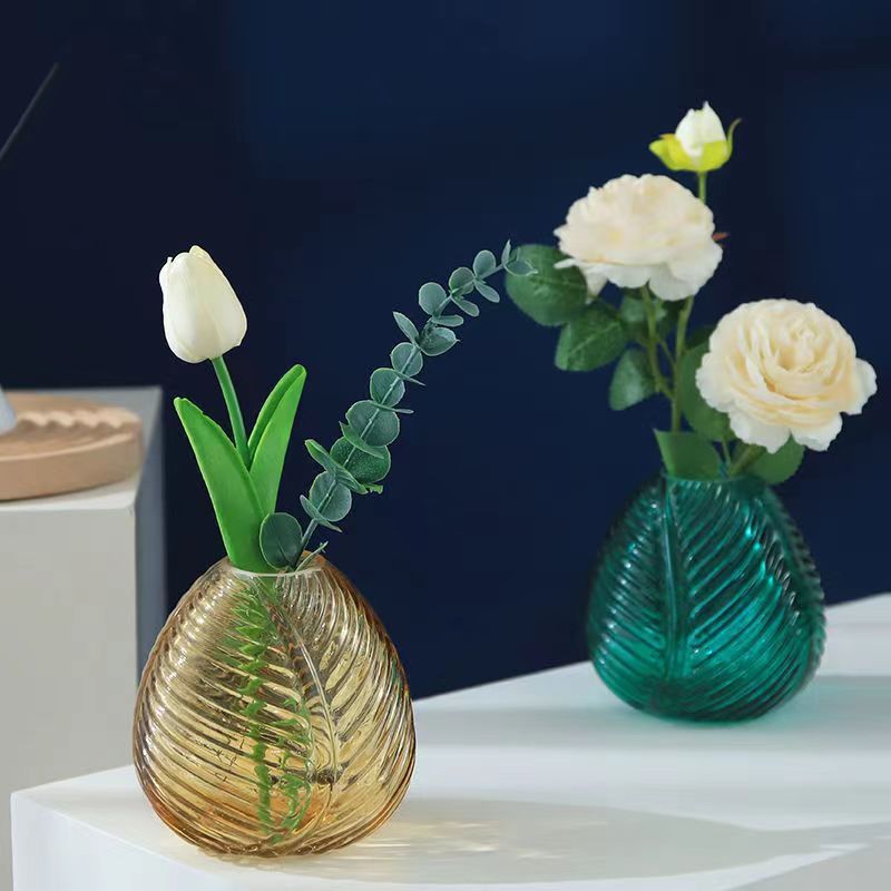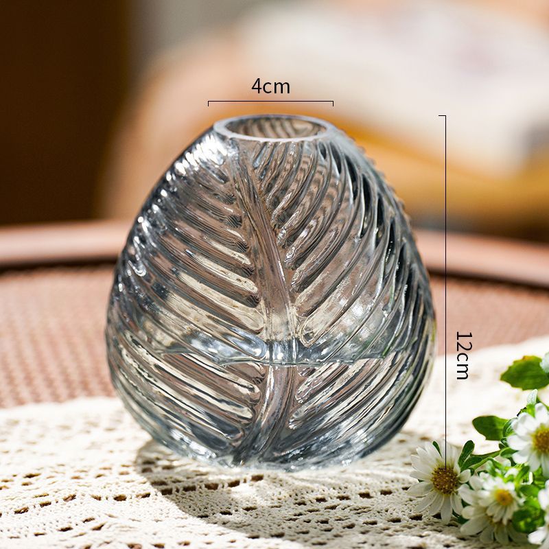批发轻奢北欧树叶纹理创意玻璃花瓶水养鲜花客厅摆件插花瓶代发