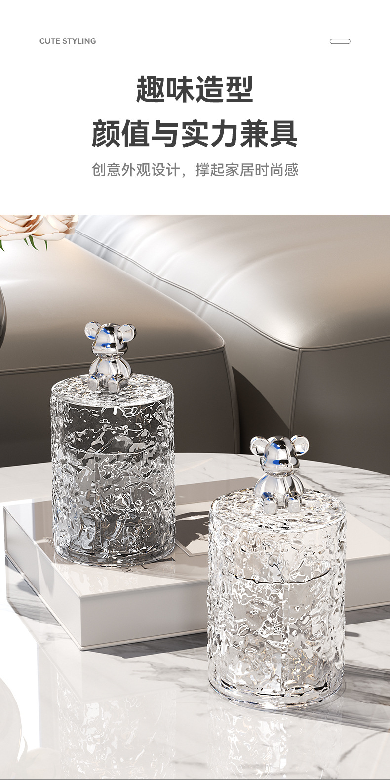 牙签盒高级感冰川纹家用客厅防尘收纳盒牙签罐牙线罐棉签盒牙签筒