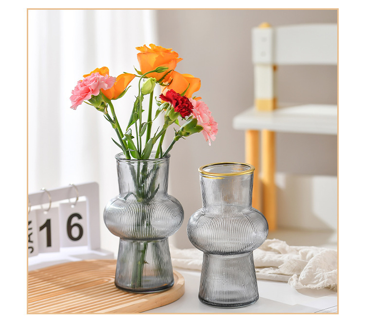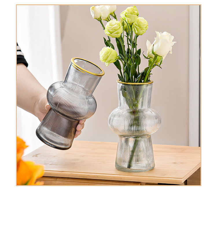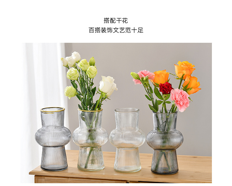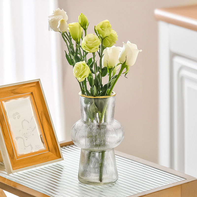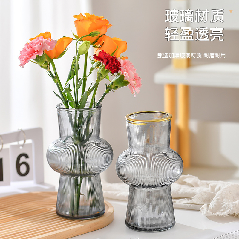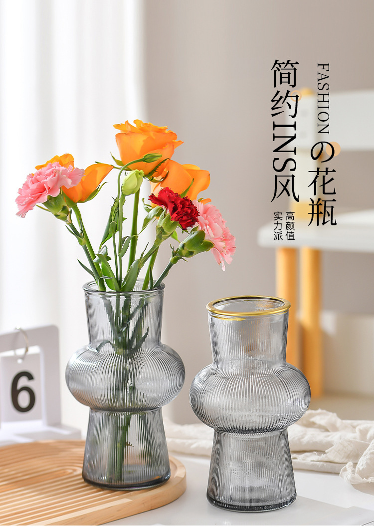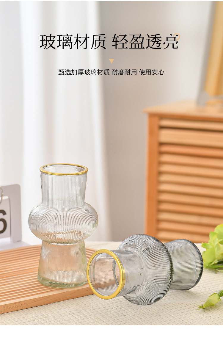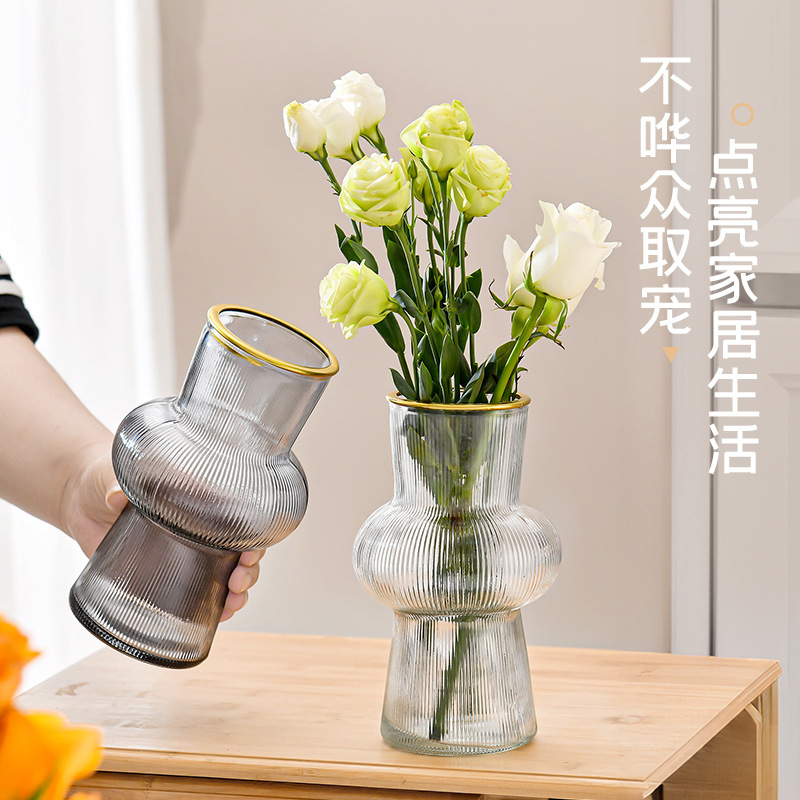 轻奢简约灯笼玻璃花瓶子欧式奶油风透明水培鲜花绿植客厅插花摆件