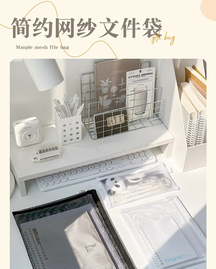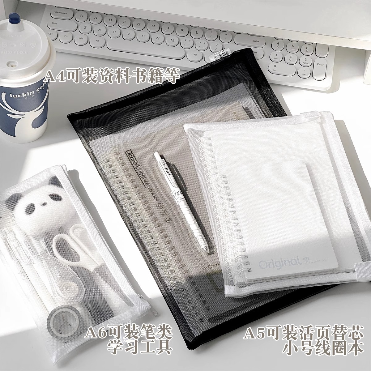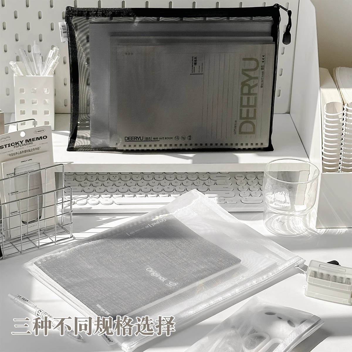 加厚ins新款大学生文件袋手提包大容量A4拉链透明试卷课本收纳袋