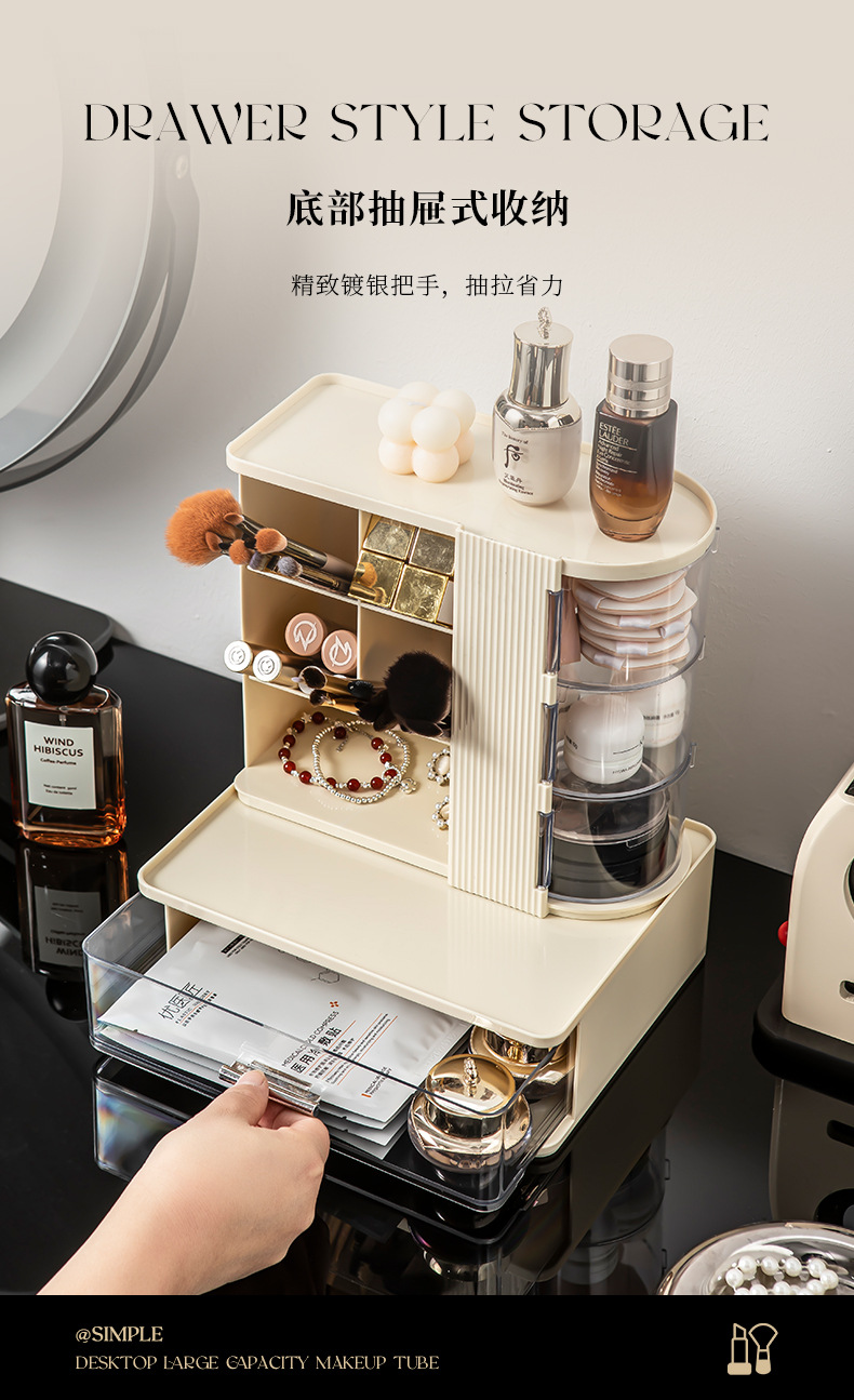 化妆品收纳盒带镜子高级感轻奢置物架防尘护肤品面膜梳妆台化妆盒