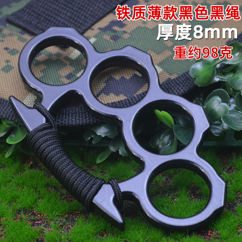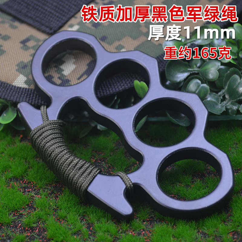 跨境加厚绑绳款四指虎指环拳套手扣破窗求生拳环自卫防身戒指扣