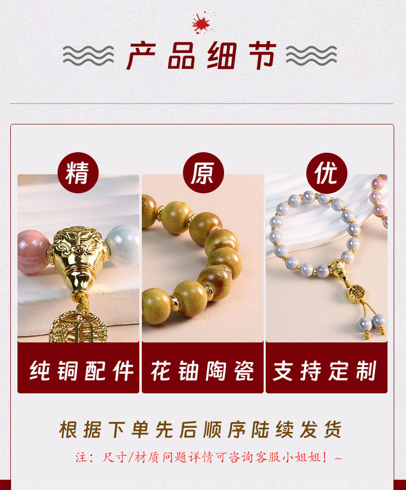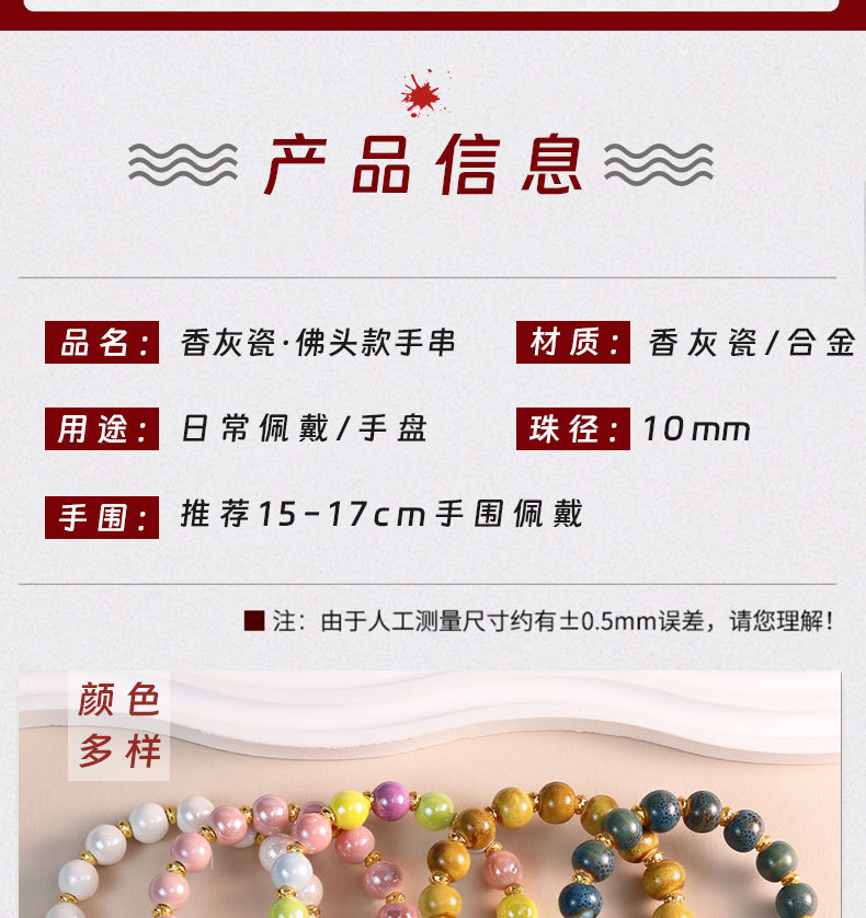 香灰瓷手串手链批发文玩饰品寺庙同款景区直播陶瓷手串批货摆摊