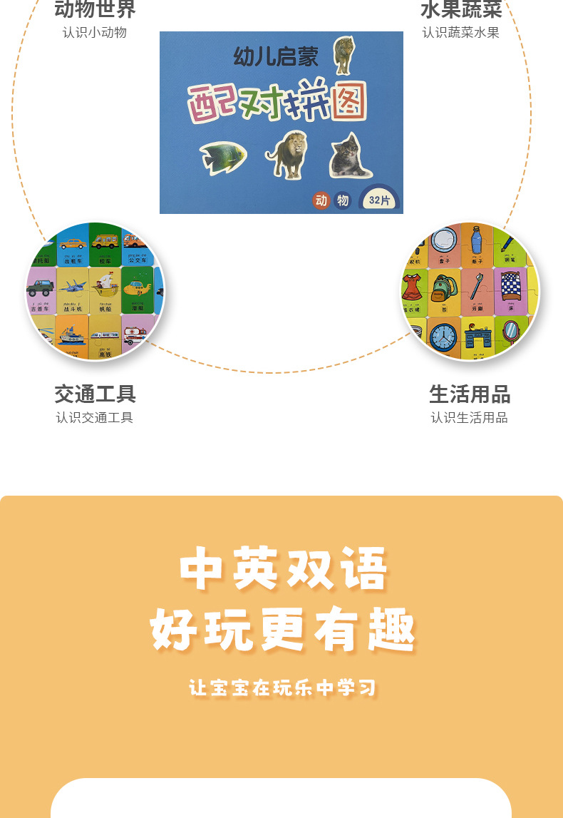 儿童益智配对玩具拼图智力开发0-3男孩女孩宝宝识字卡片玩具批发