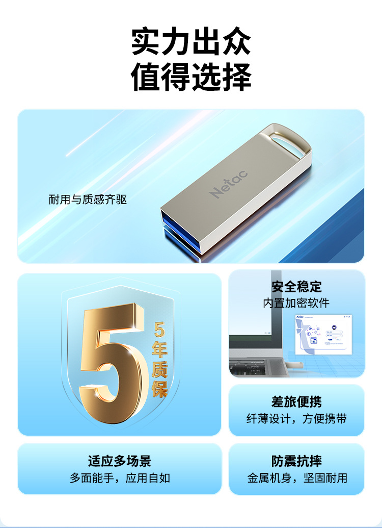 朗科UM73 2.0大容量128G车载usb高速便携金属优盘学生电脑