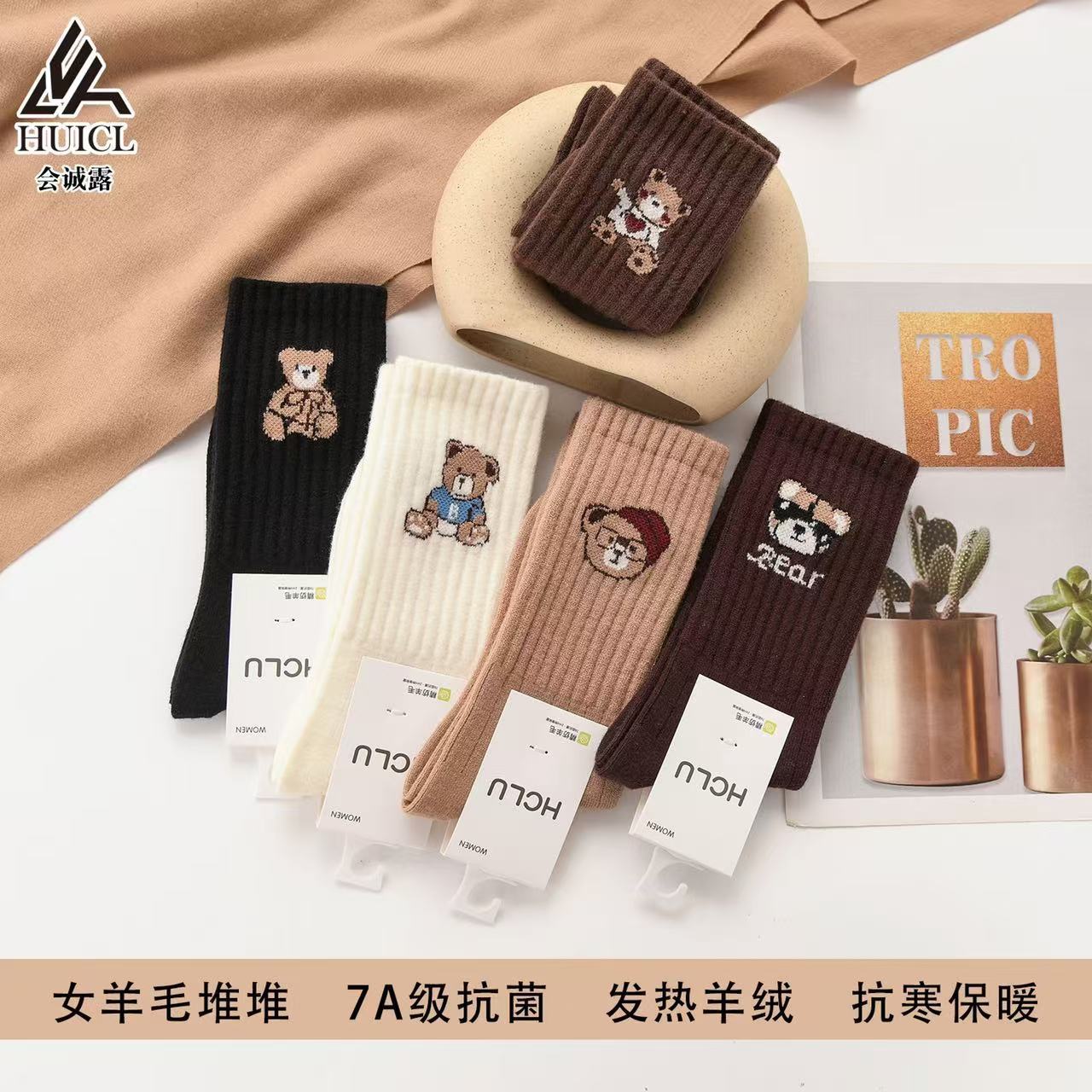 会诚露羊绒袜子 女士袜子 堆堆袜 长筒袜子 潮流款袜子 时尚百搭