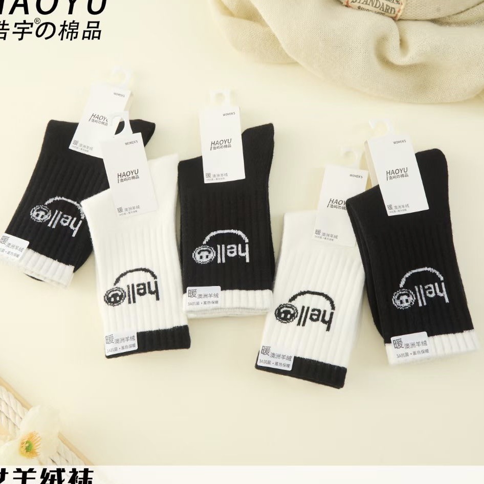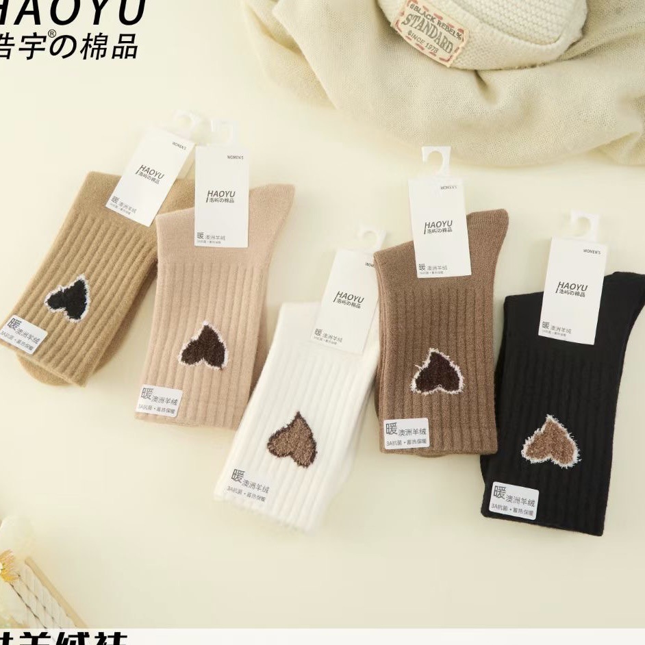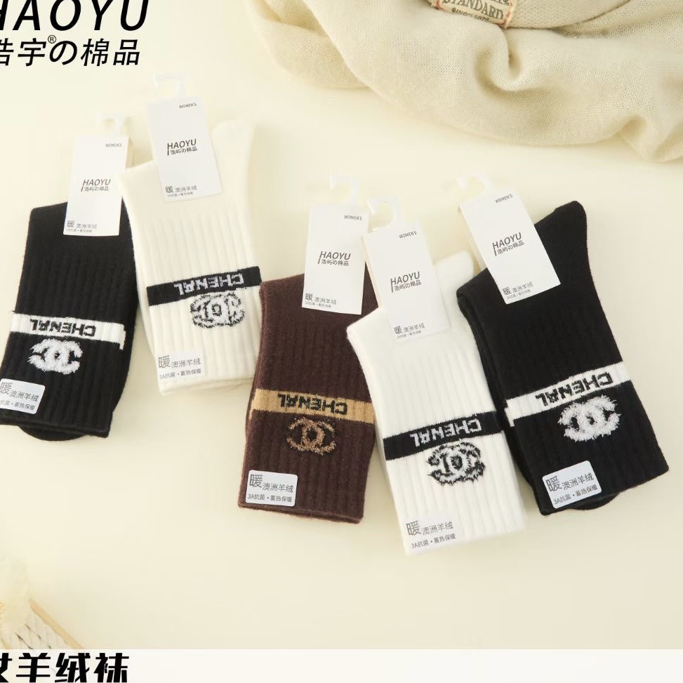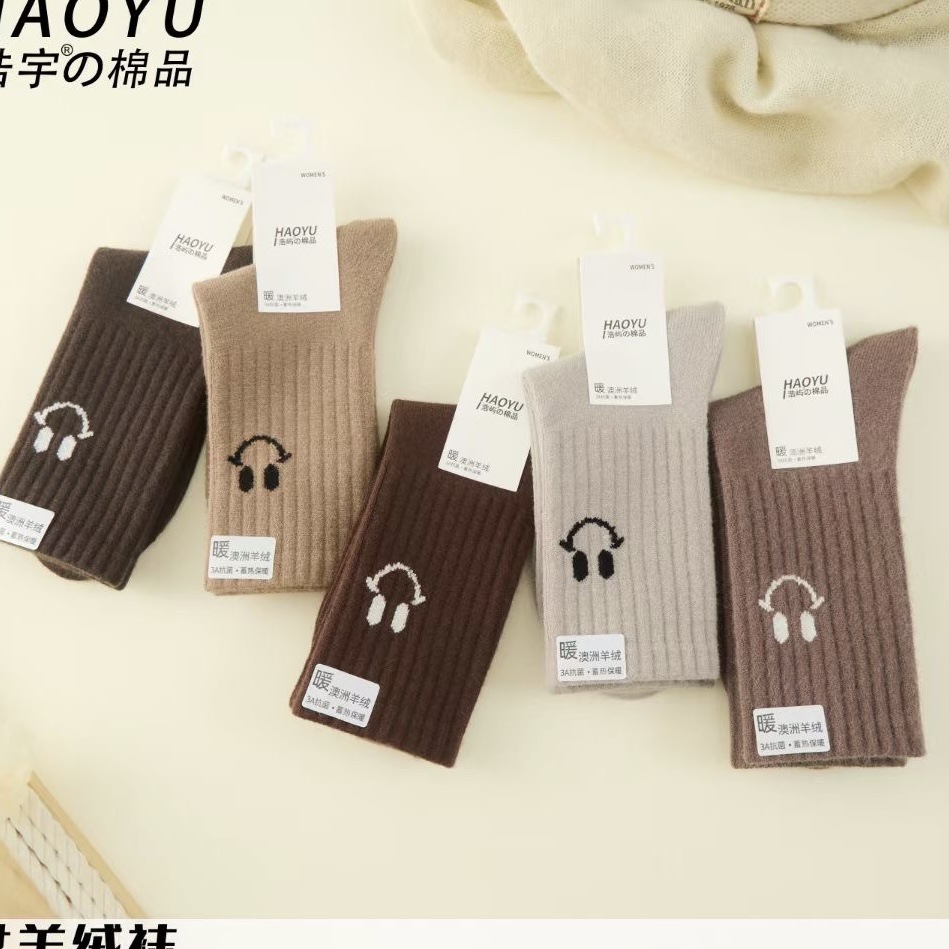 秋冬新款女士加厚羊绒堆堆袜保暖羊毛袜日韩潮款长筒咖色袜