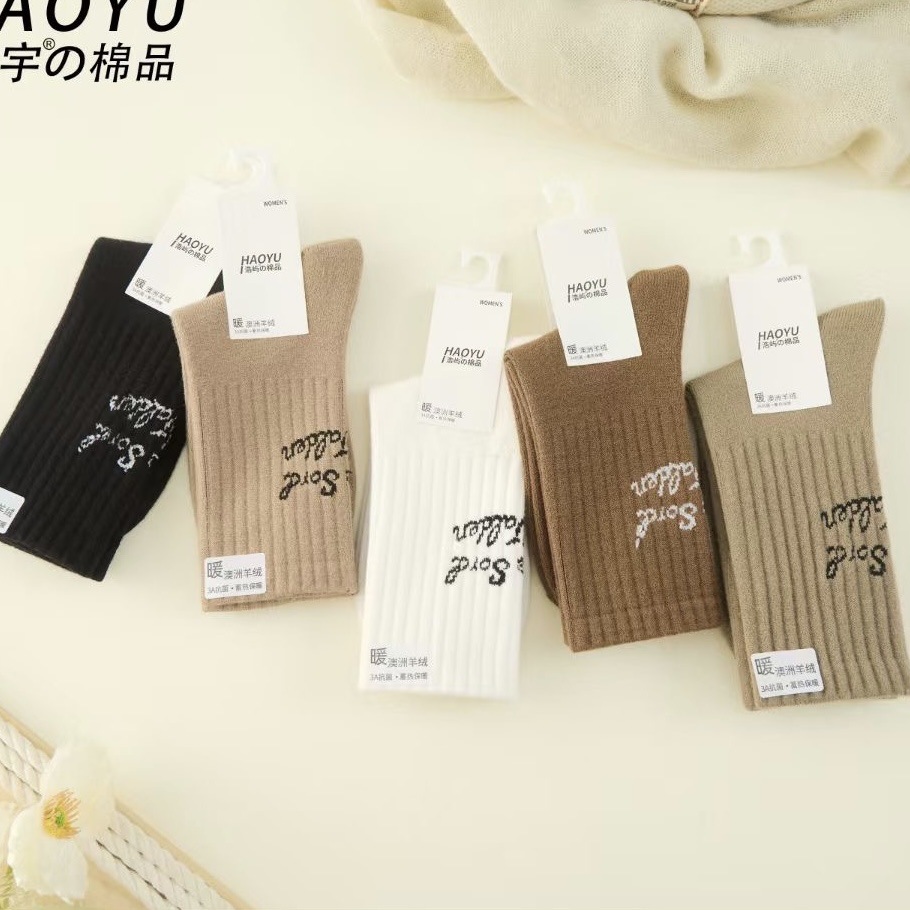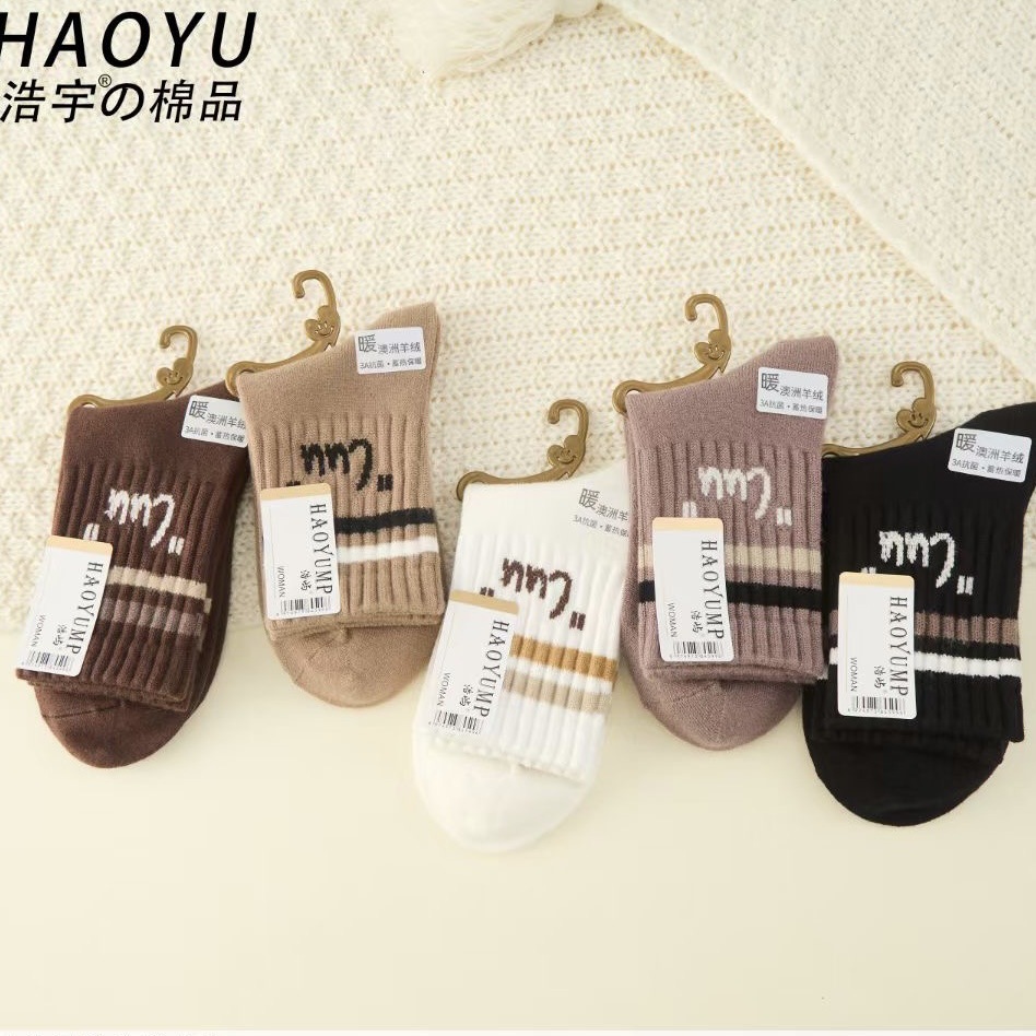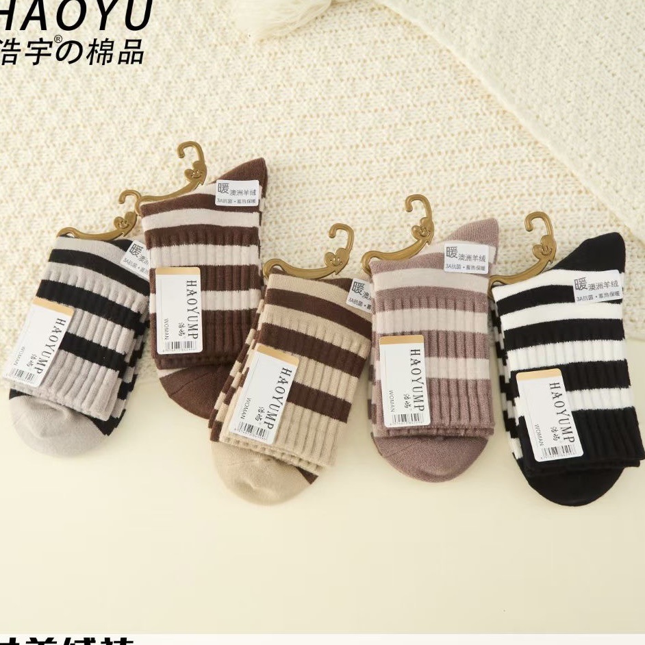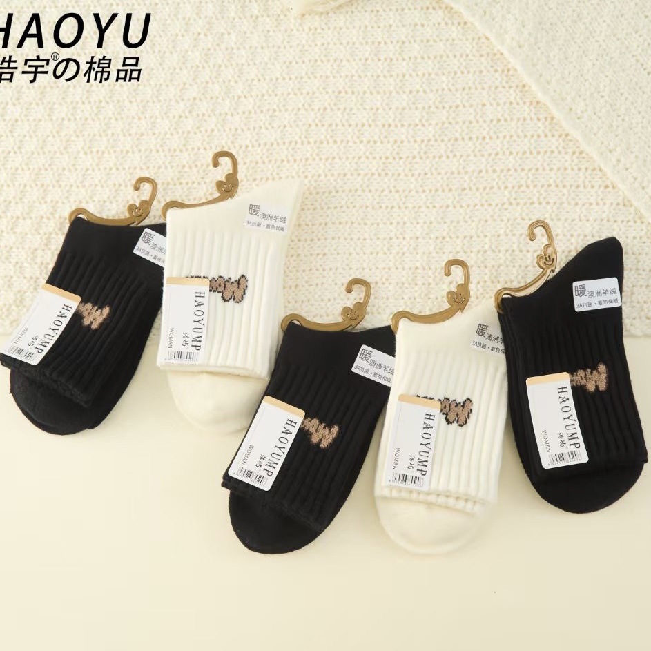 秋冬新款女士加厚羊绒堆堆袜保暖羊毛袜日韩潮款长筒咖色袜