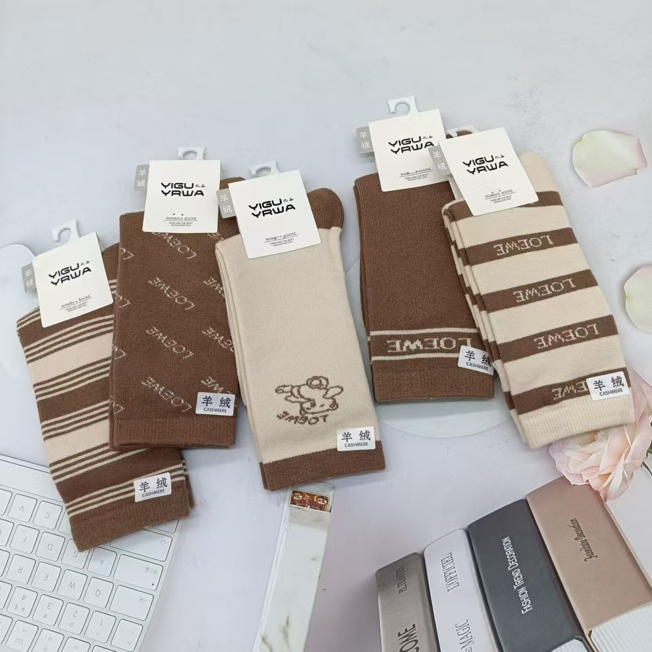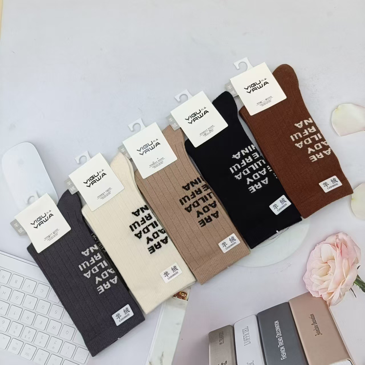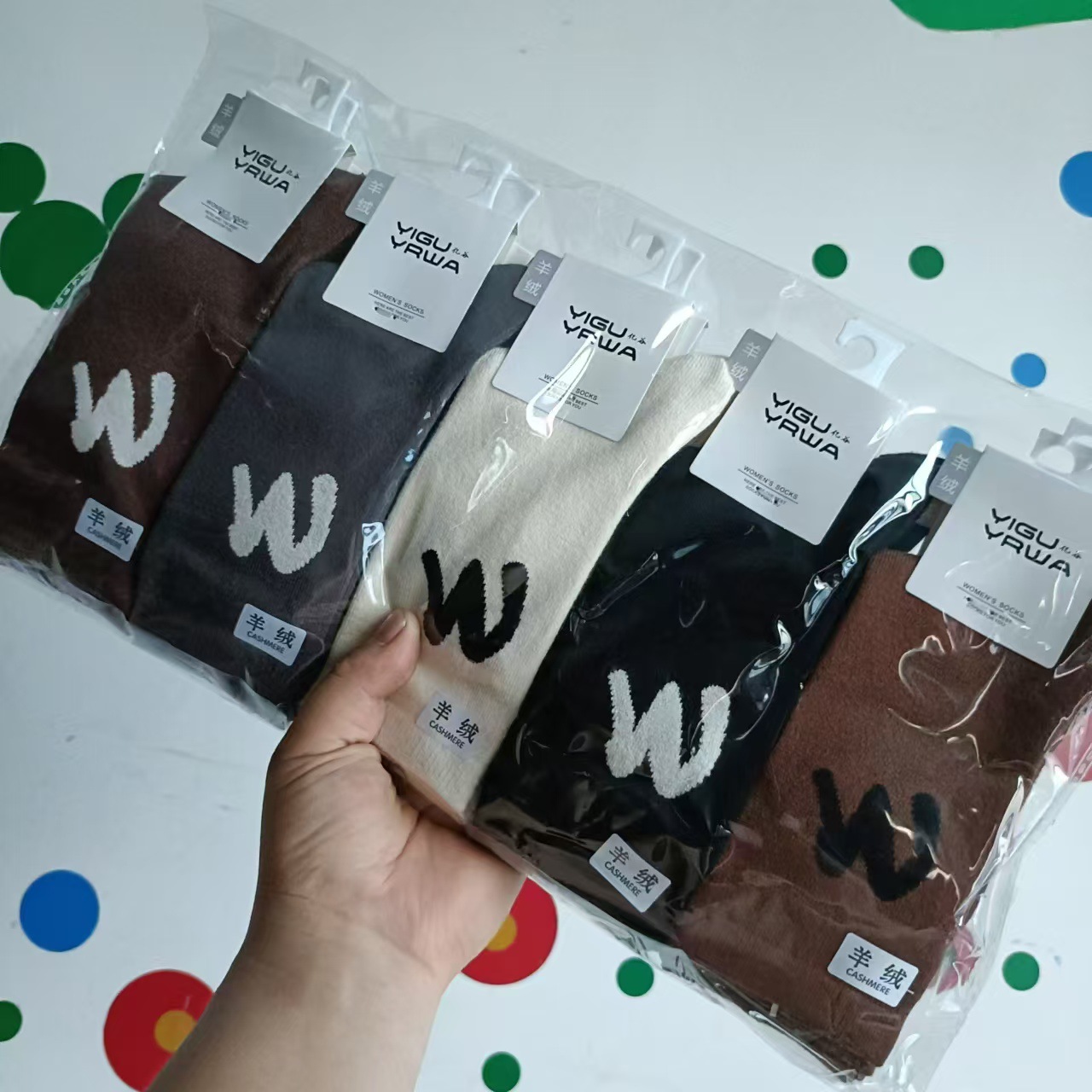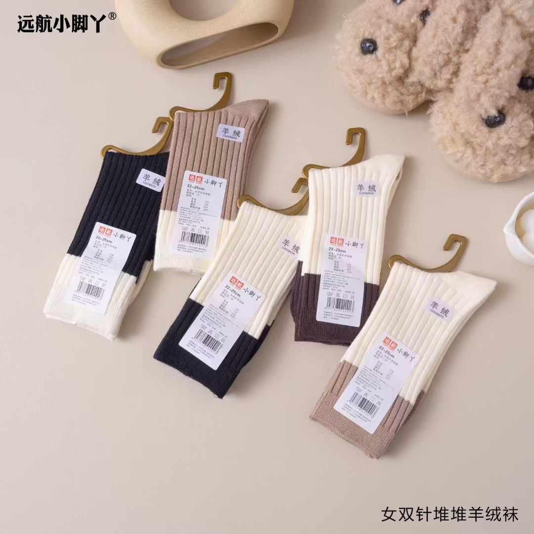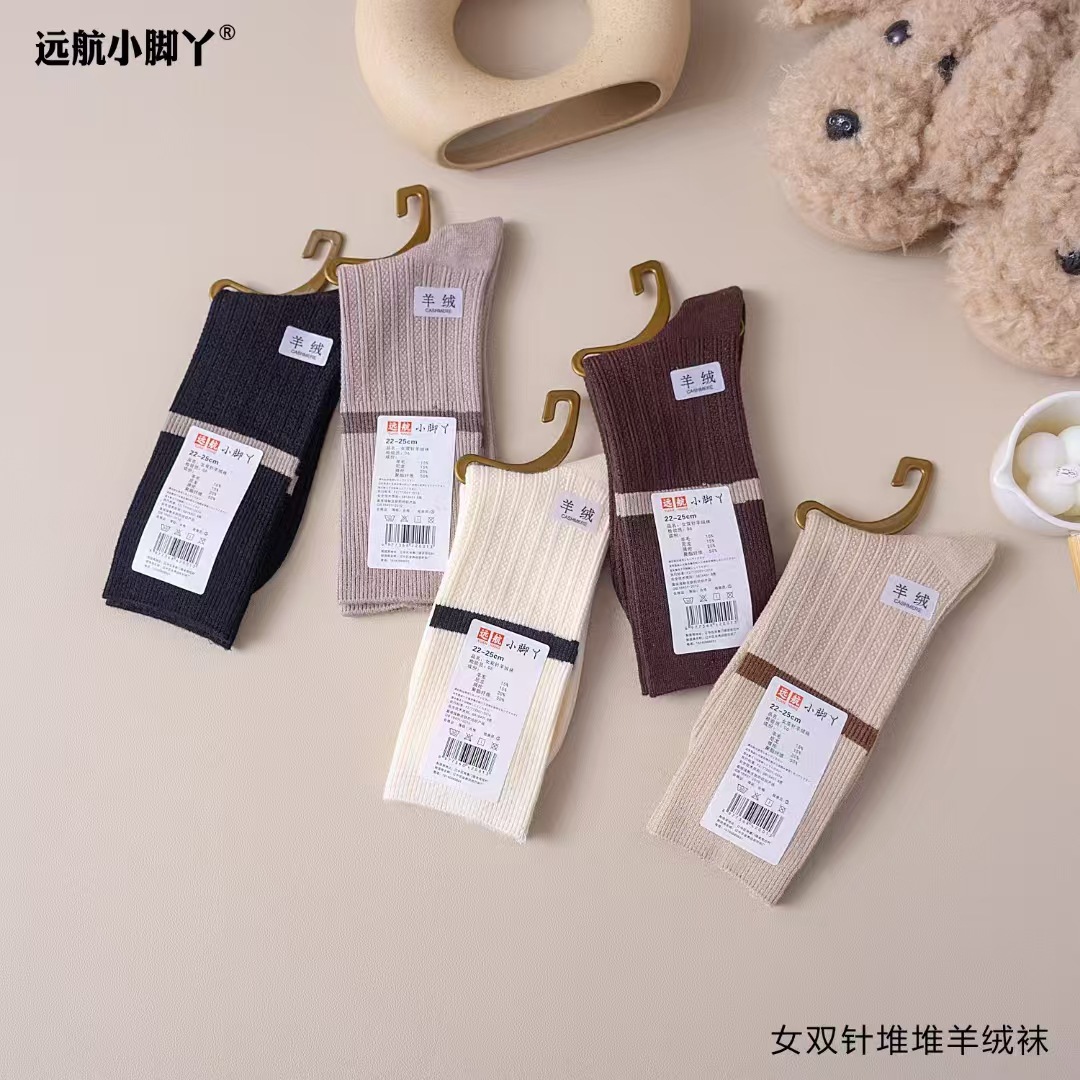 秋冬新款羊绒袜子长筒袜子堆堆袜子双针羊绒袜子潮流款加厚保暖袜