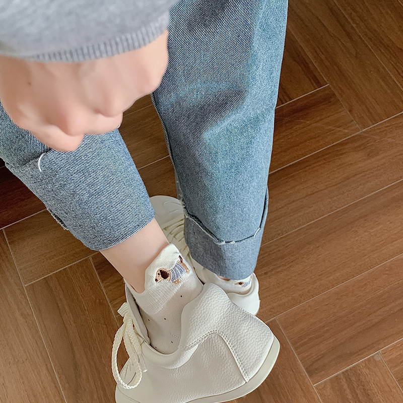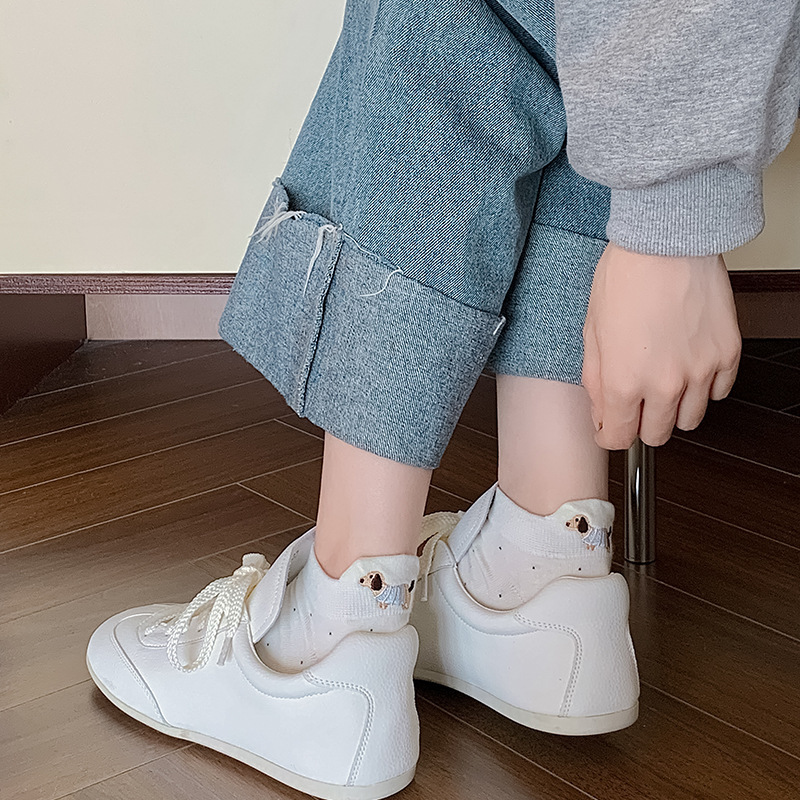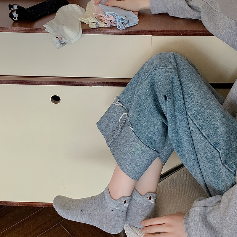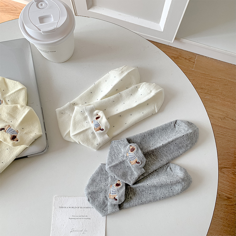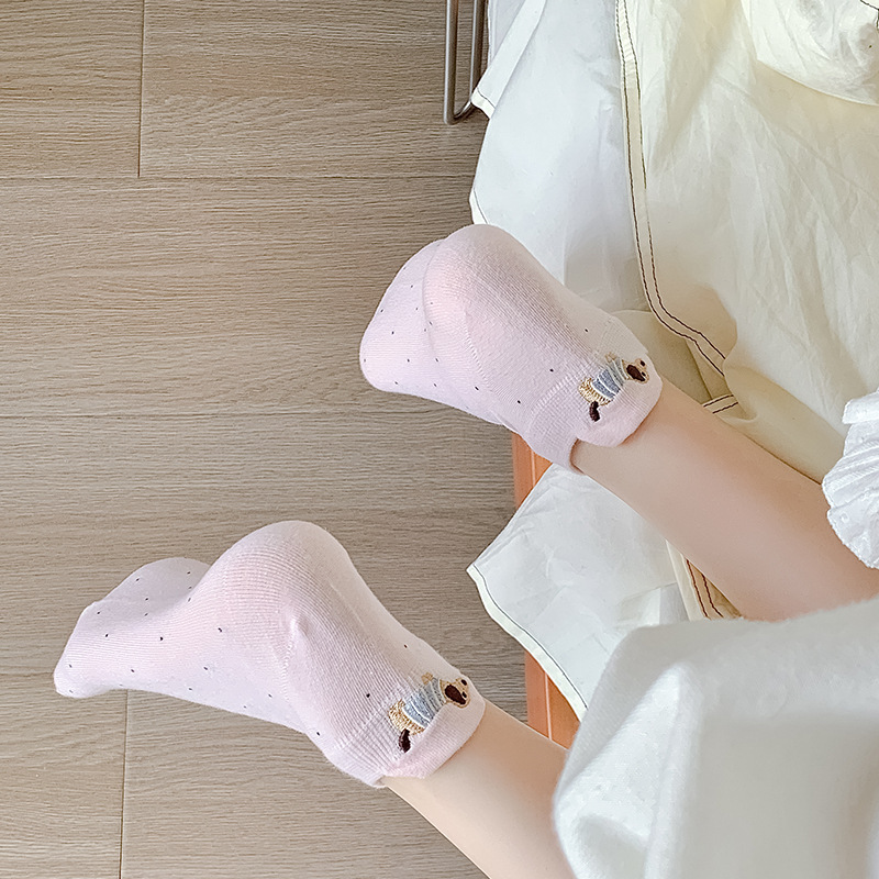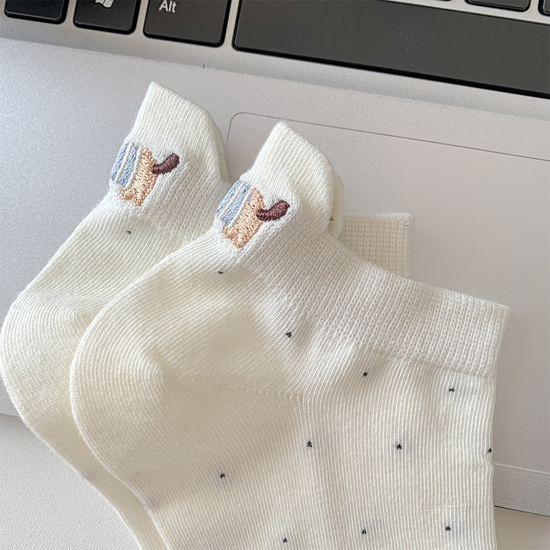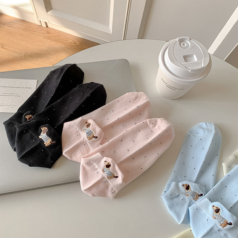 春夏袜子女薄款短袜波点可爱卡通腊肠狗刺绣船袜ins纯棉短筒潮袜