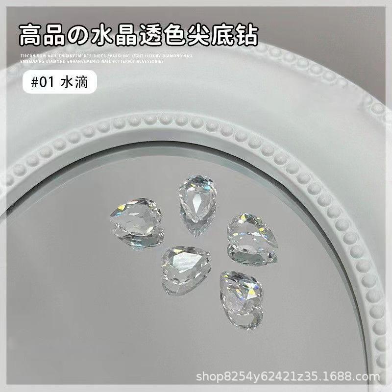 水滴钻美甲饰品透色10MM多切面超闪尖底水晶钻美甲钻K9整批冰透色