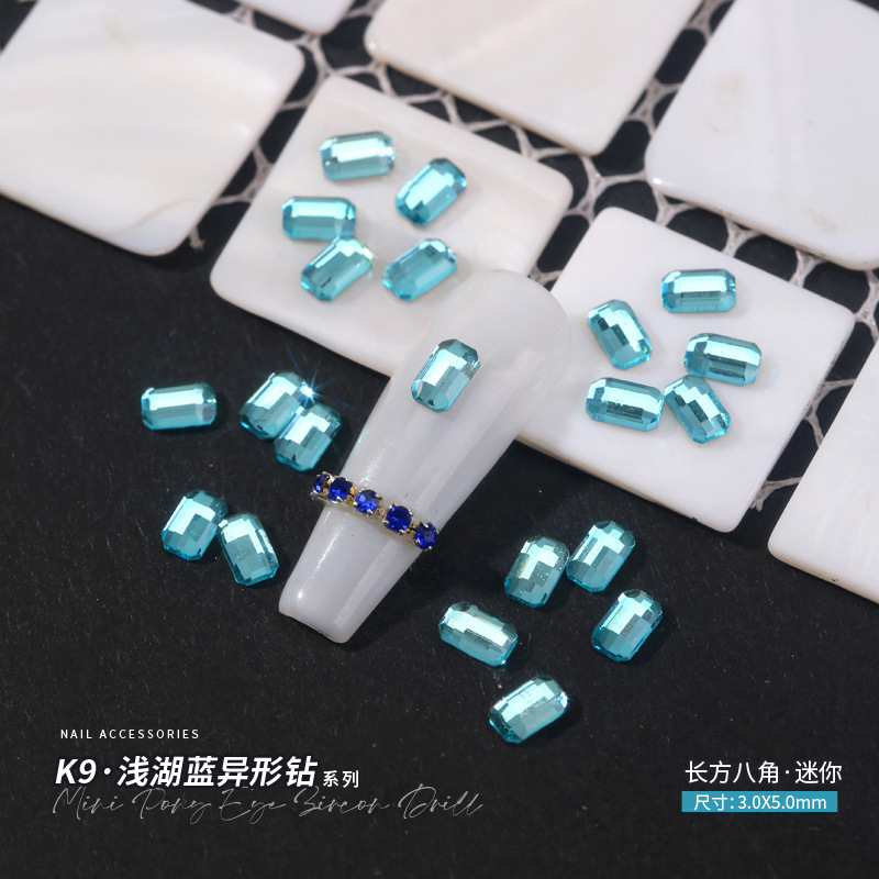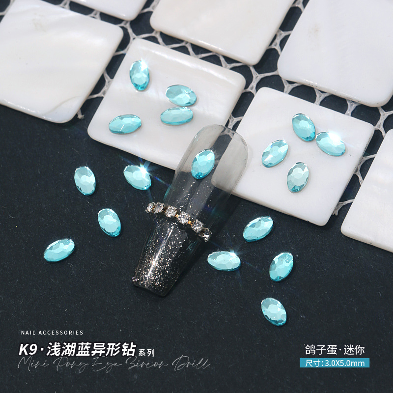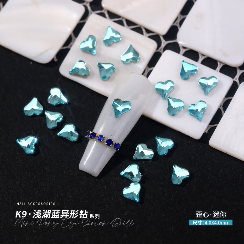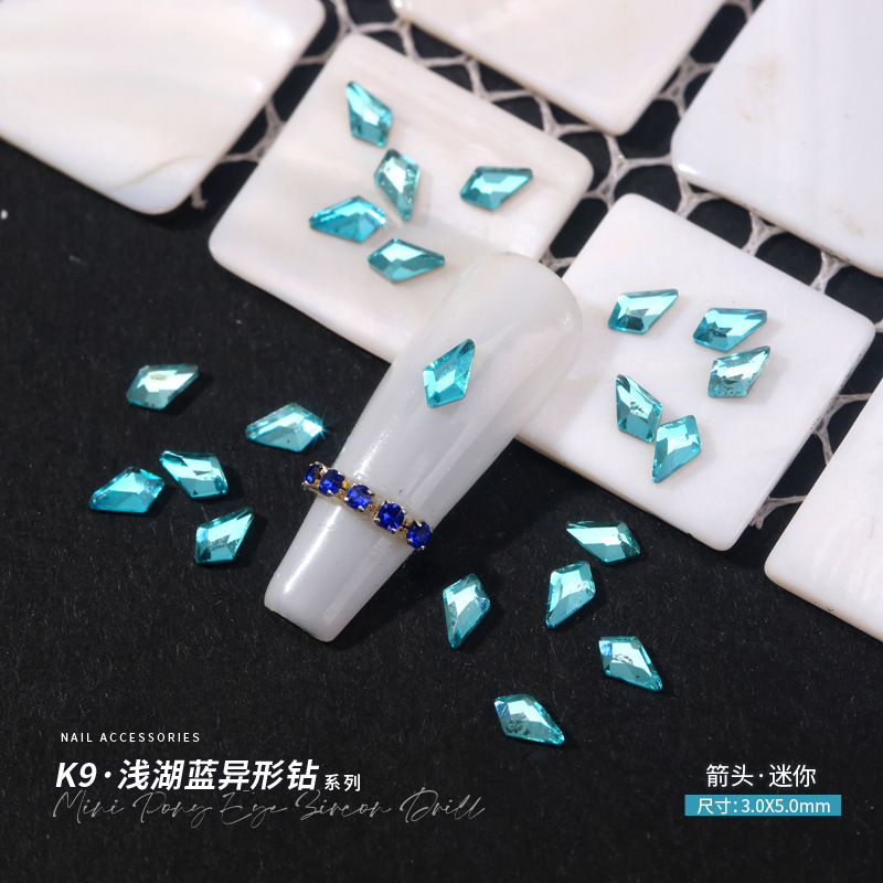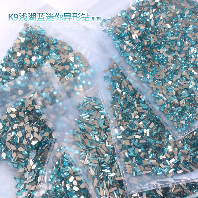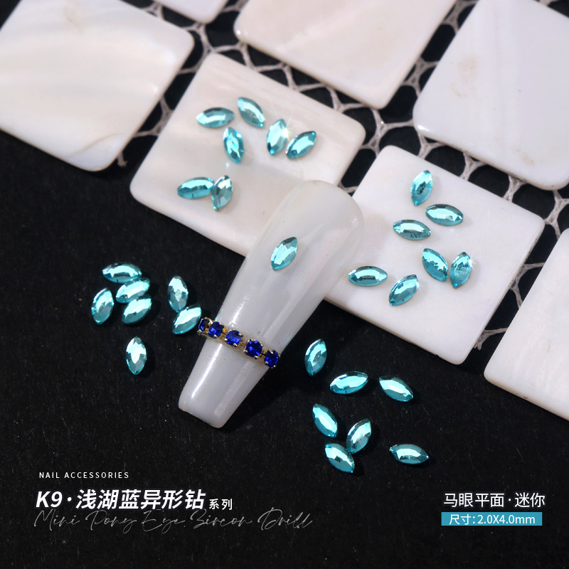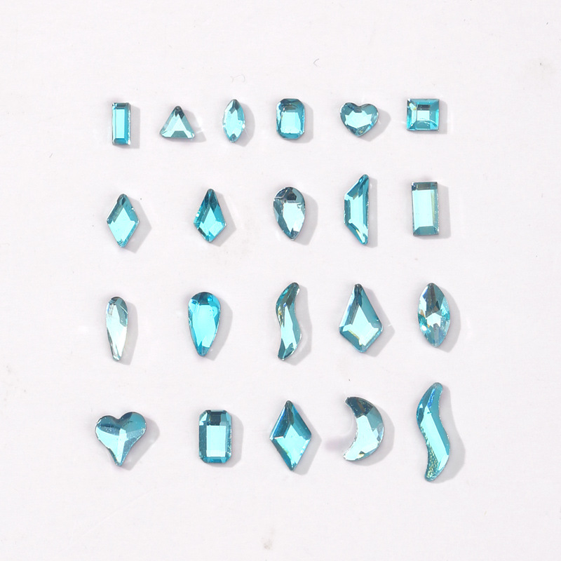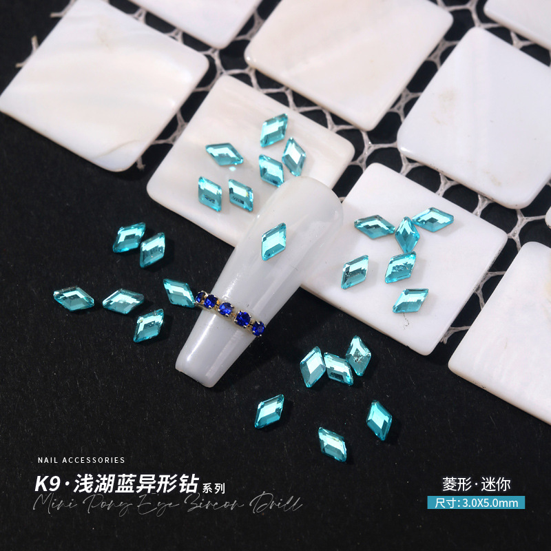 湖蓝色小号平底异形钻蓝色菱形马眼水滴爱心指甲玻璃美甲饰品批发