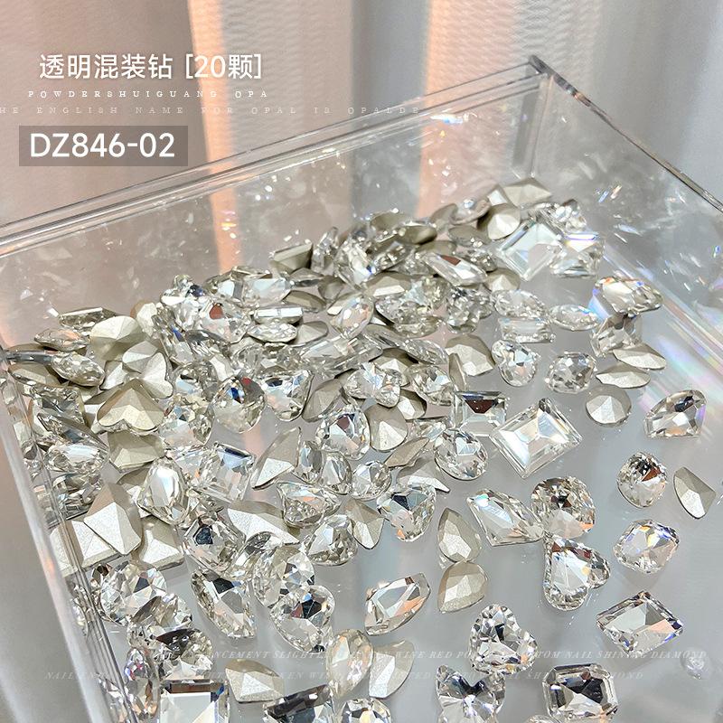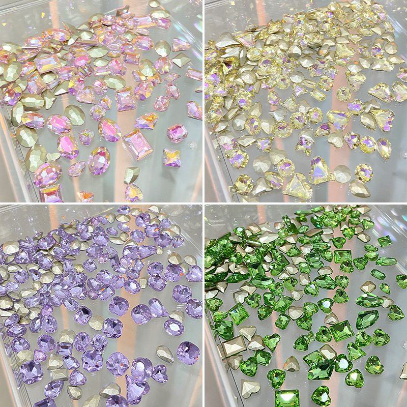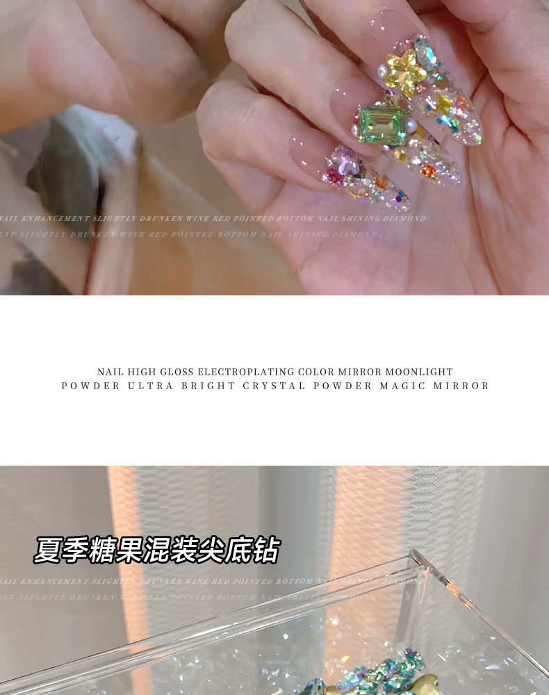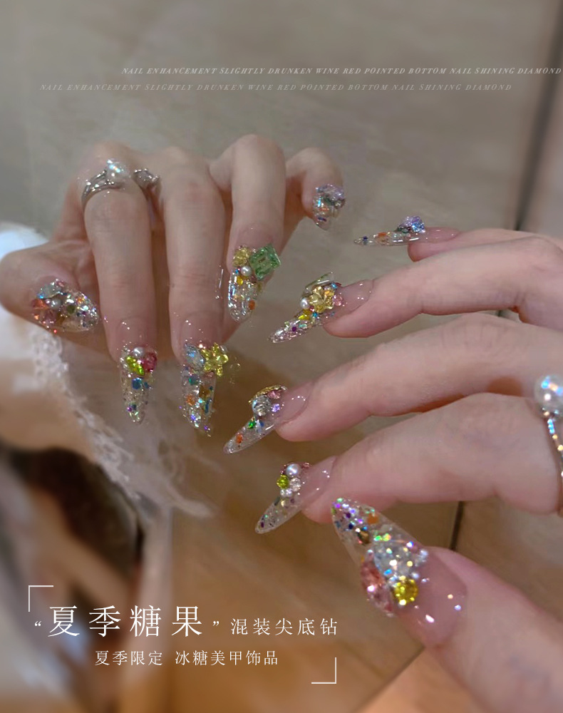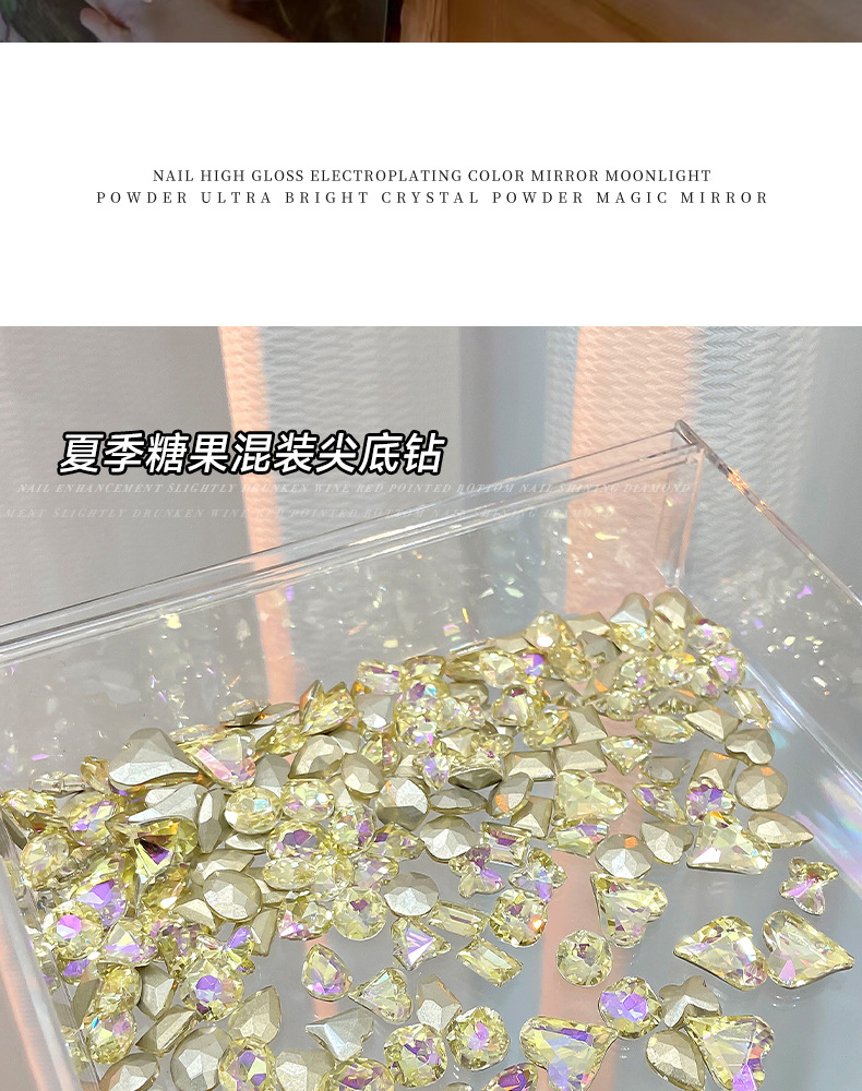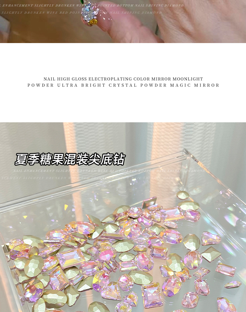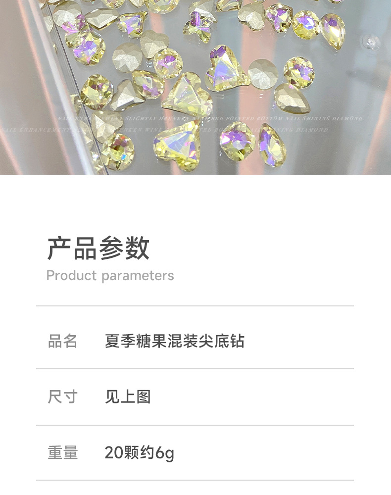 美甲饰品混款网红糖果汽水尖底钻水晶彩色爱心冰糖异形美甲钻批发