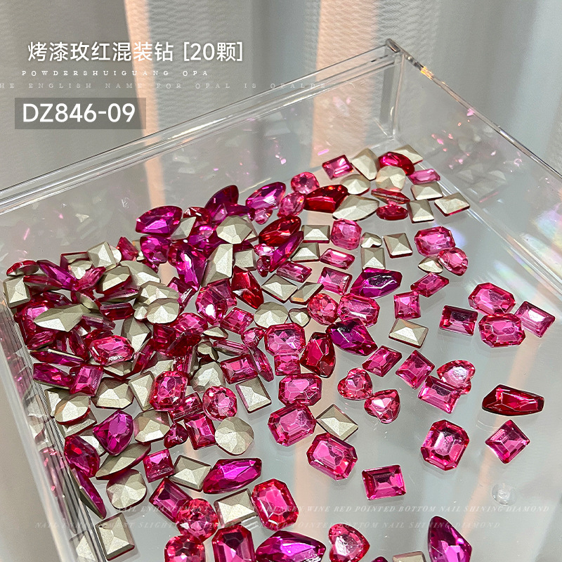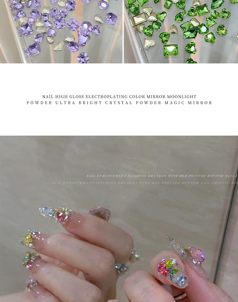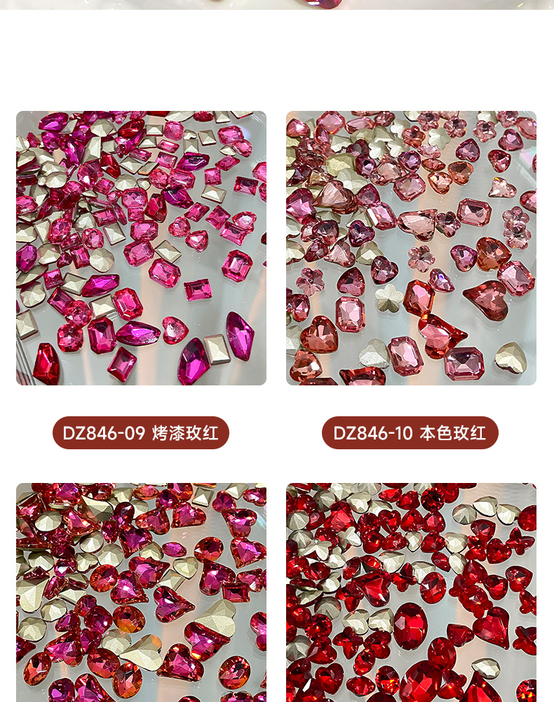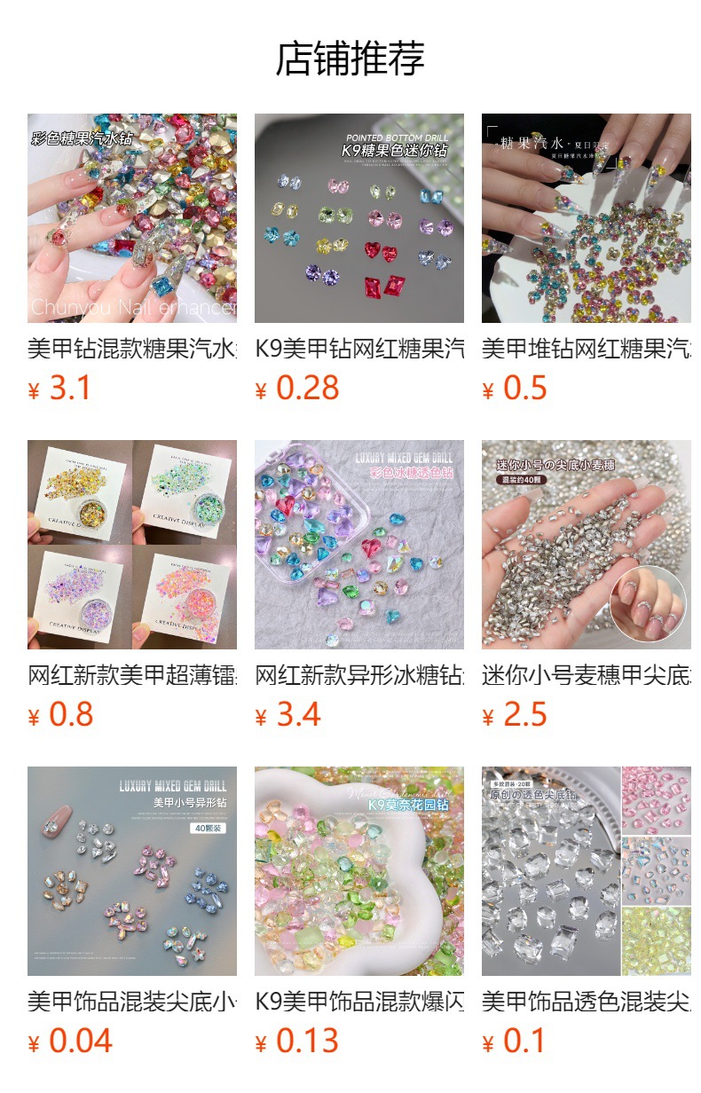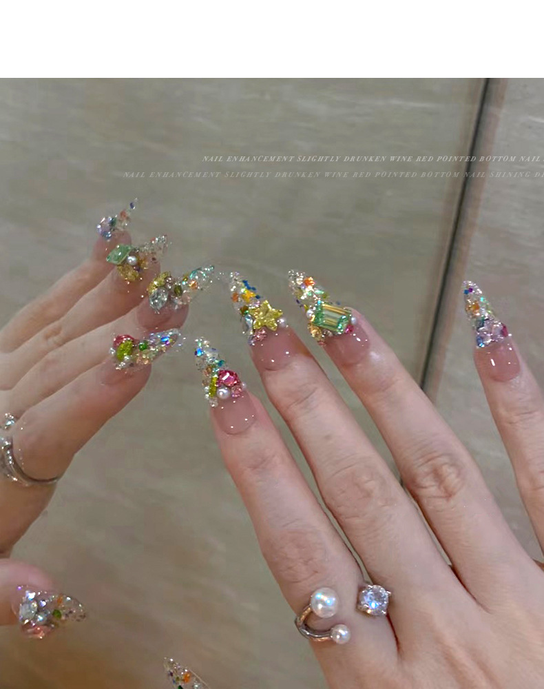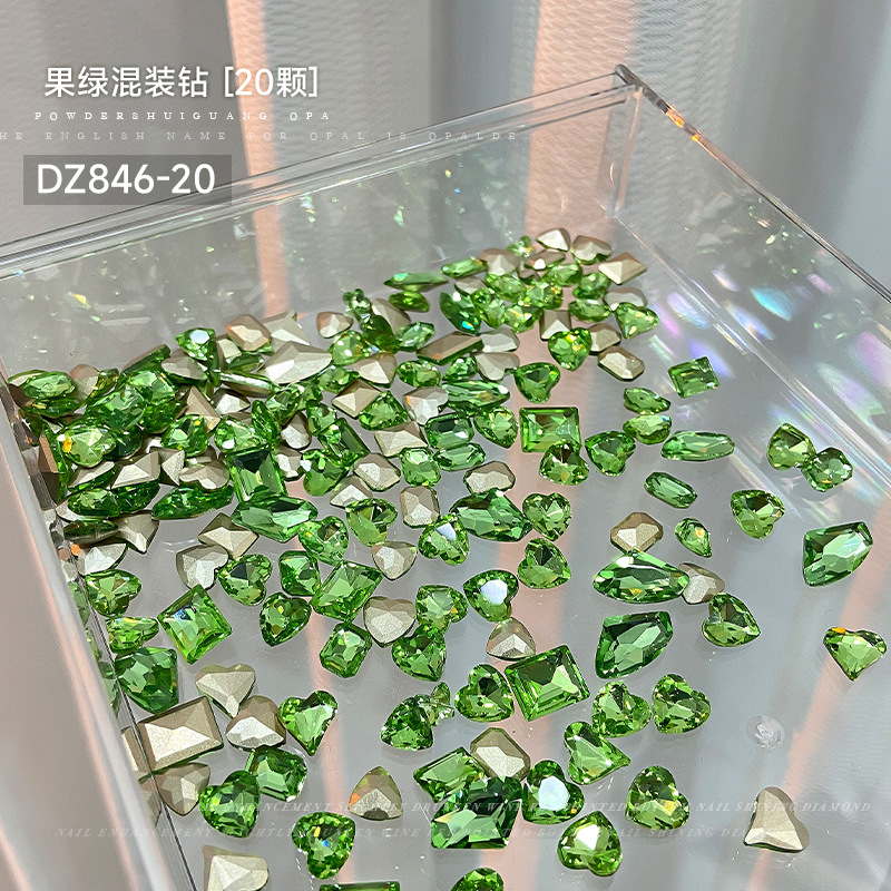 美甲饰品混款网红糖果汽水尖底钻水晶彩色爱心冰糖异形美甲钻批发