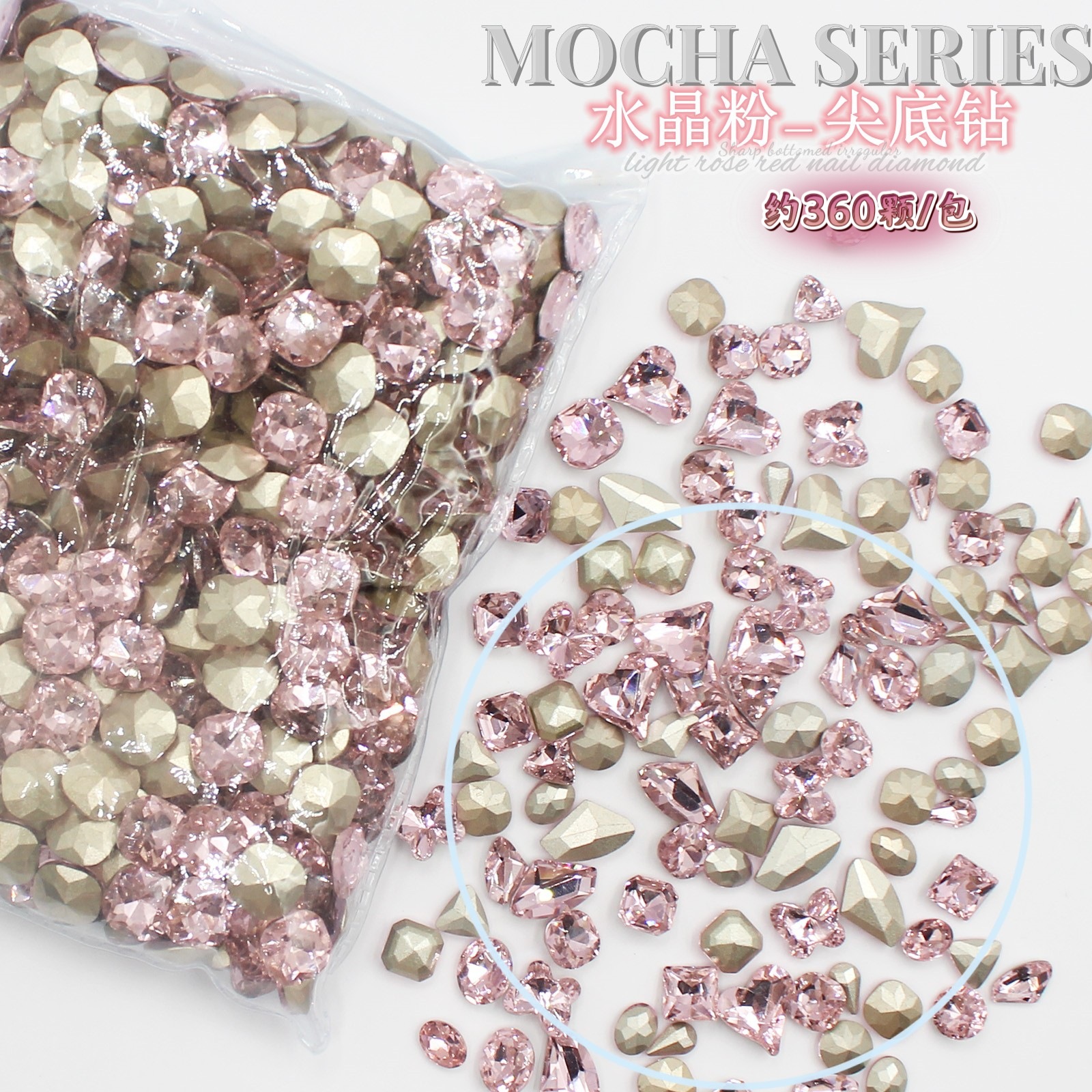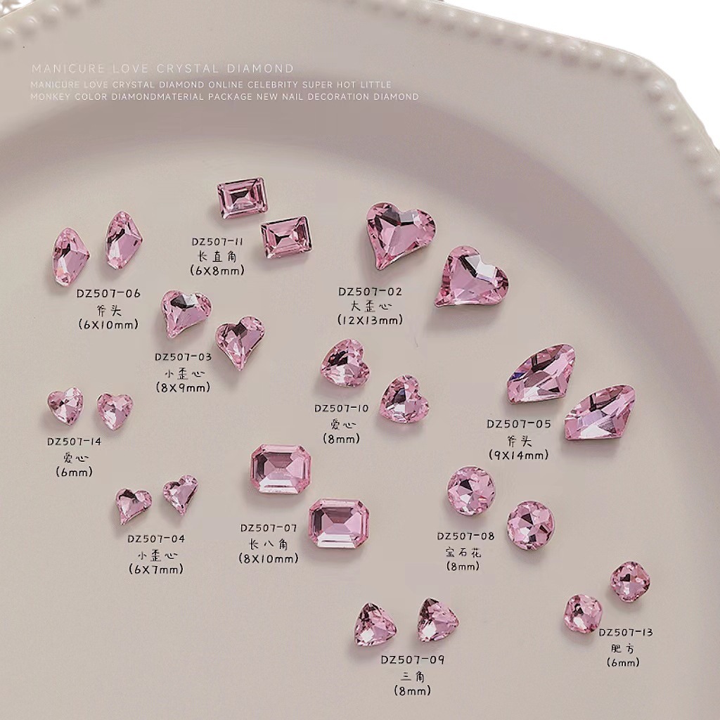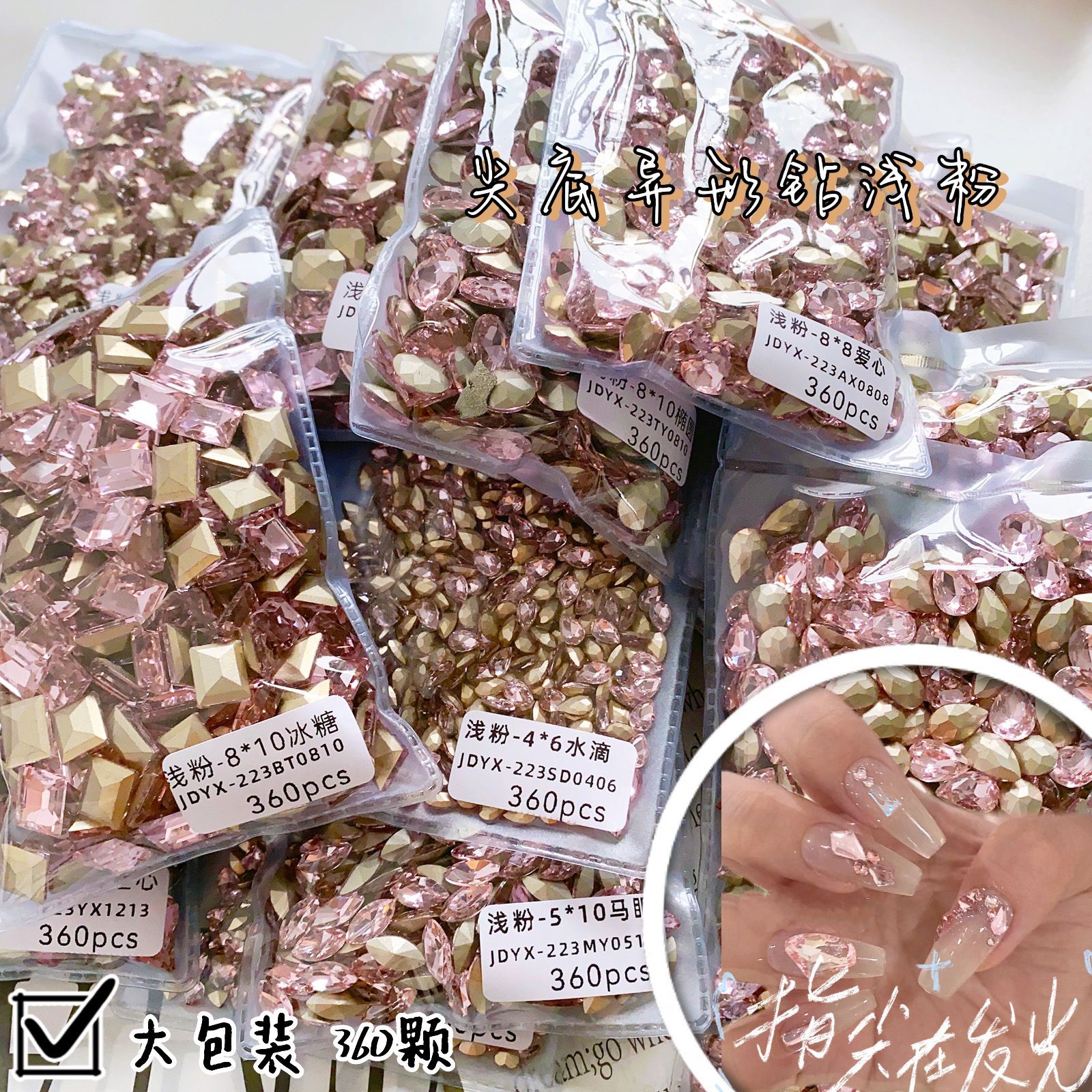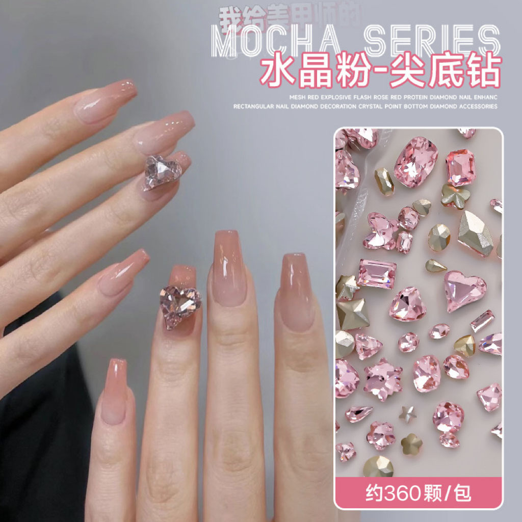 批发整包360颗水晶樱花粉尖底钻大小号水滴爱心歪心跨境美甲饰品