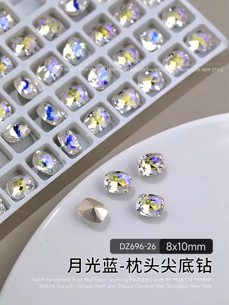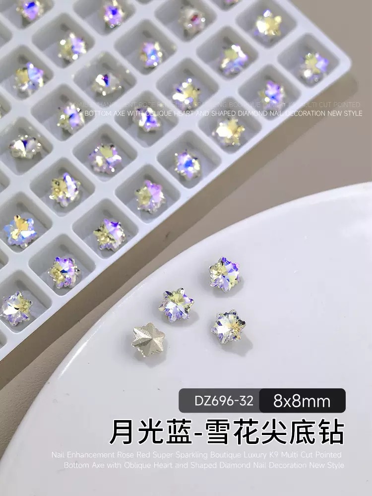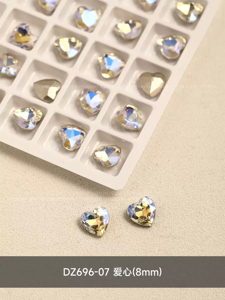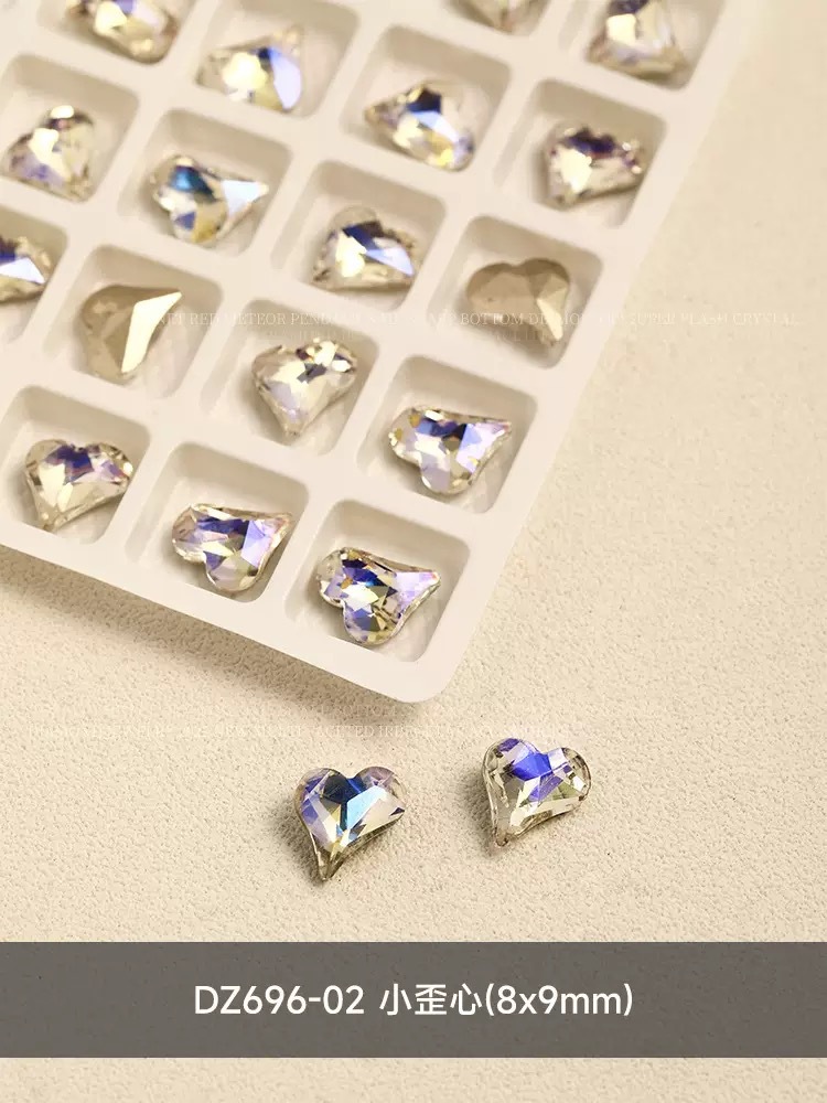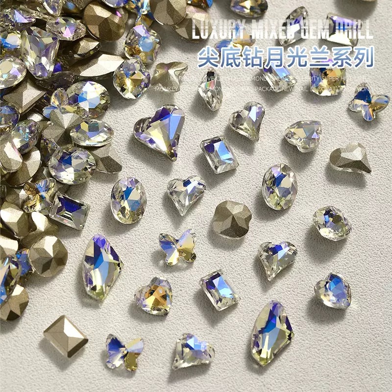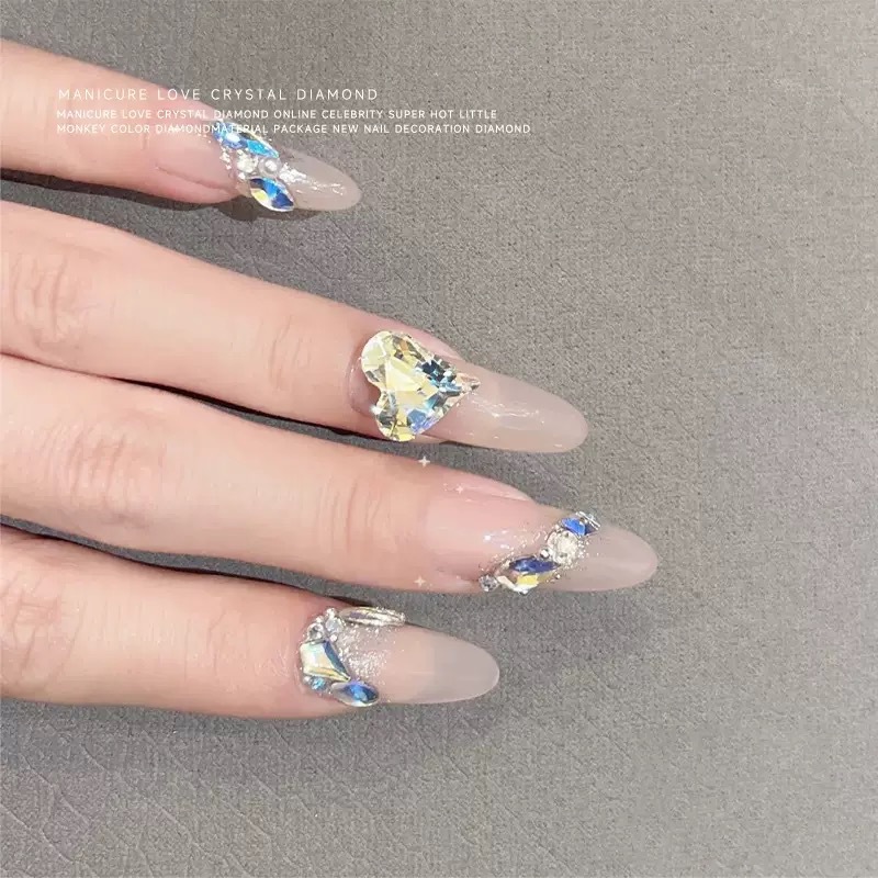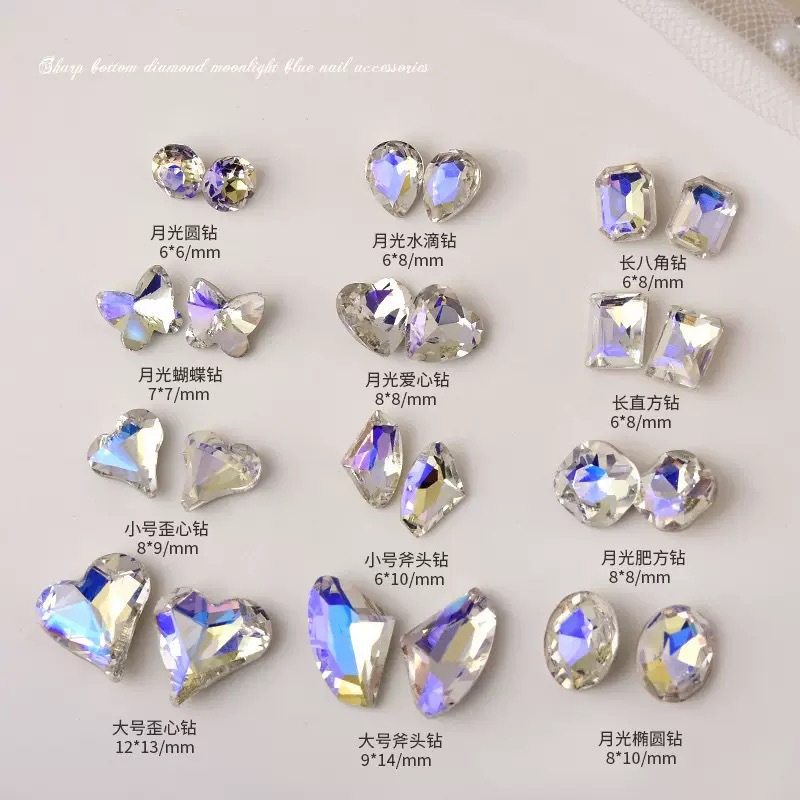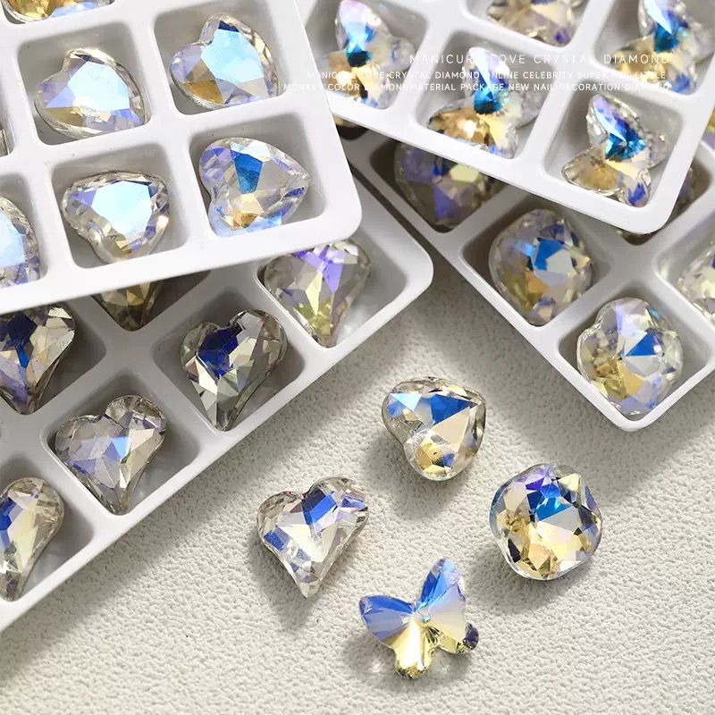 网红爆闪月光色美甲钻指甲大钻石歪心爱心蝴蝶异形指甲贴美甲饰品