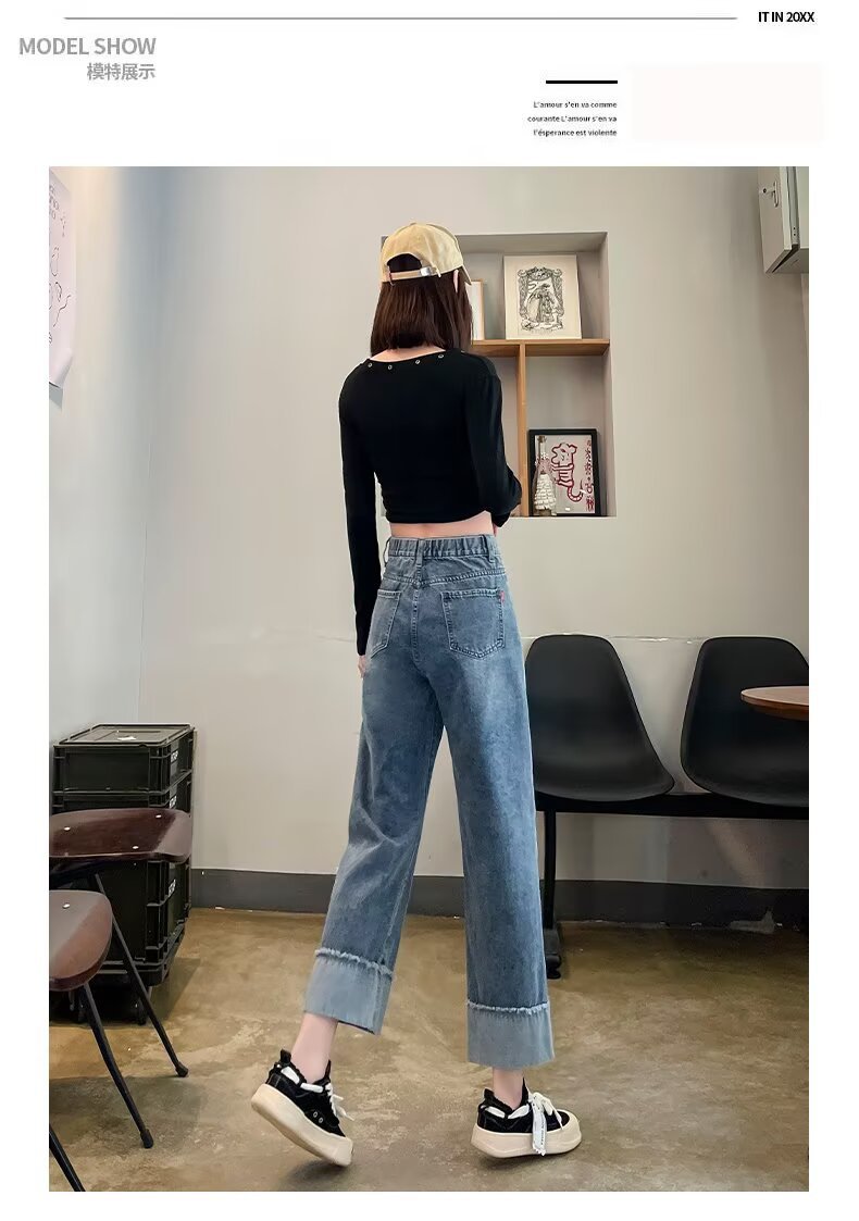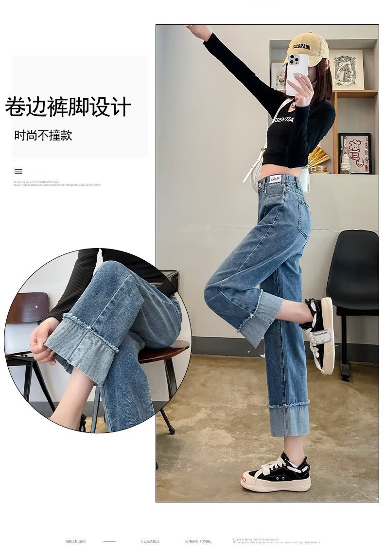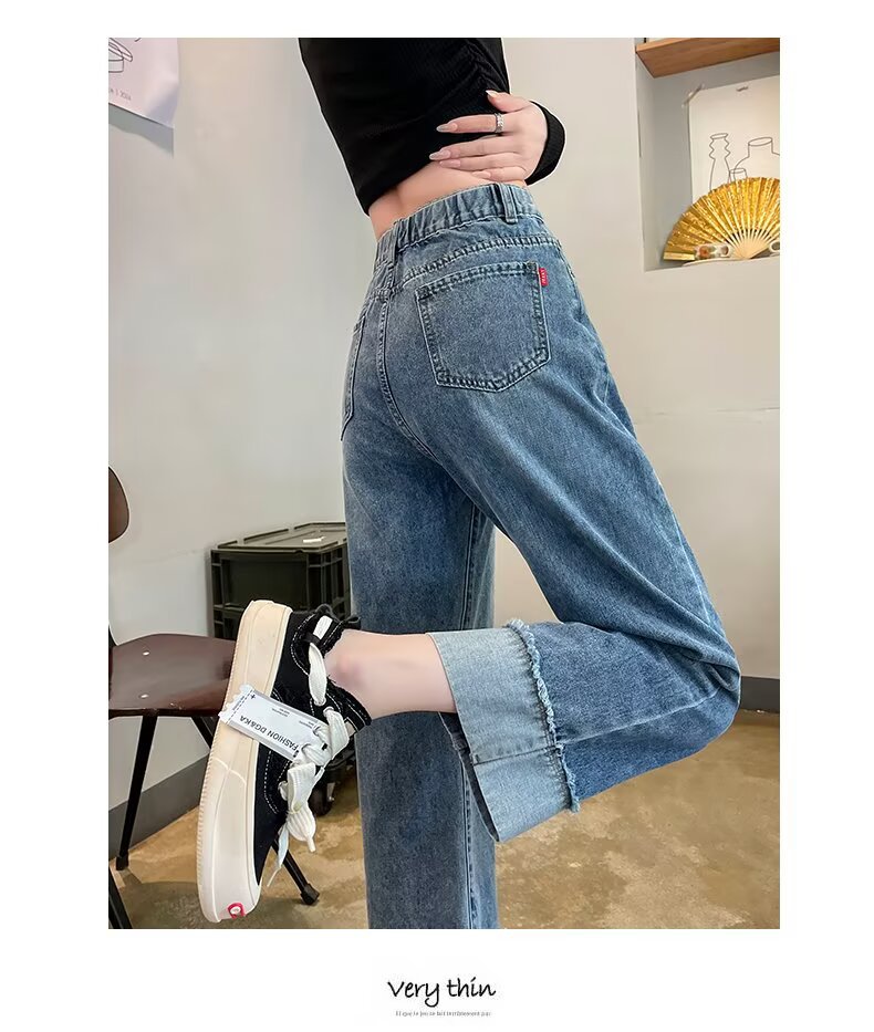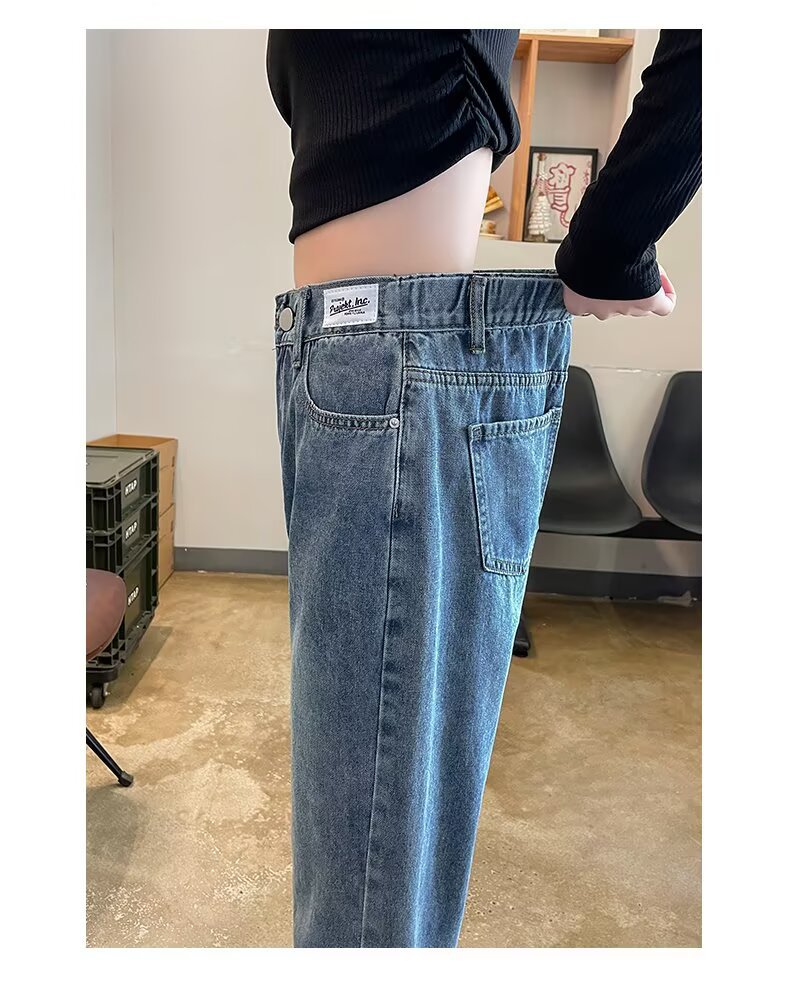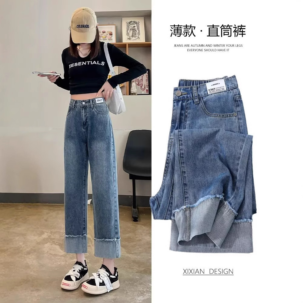 韩版休闲直筒牛仔裤女款2025年夏季新款高腰显瘦百搭松紧腰牛仔裤