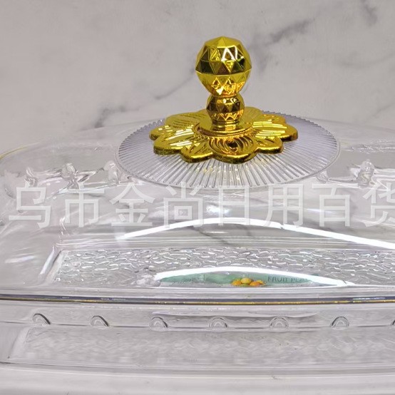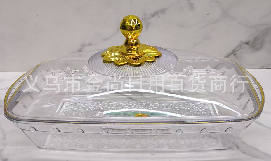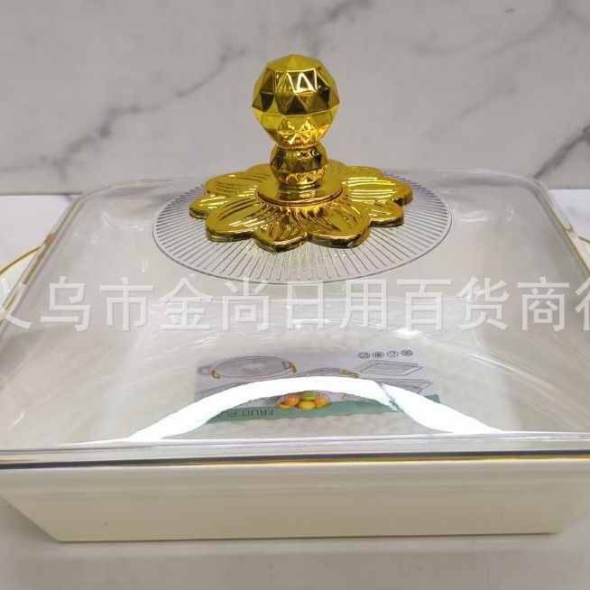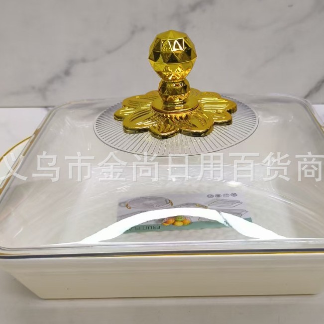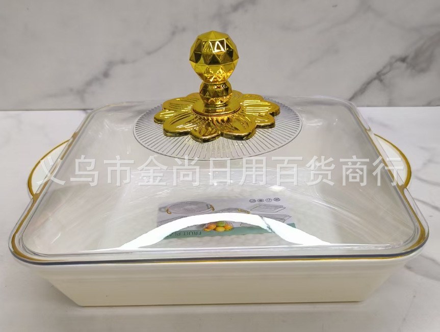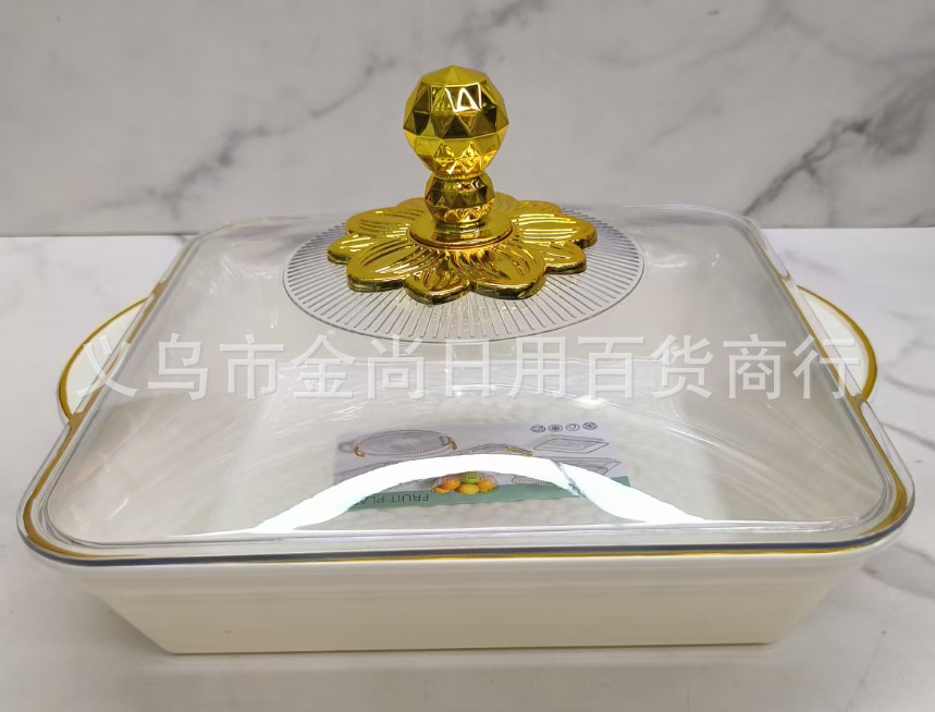 长方形正方形金边带盖水果收纳盒零食杂物整理盒子厨房蔬菜密封盘