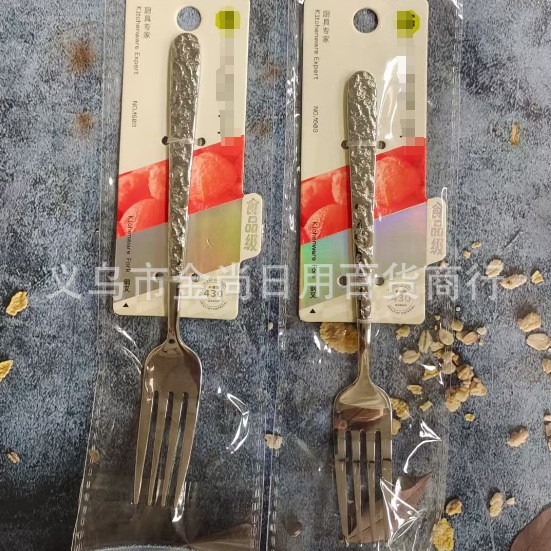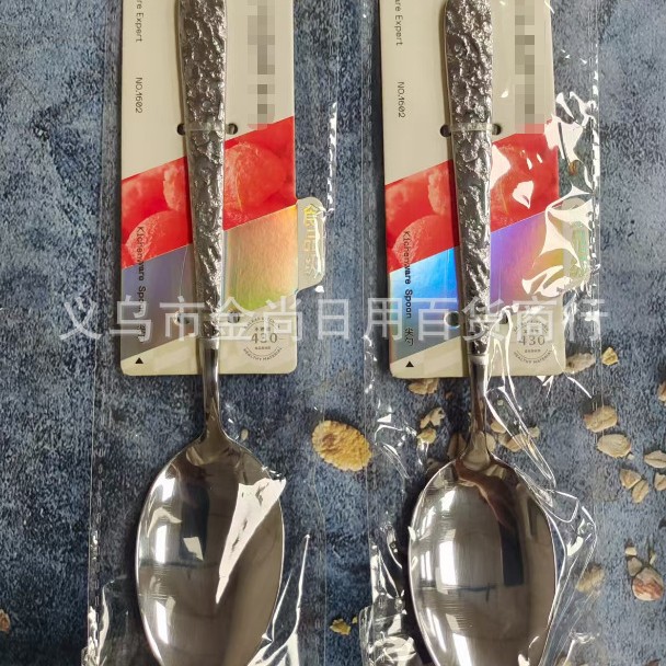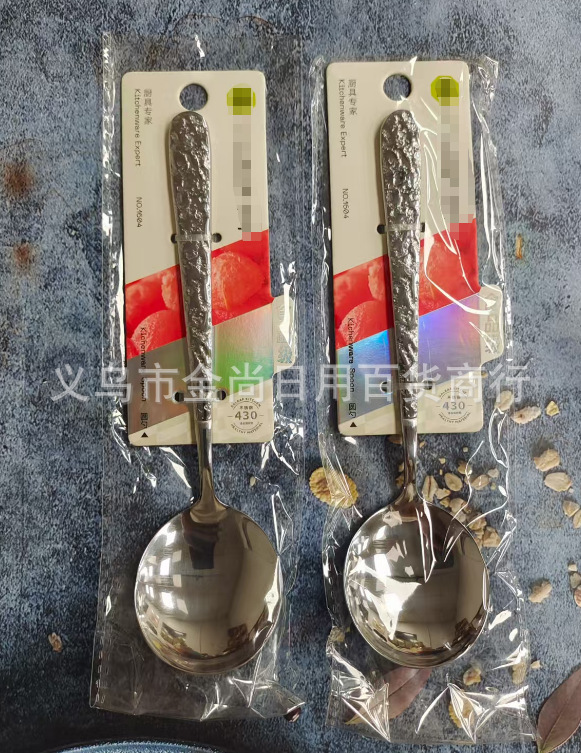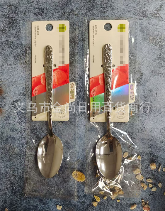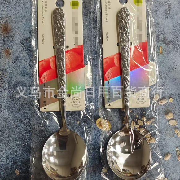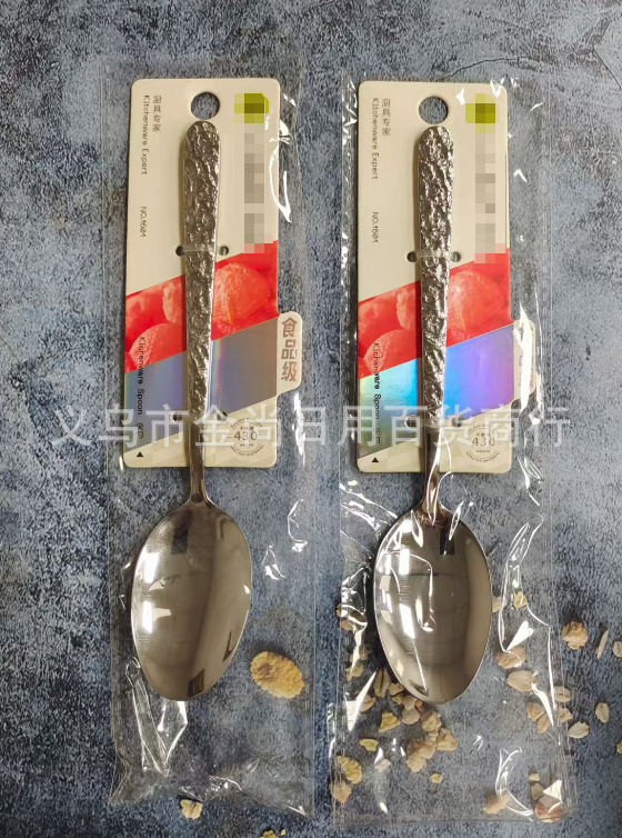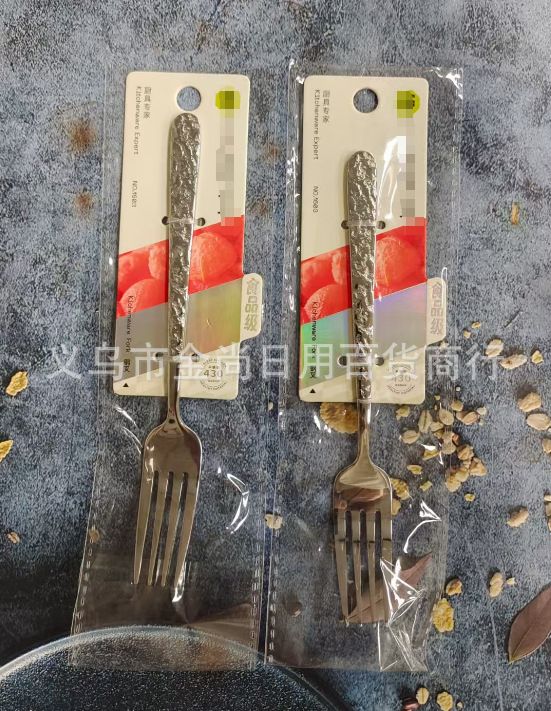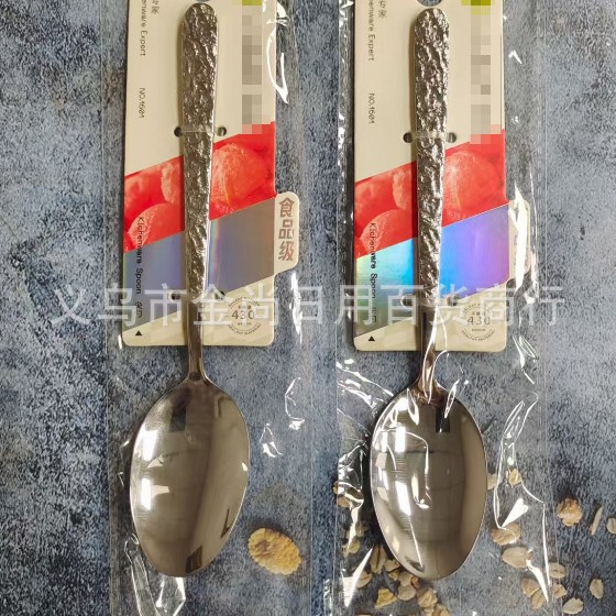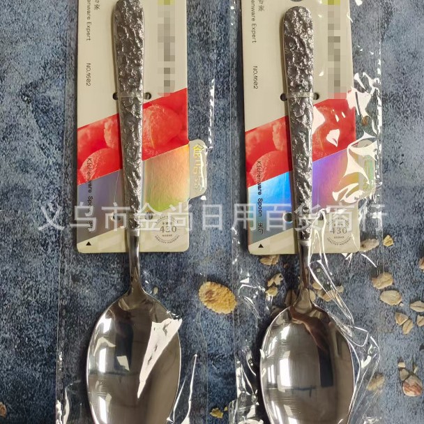 锤纹不锈钢勺子叉子网红石纹勺餐厅吃饭勺韩式长柄冰裂纹羹甜品勺
