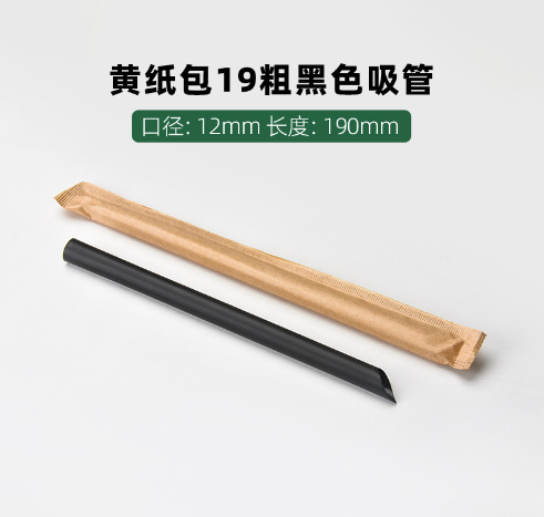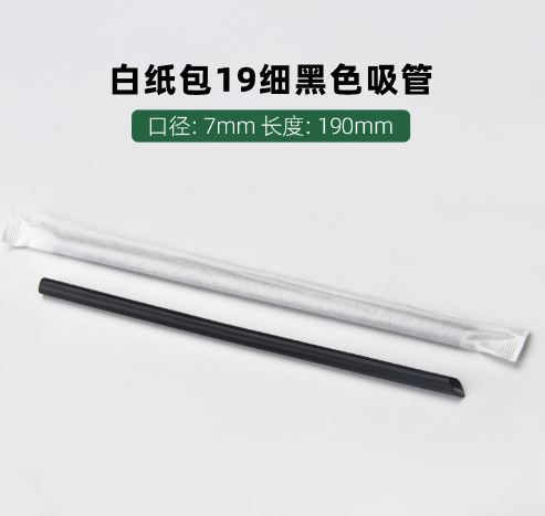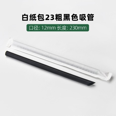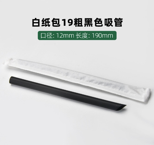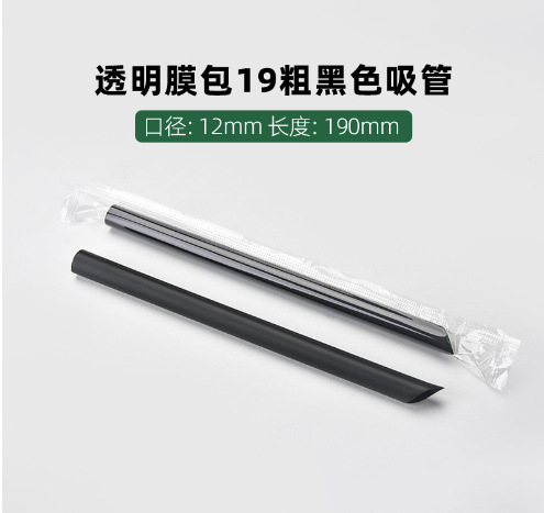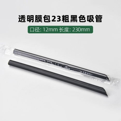 一次性19cm奶茶杯吸管pp材质耐温23cm珍珠吸管尖头黑色塑料纸包装