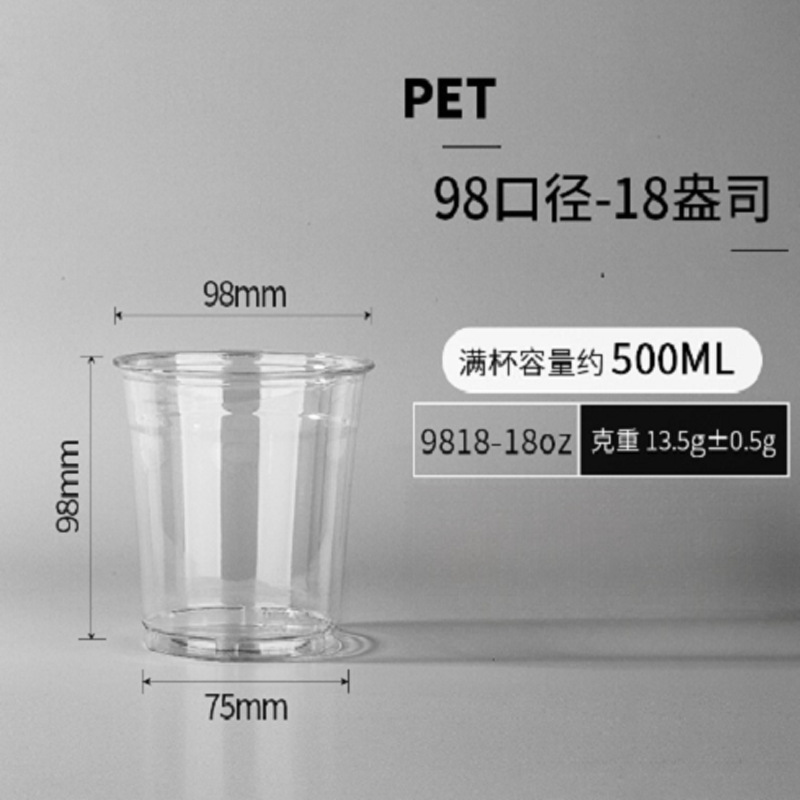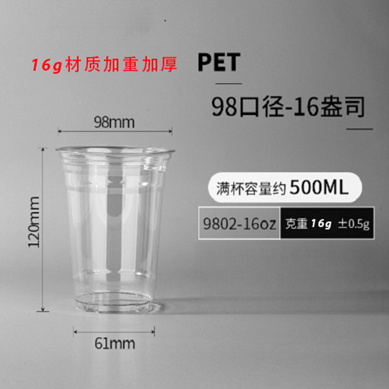 一次性冷饮杯500ml奶茶杯pet加厚冷饮柠檬茶杯98口径透明冰咖啡杯