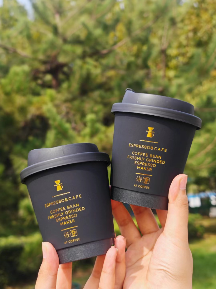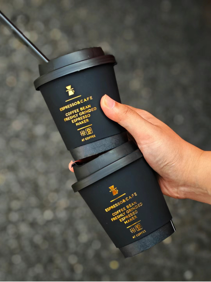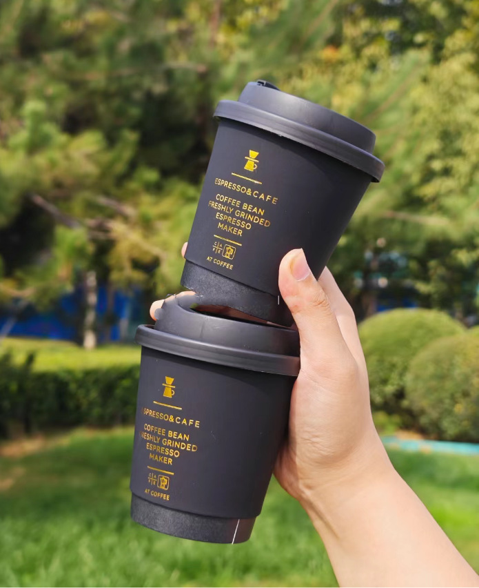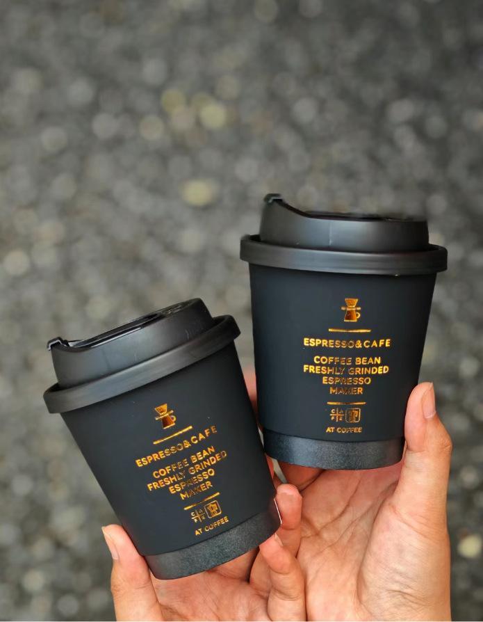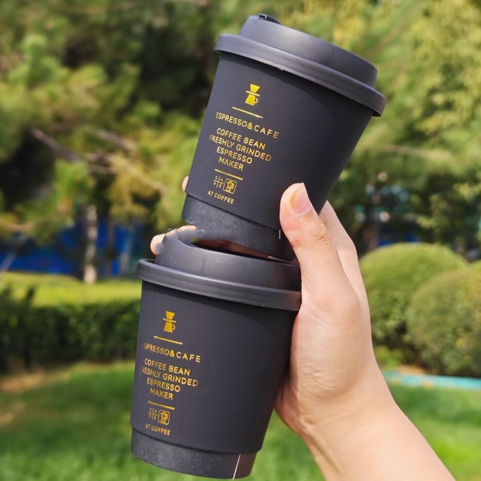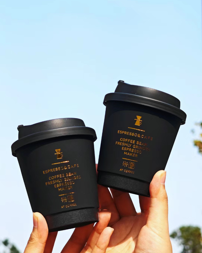 90口径一次性黑色奶茶杯触感纸烫金双层中空纸杯高颜值咖啡杯热饮