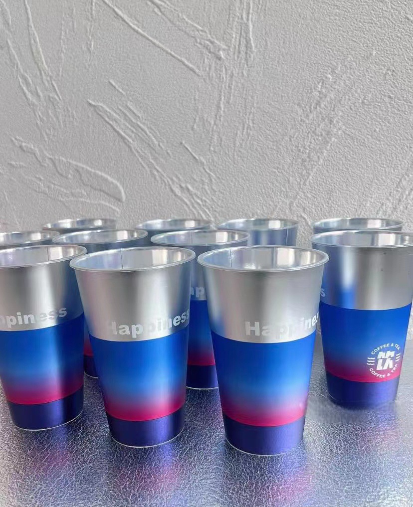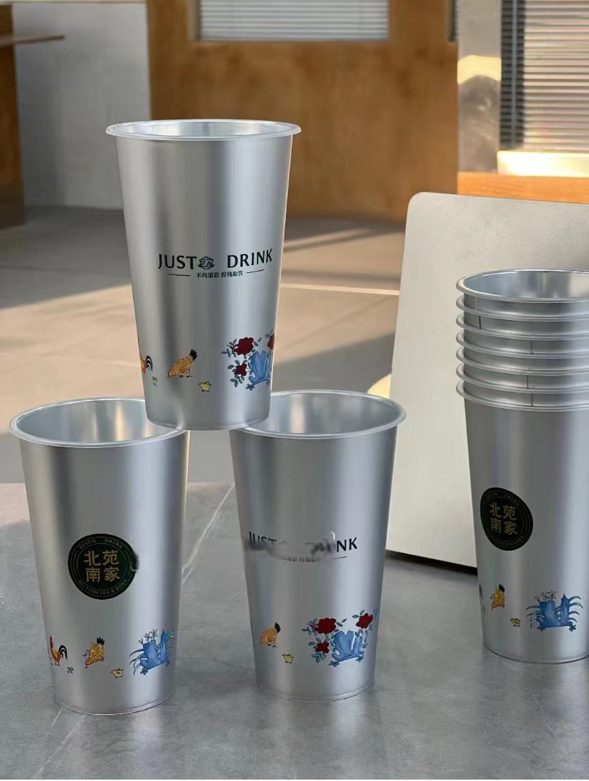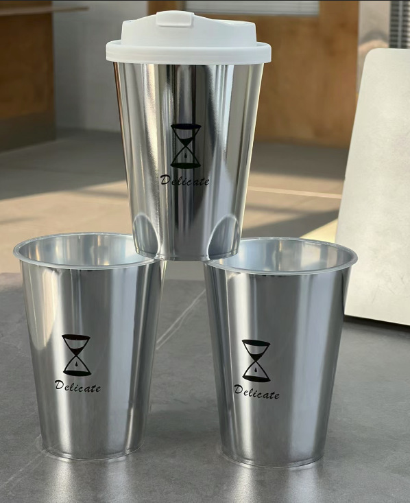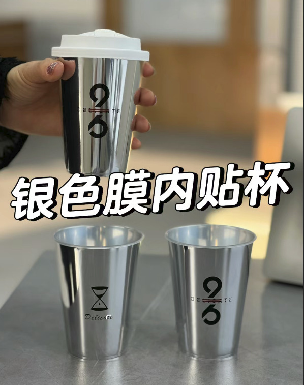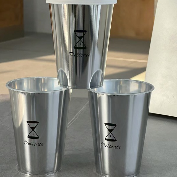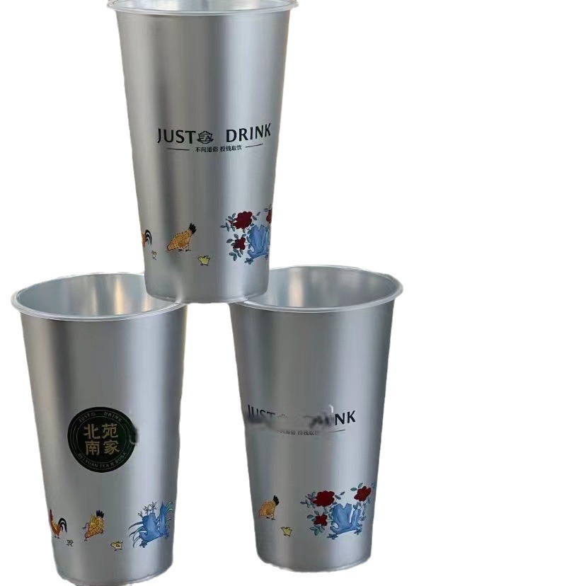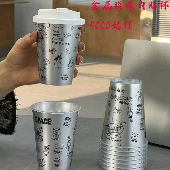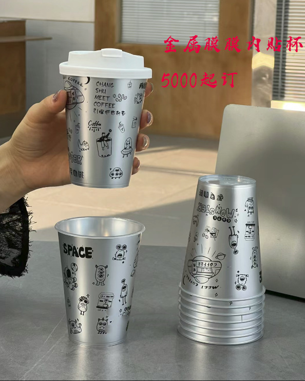 90口径一次性奶茶杯金属膜膜内贴杯pp加厚注塑咖啡杯500ml磨砂膜