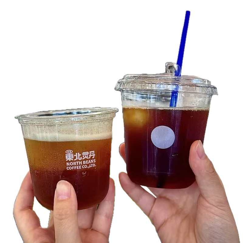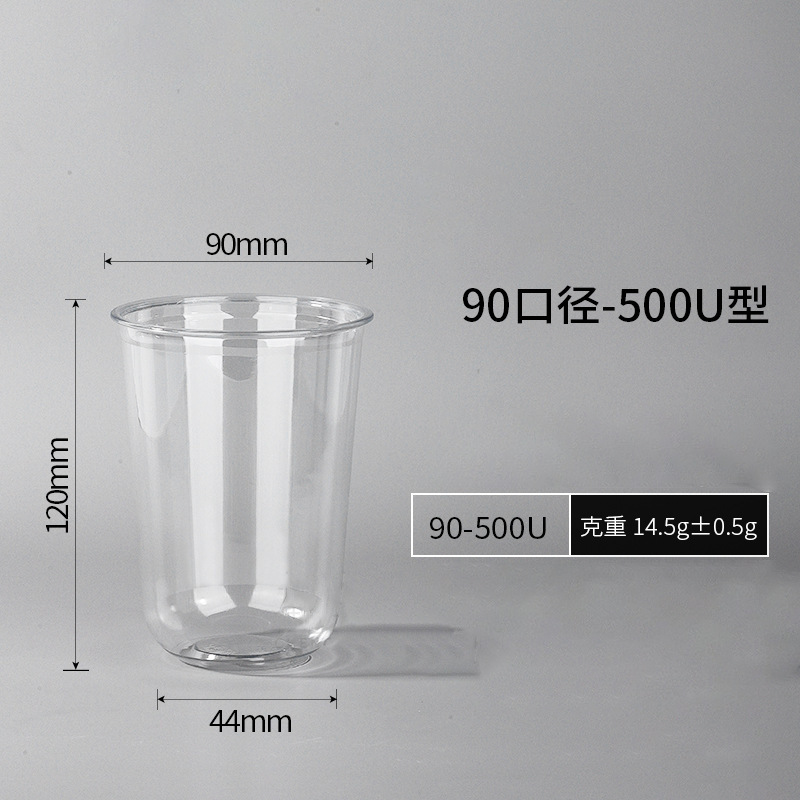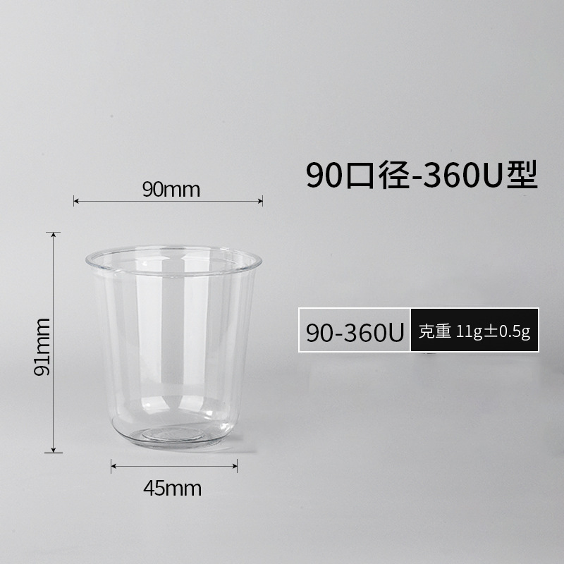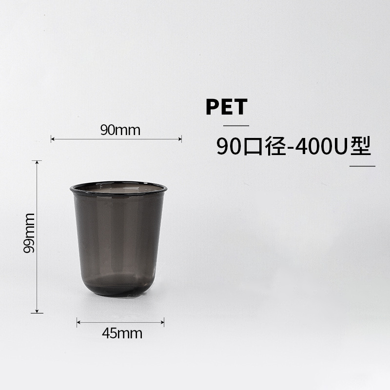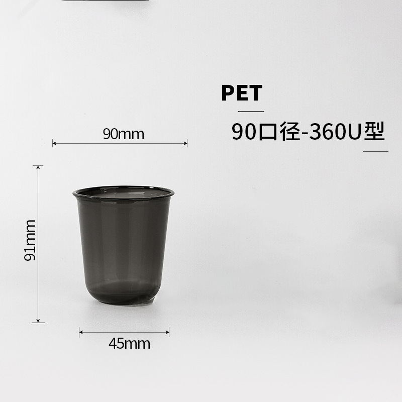 一次性U型咖啡杯PET冷饮杯加厚高透奶茶杯90口径黑色杯商用带盖子