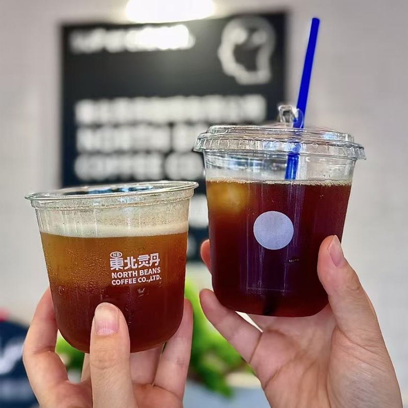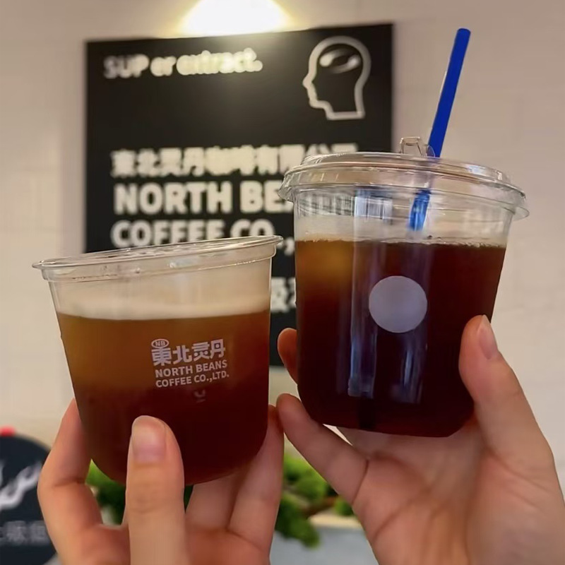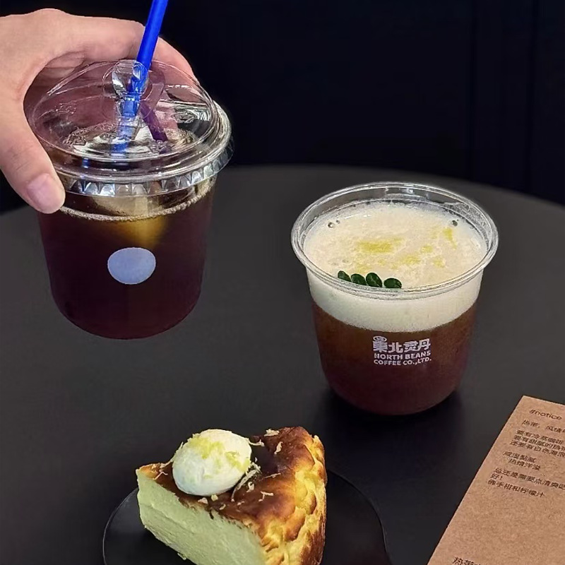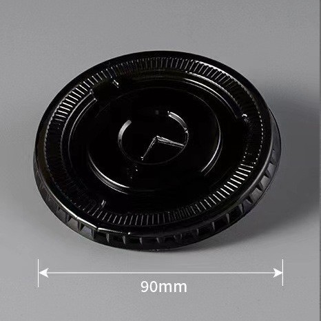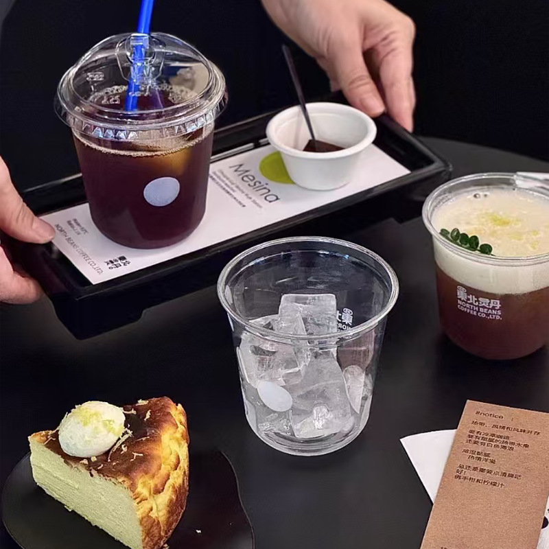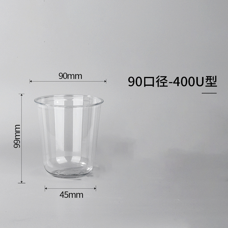 一次性U型咖啡杯PET冷饮杯加厚高透奶茶杯90口径黑色杯商用带盖子
