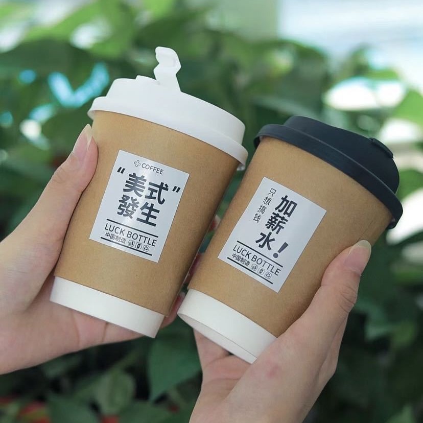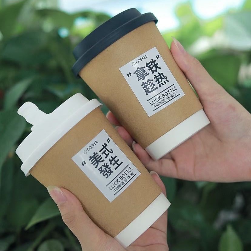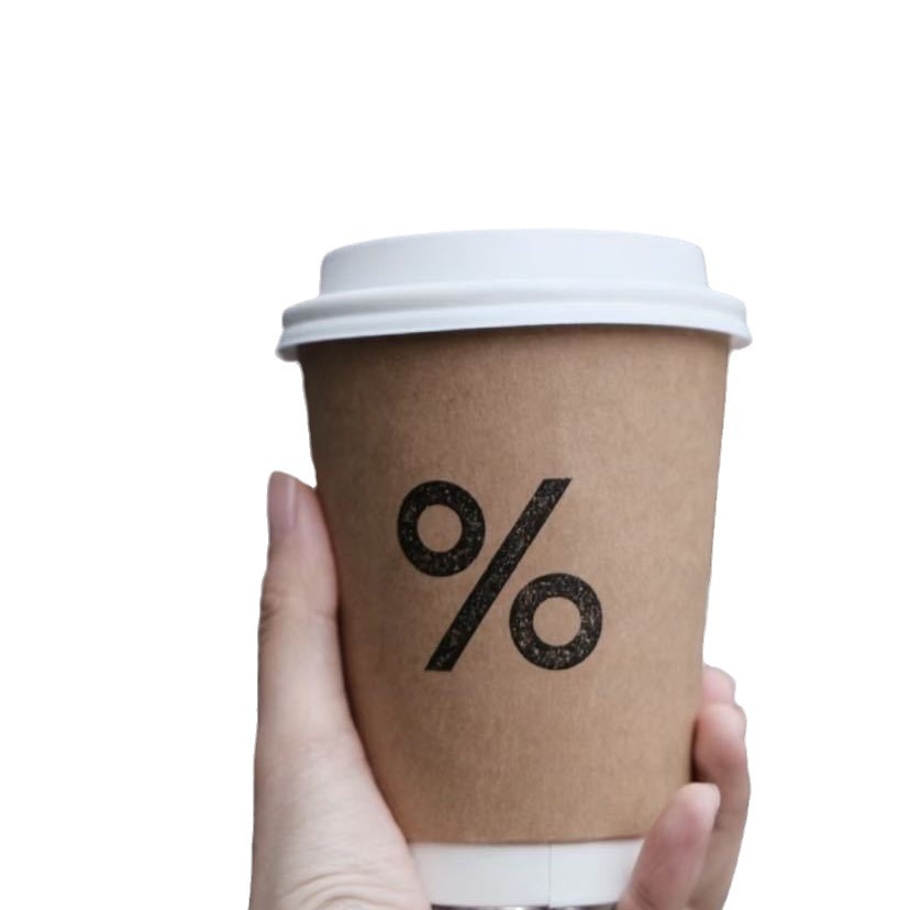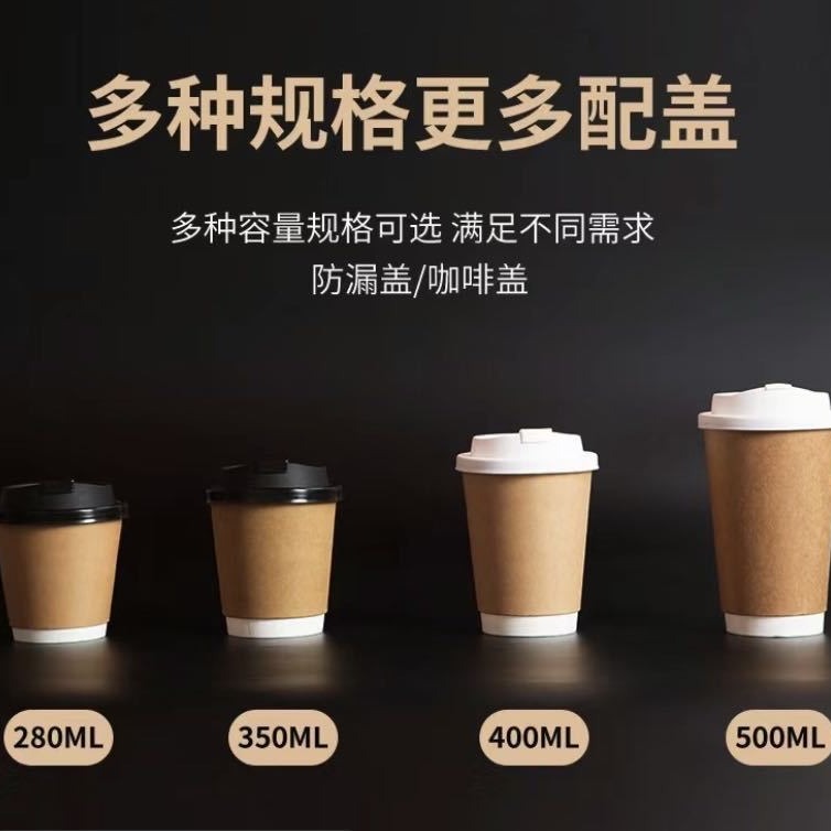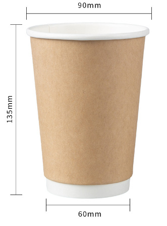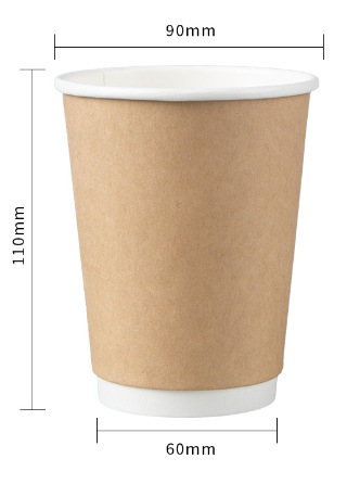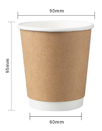 商用一次性90口径牛皮纸双层中空黄色纸杯热饮咖啡小容量奶茶杯