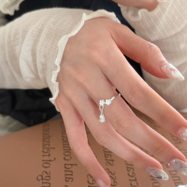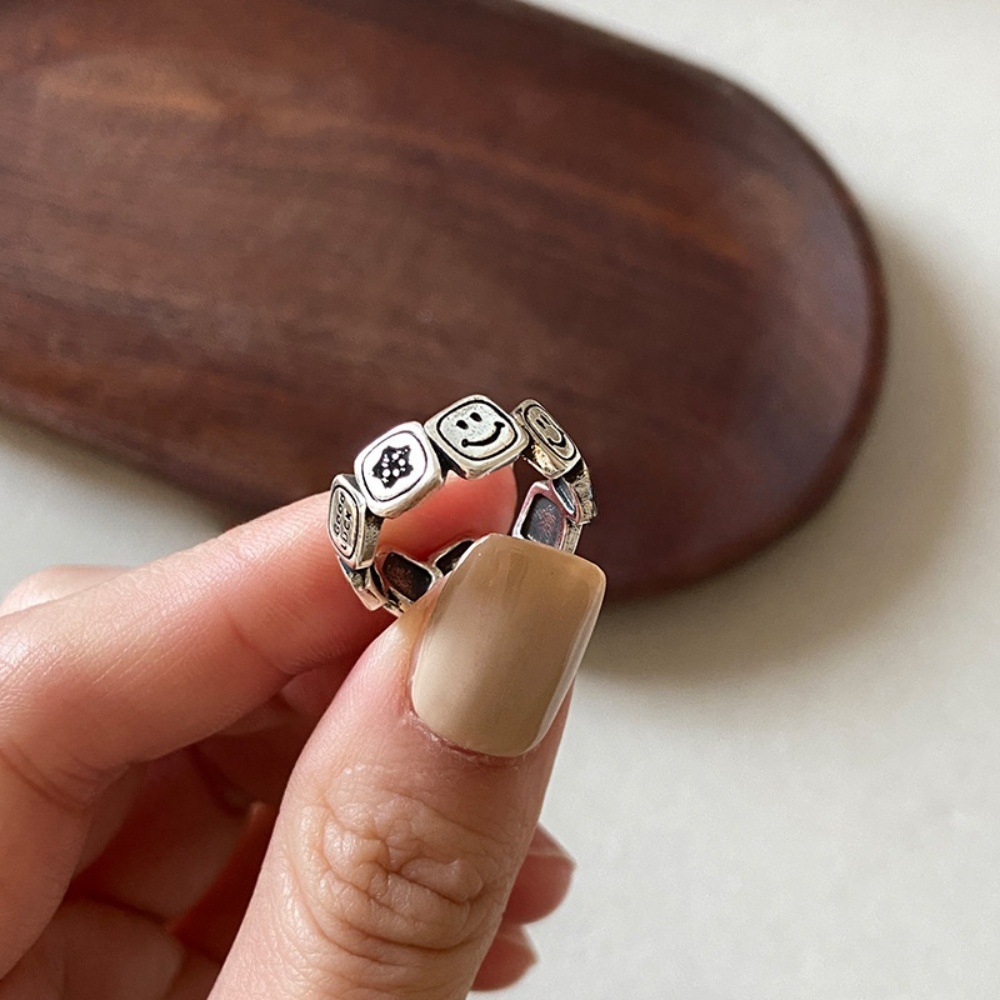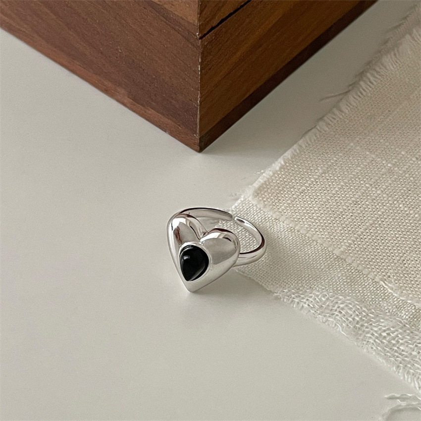 s925纯银复古黑玛瑙戒指女不掉色冷淡风开口小众高级轻奢百搭新品