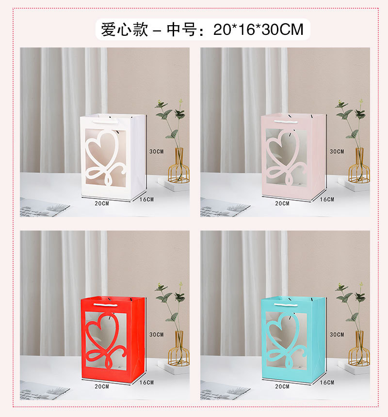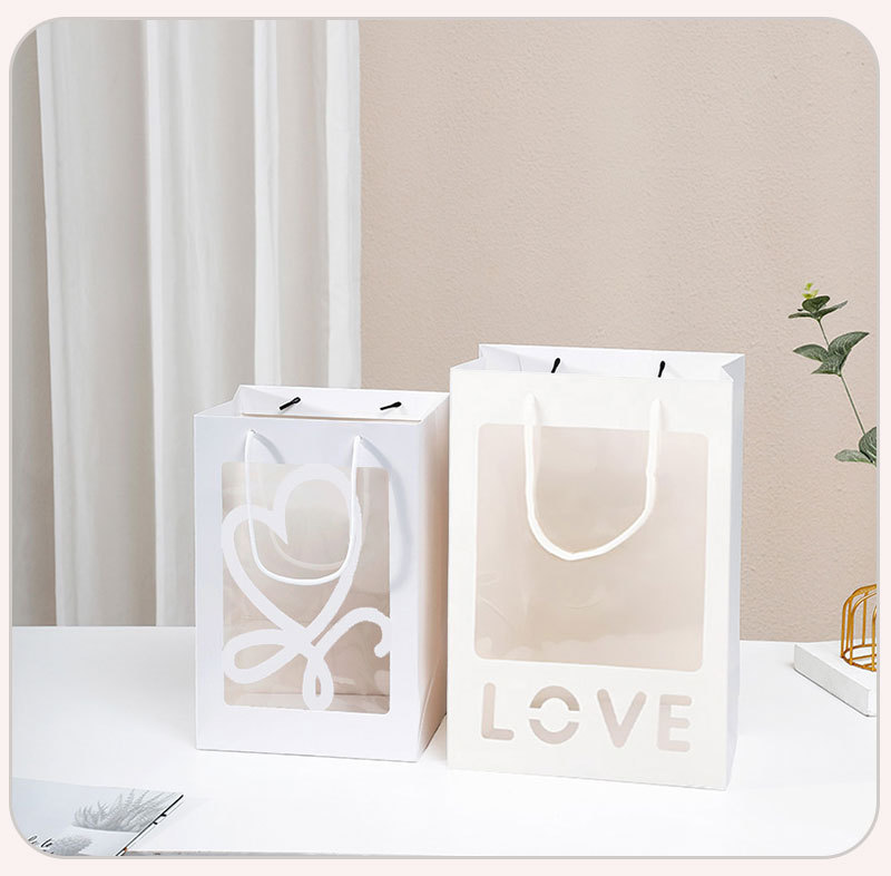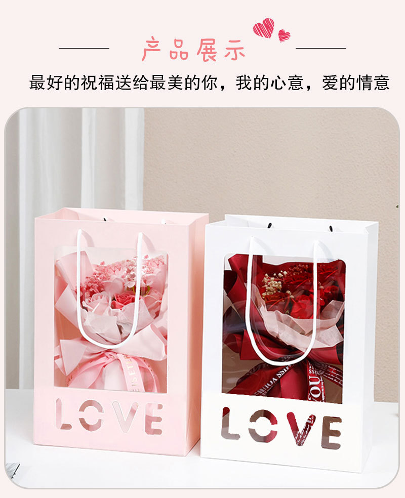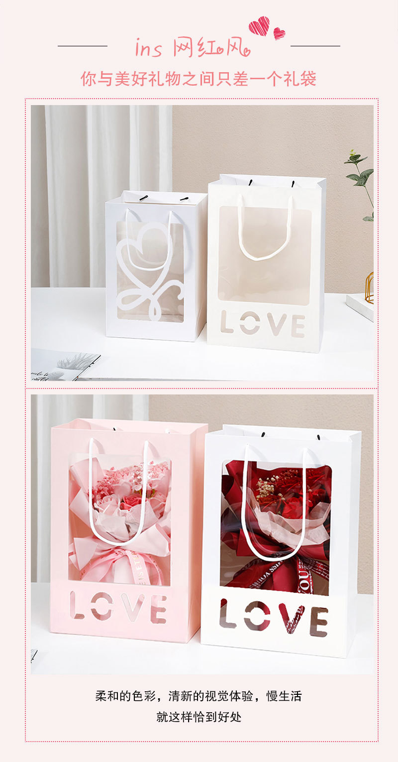 情人节520简约鲜花手提袋透明开窗礼品袋花束橱窗袋节日伴手礼盒