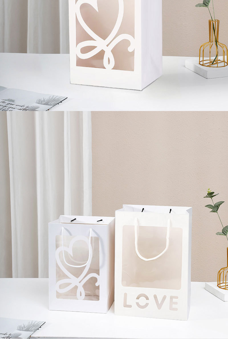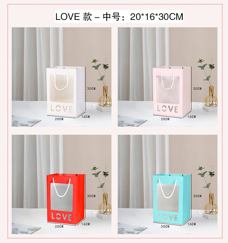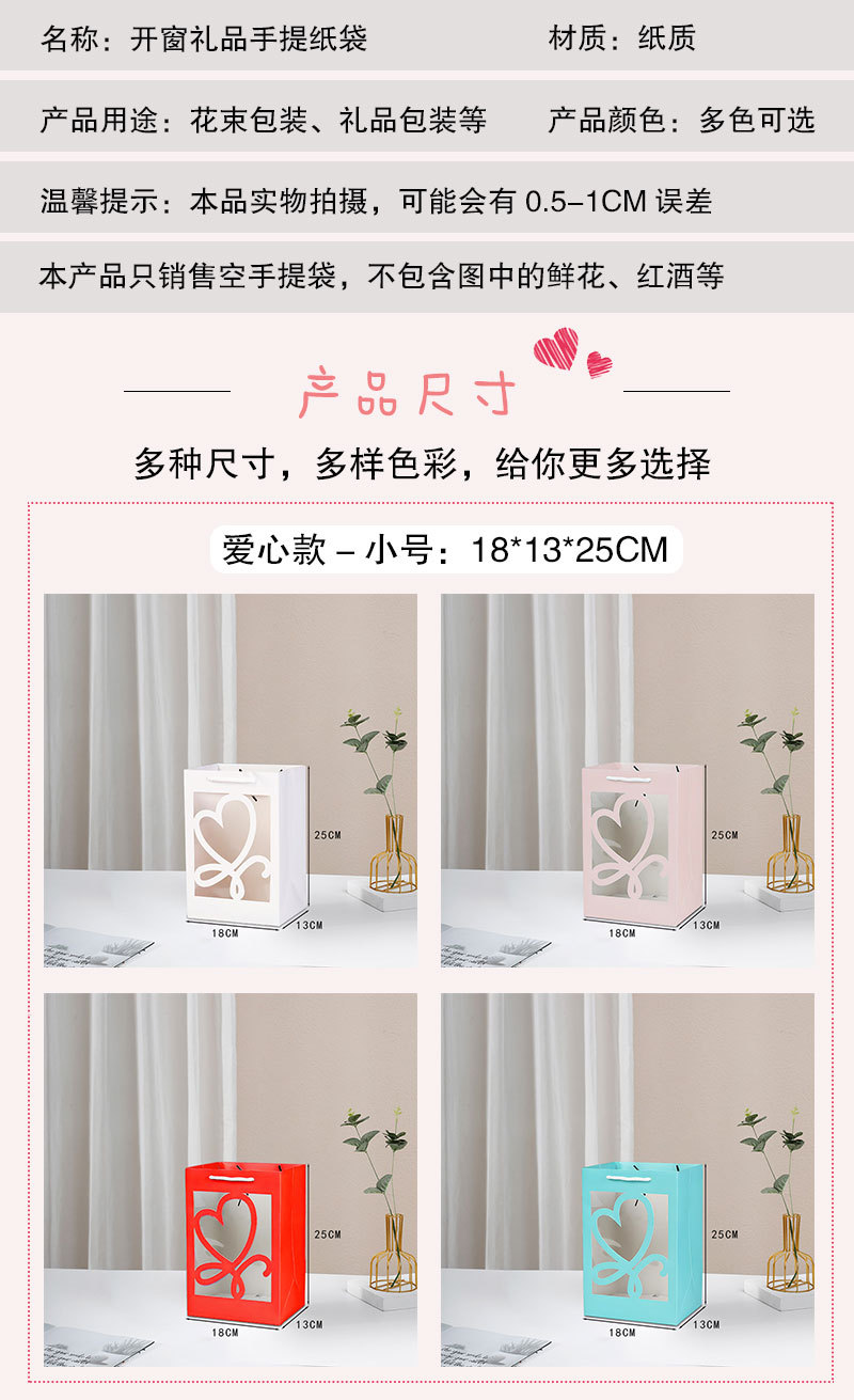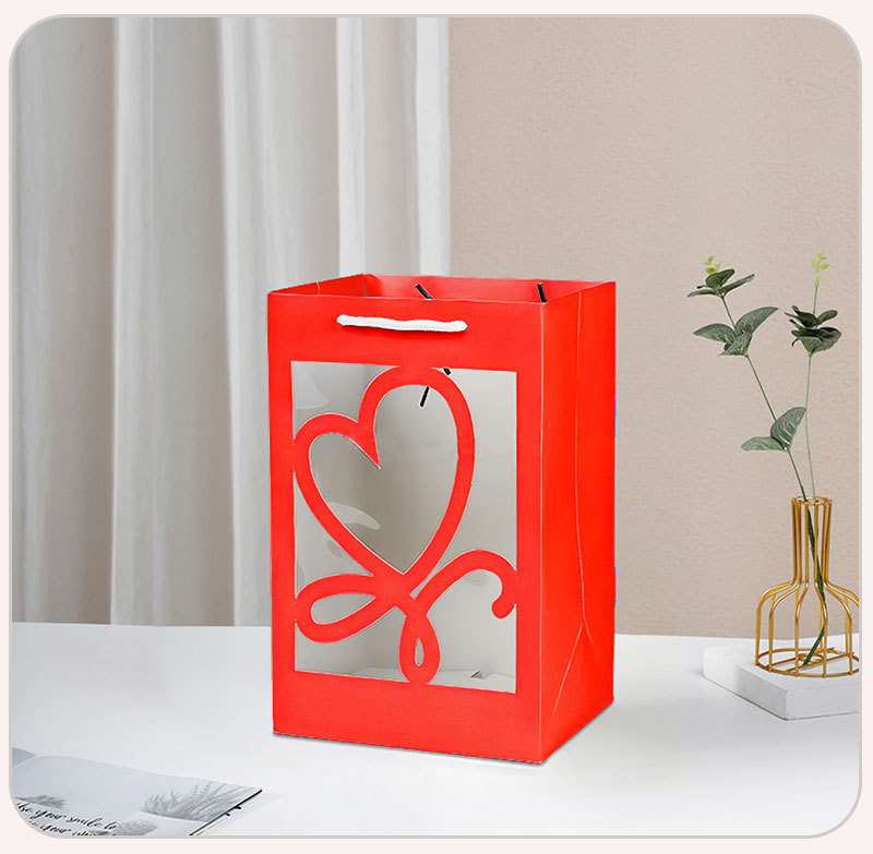 情人节520简约鲜花手提袋透明开窗礼品袋花束橱窗袋节日伴手礼盒