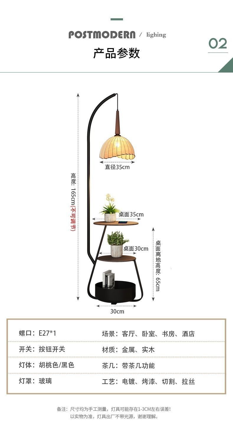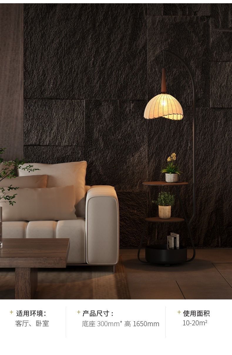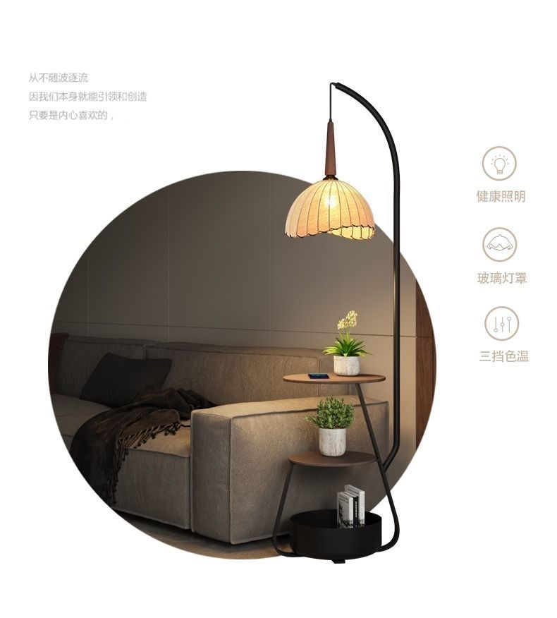 中古风落地灯复古客厅沙发旁钓鱼灯茶几灯一体两用卧室床头氛围灯