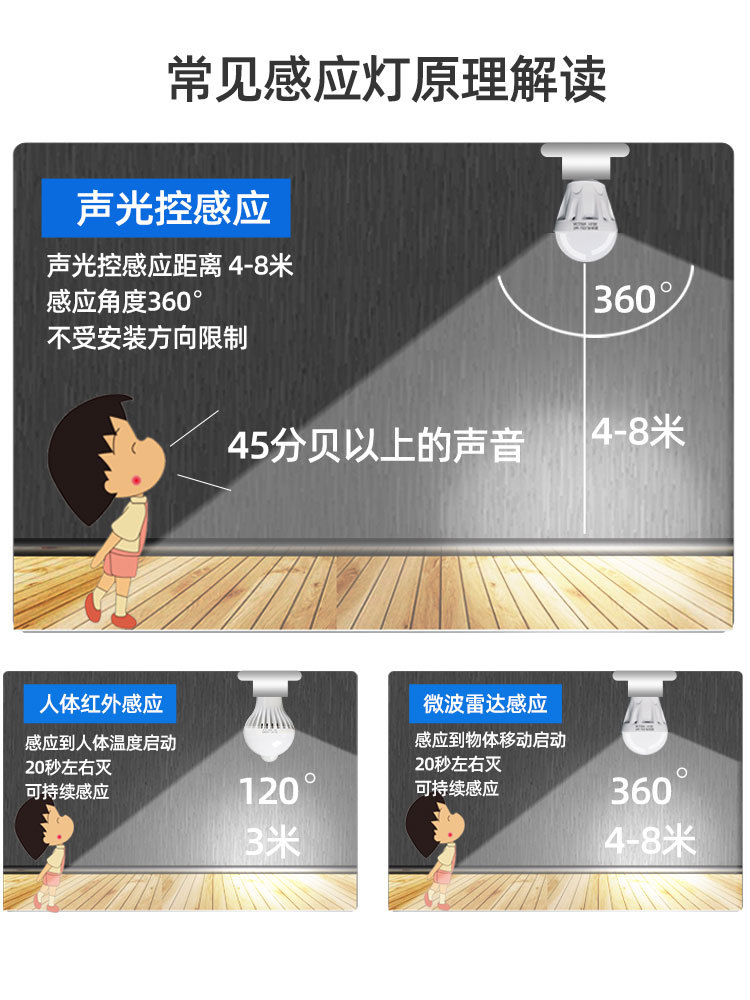 led声光控灯泡E7大螺口楼道过道家用节能省电白光走廊声控灯泡