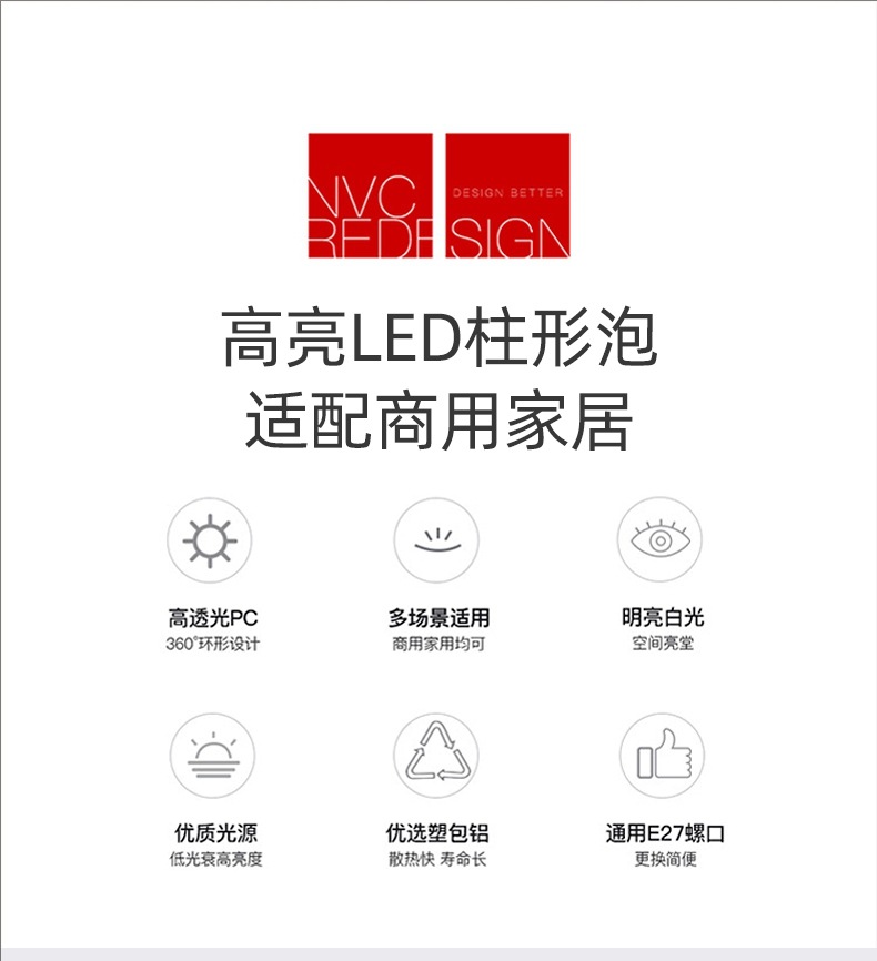 雷士照明LED灯泡节能灯E27螺口家用大功率球泡5W7W9W12W18W30W36W