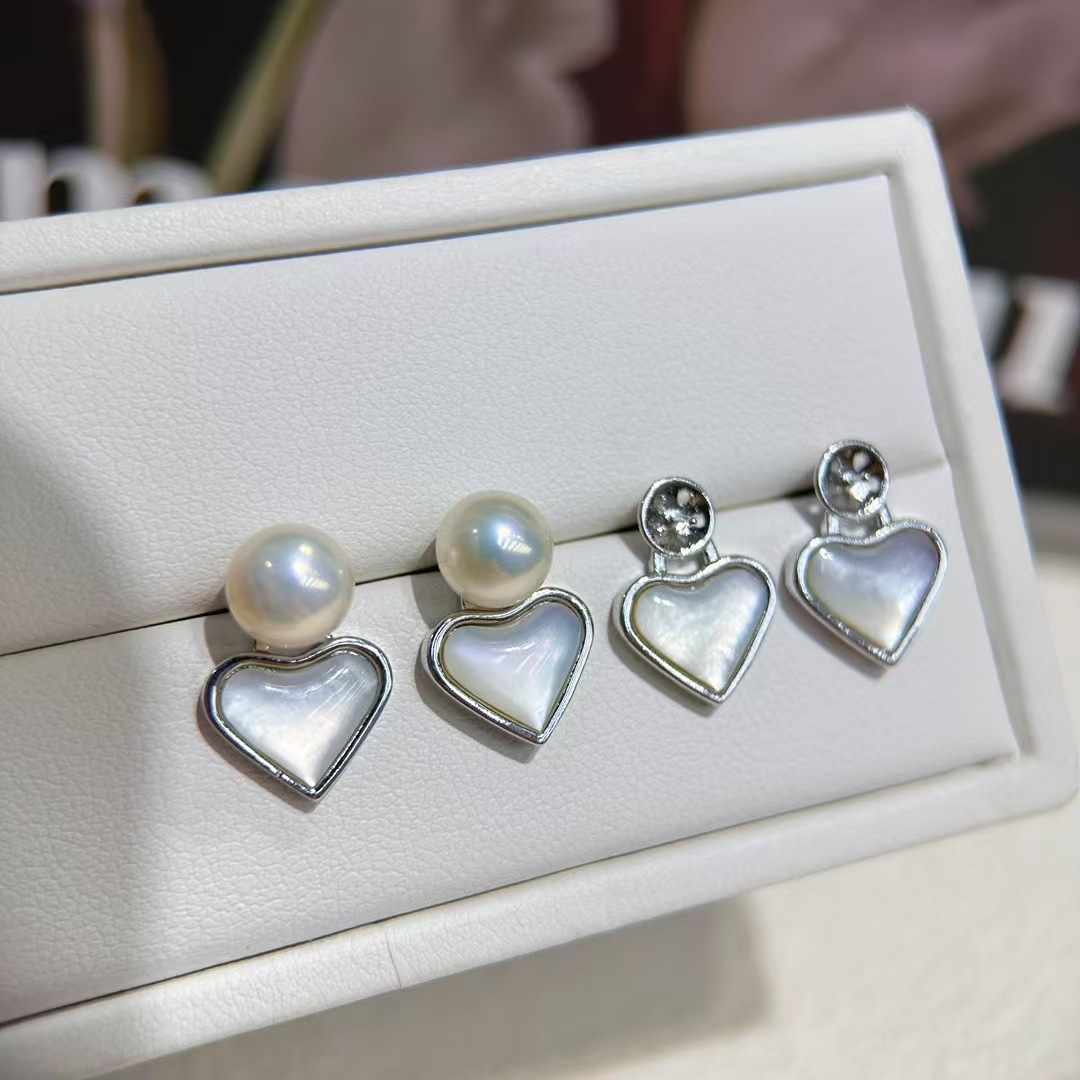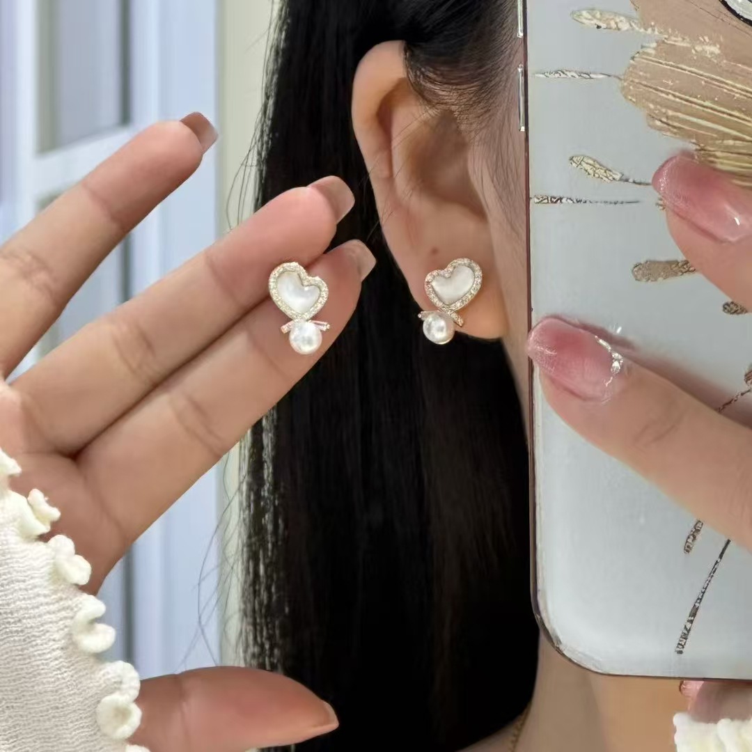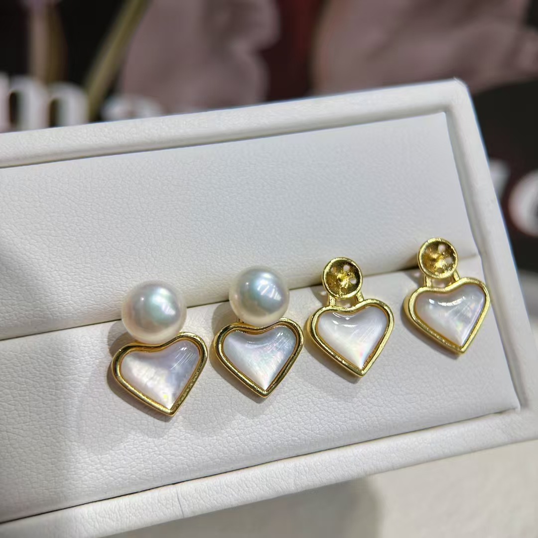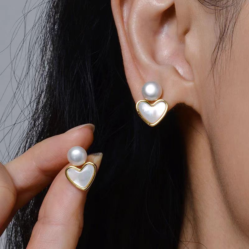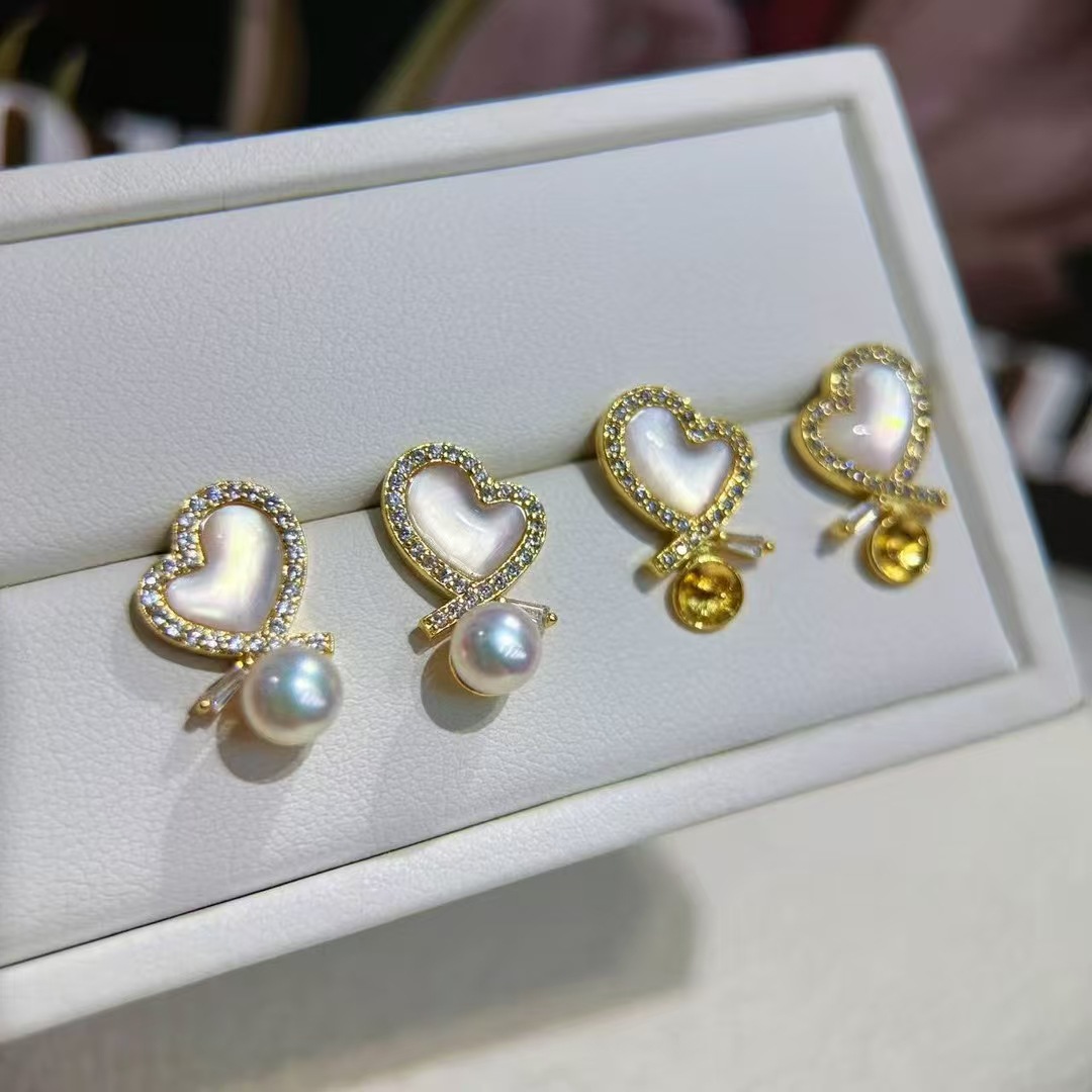 DIY珍珠托小众新款贝壳淡爱心耳钉小巧高级感简约轻奢风耳环耳饰