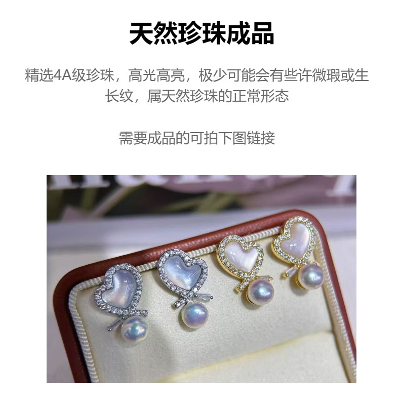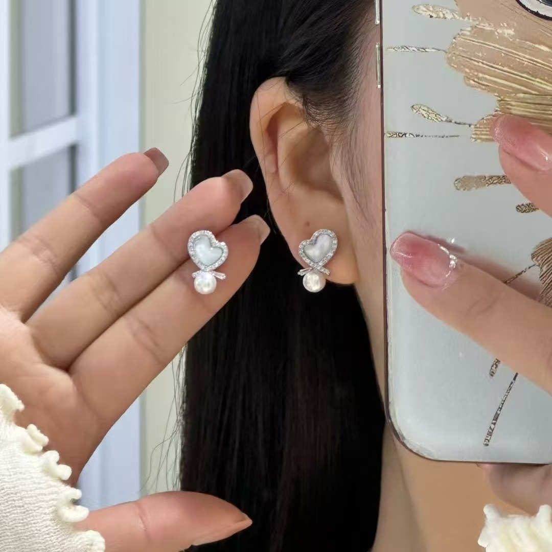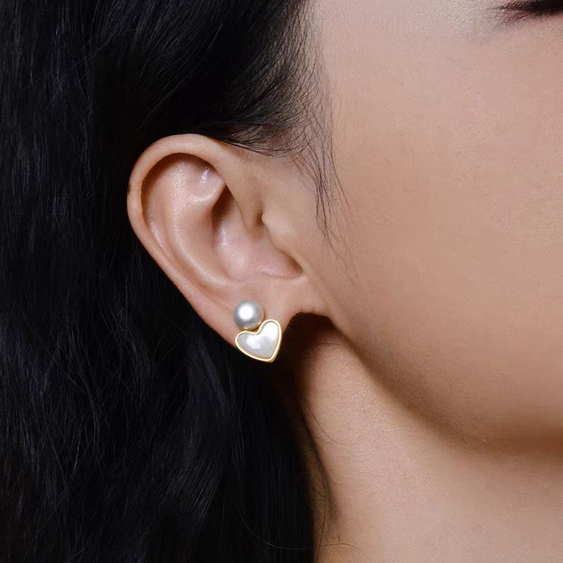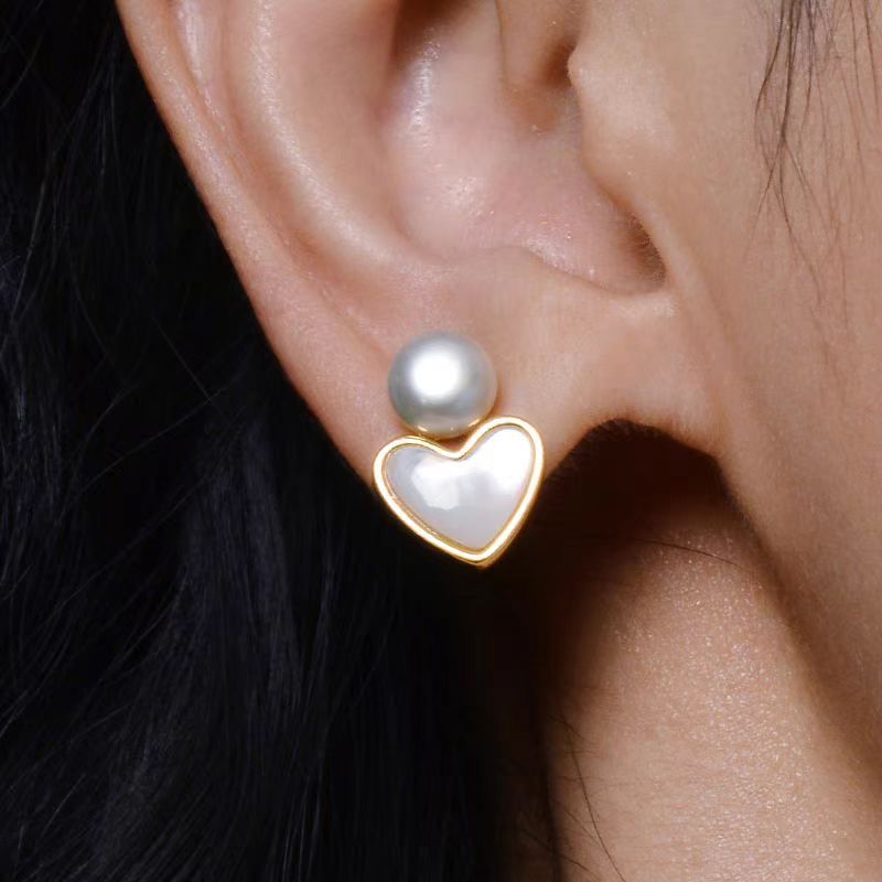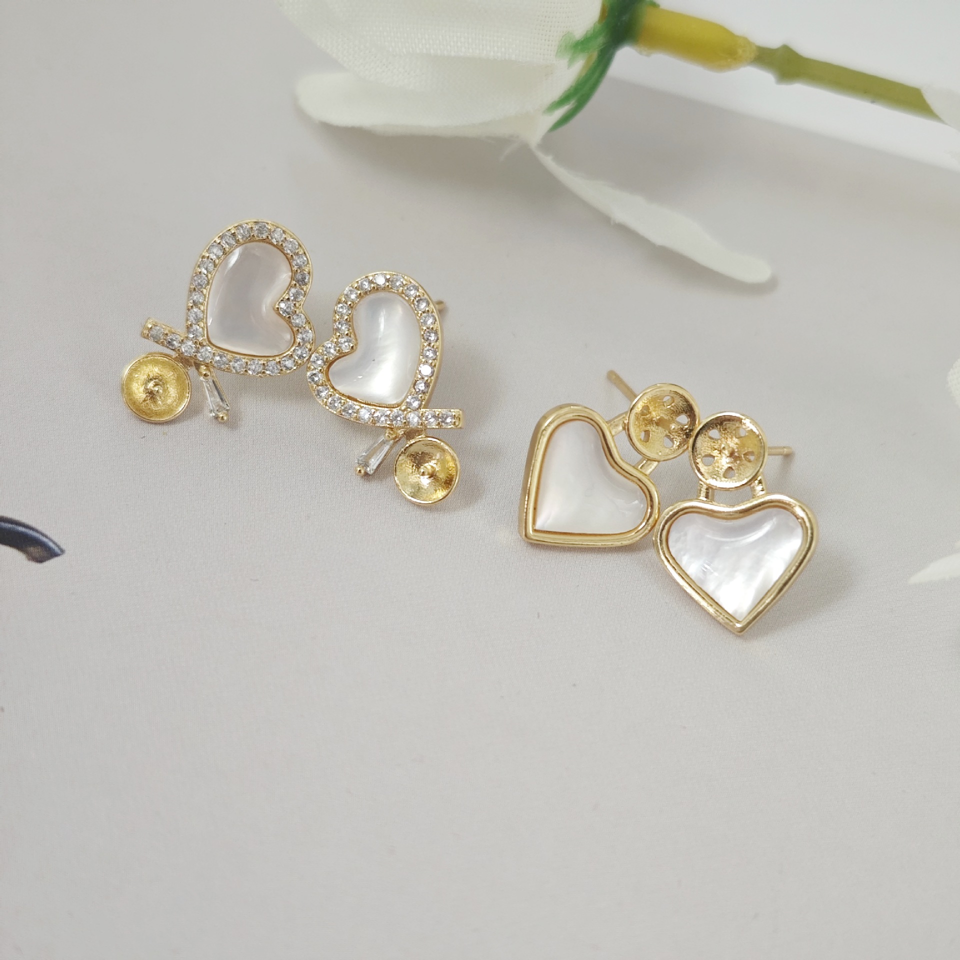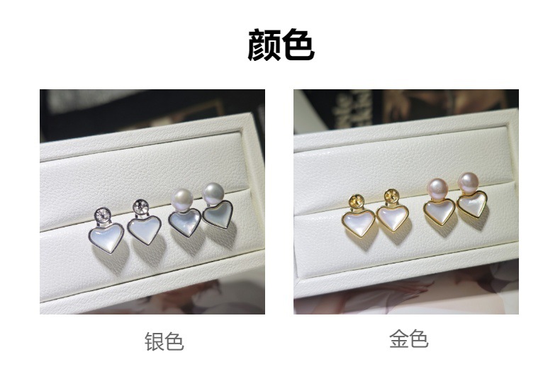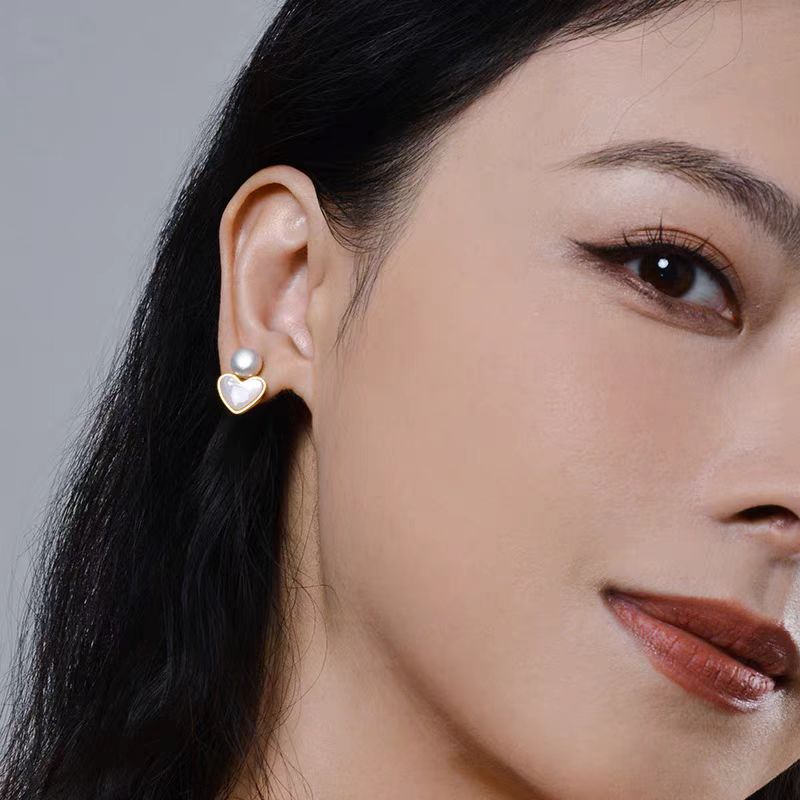 DIY珍珠托小众新款贝壳淡爱心耳钉小巧高级感简约轻奢风耳环耳饰
