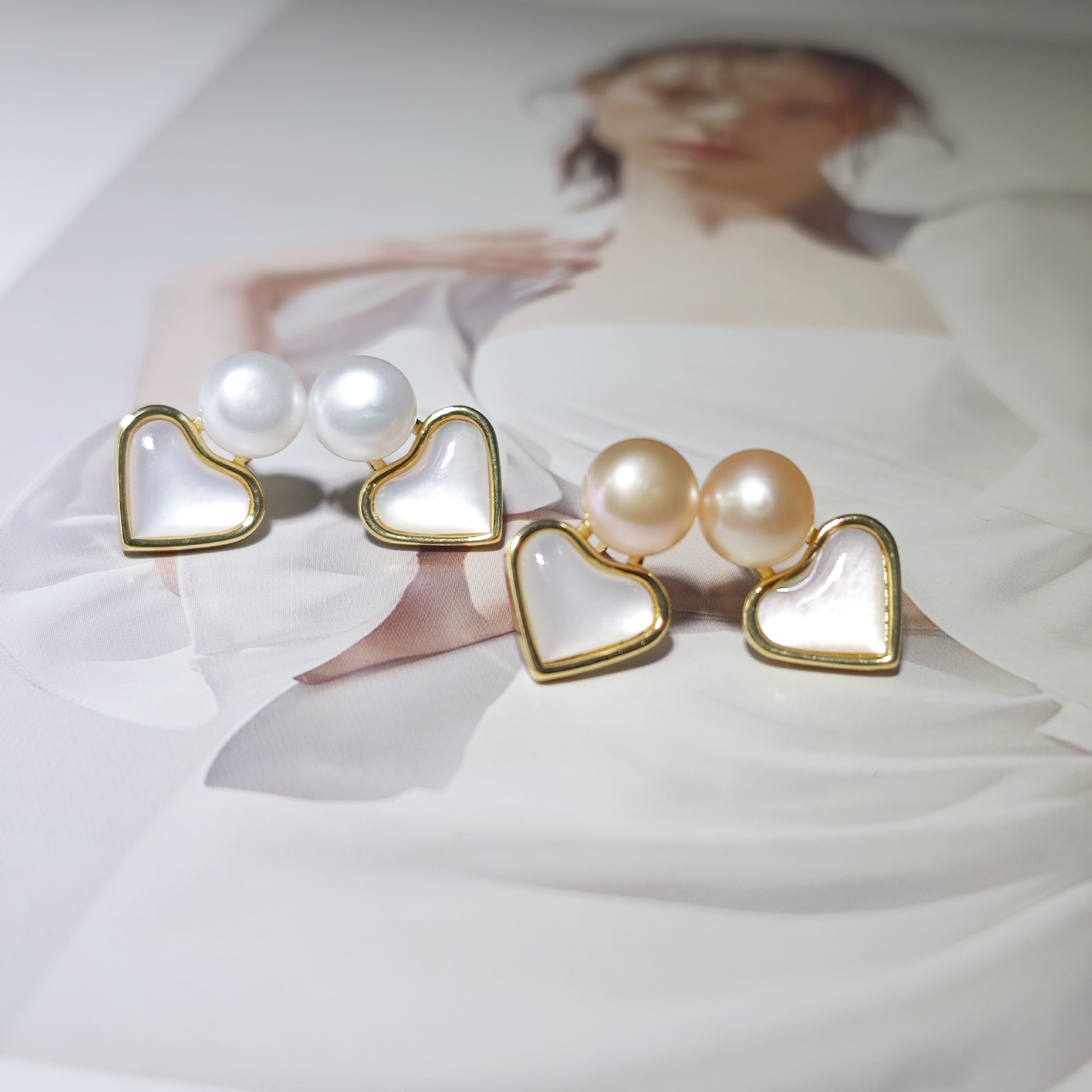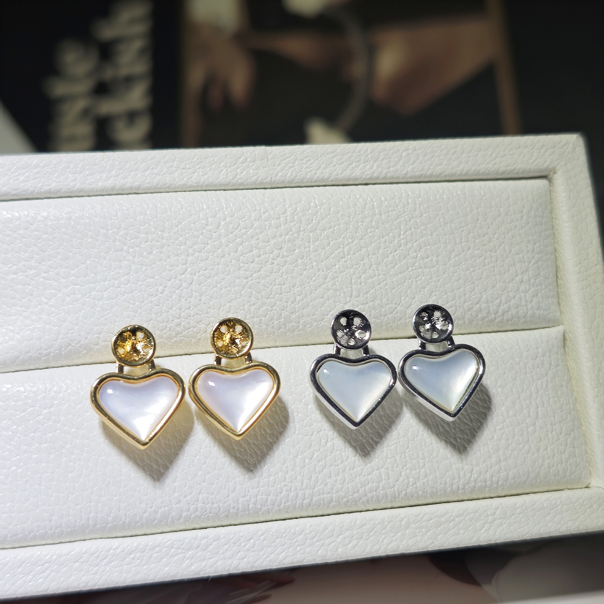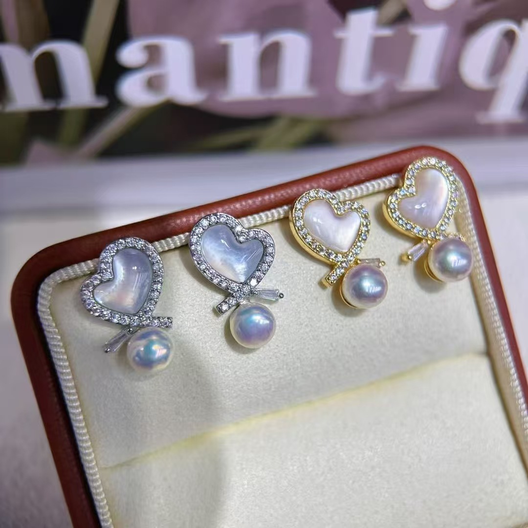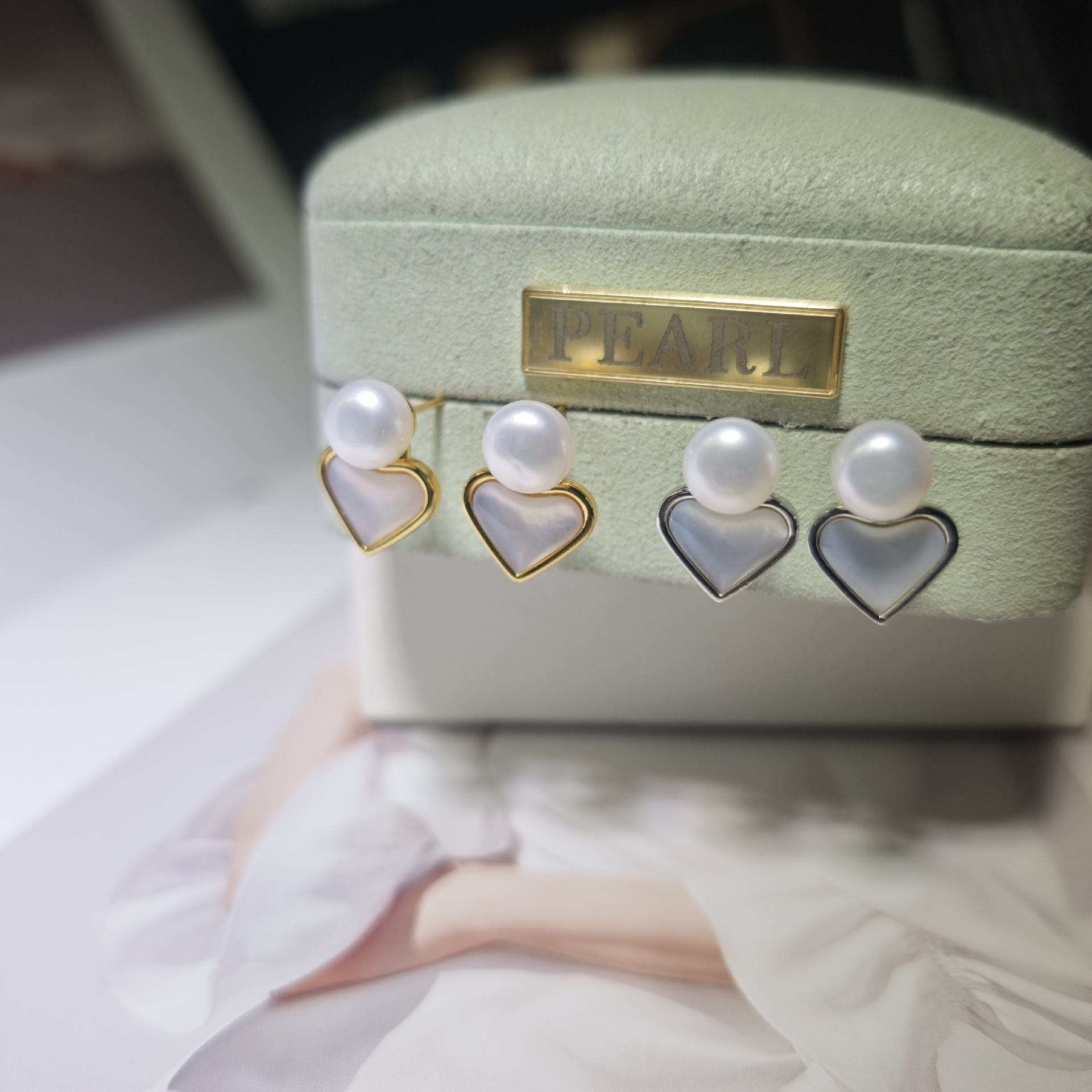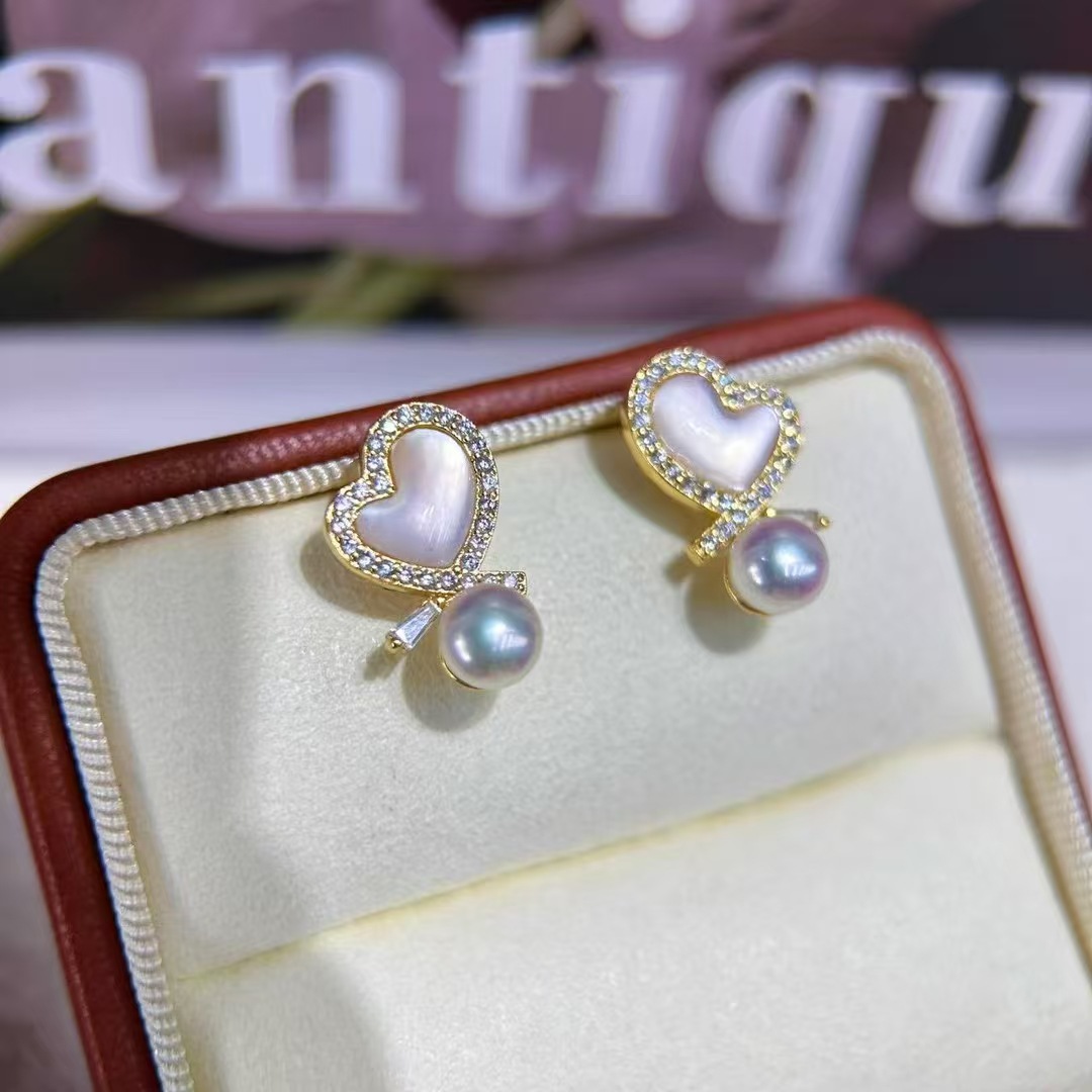 DIY珍珠托小众新款贝壳淡爱心耳钉小巧高级感简约轻奢风耳环耳饰
