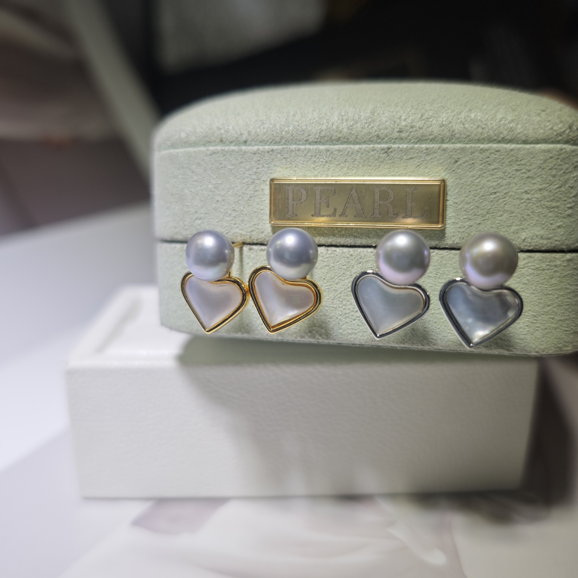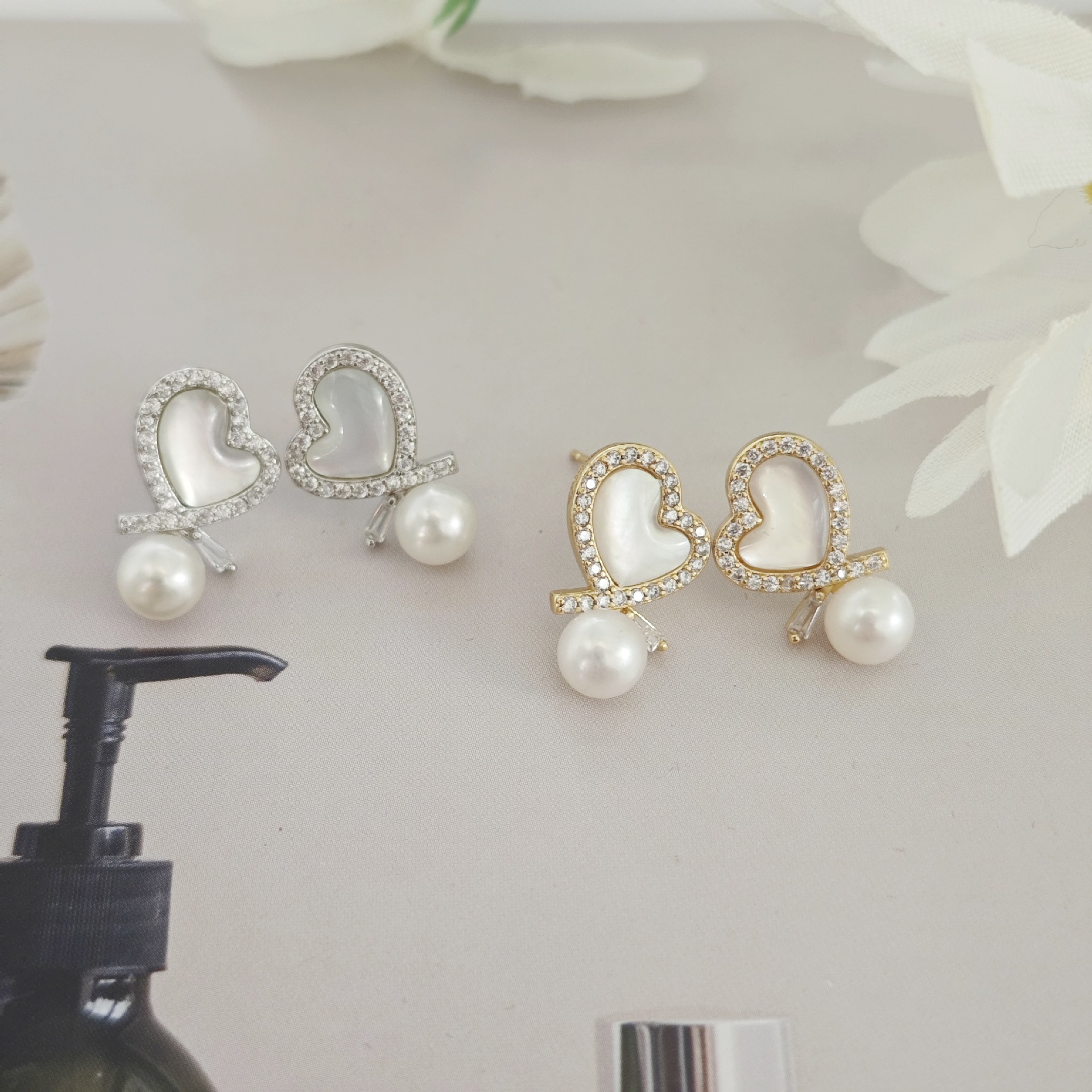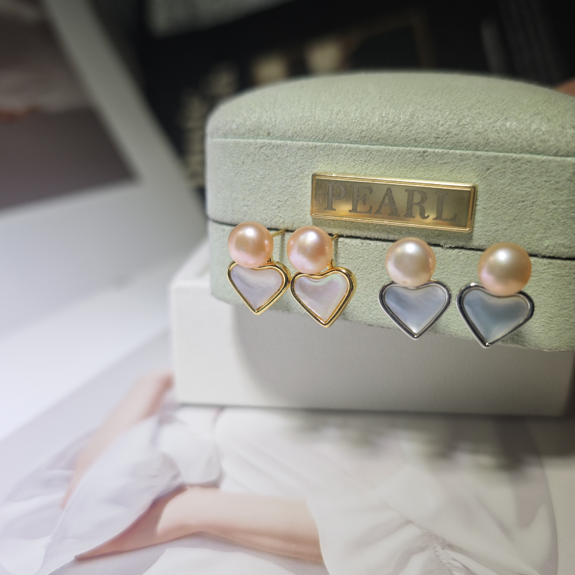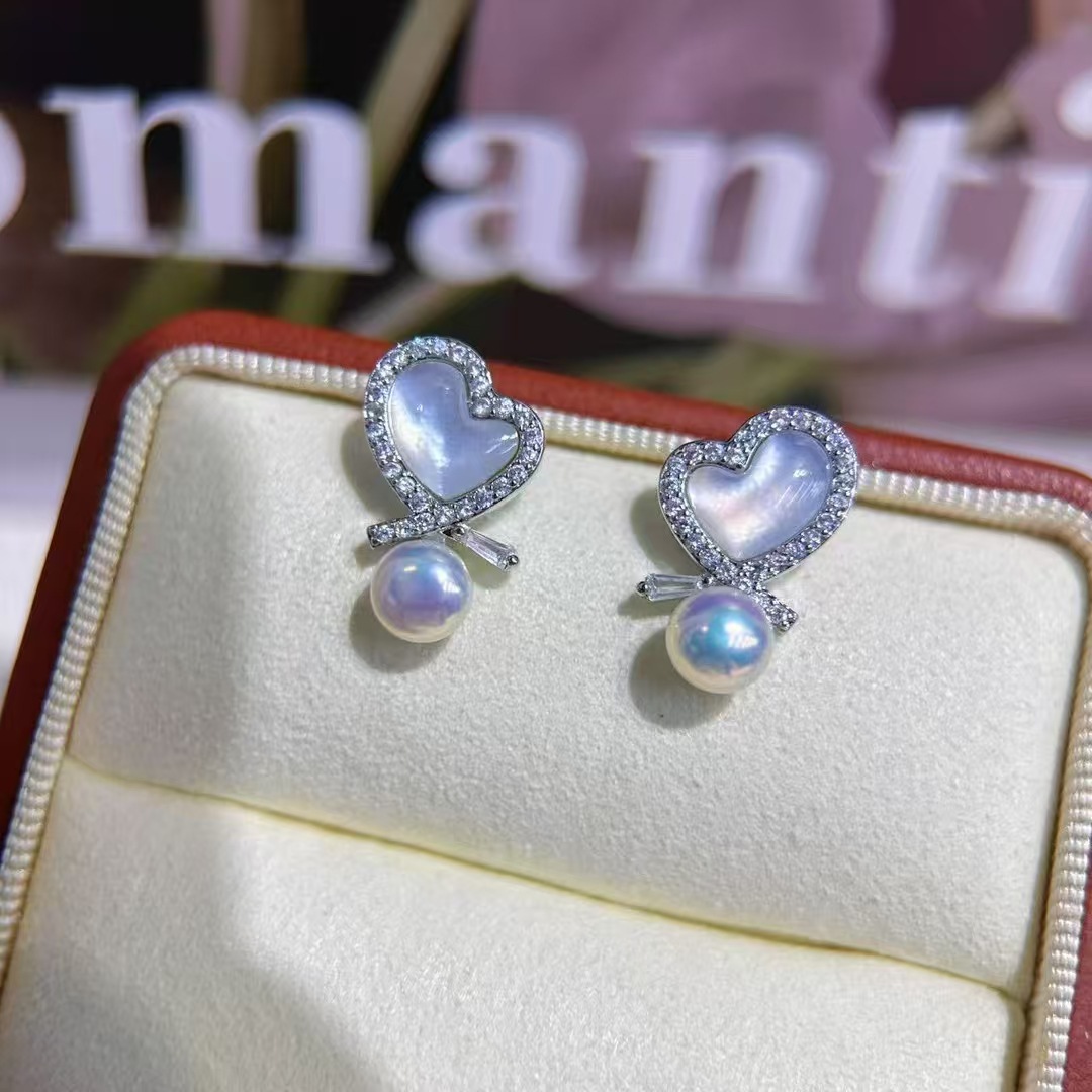 DIY珍珠托小众新款贝壳淡爱心耳钉小巧高级感简约轻奢风耳环耳饰