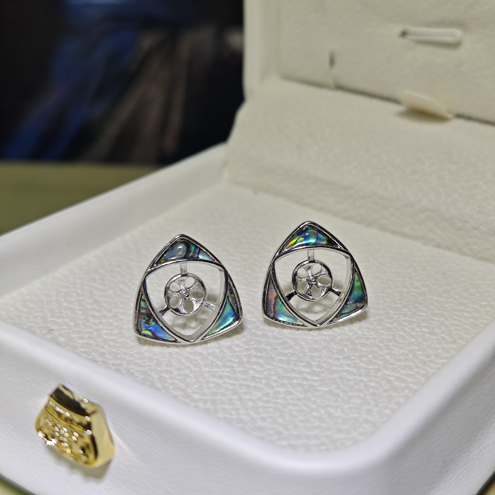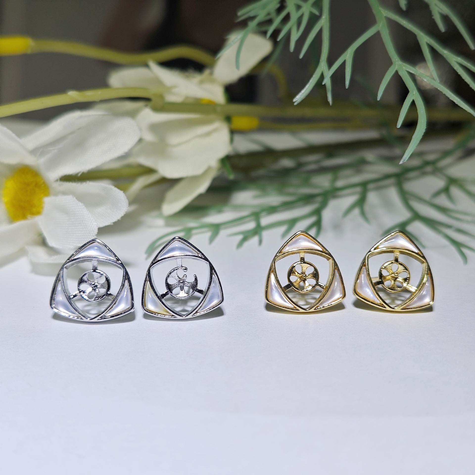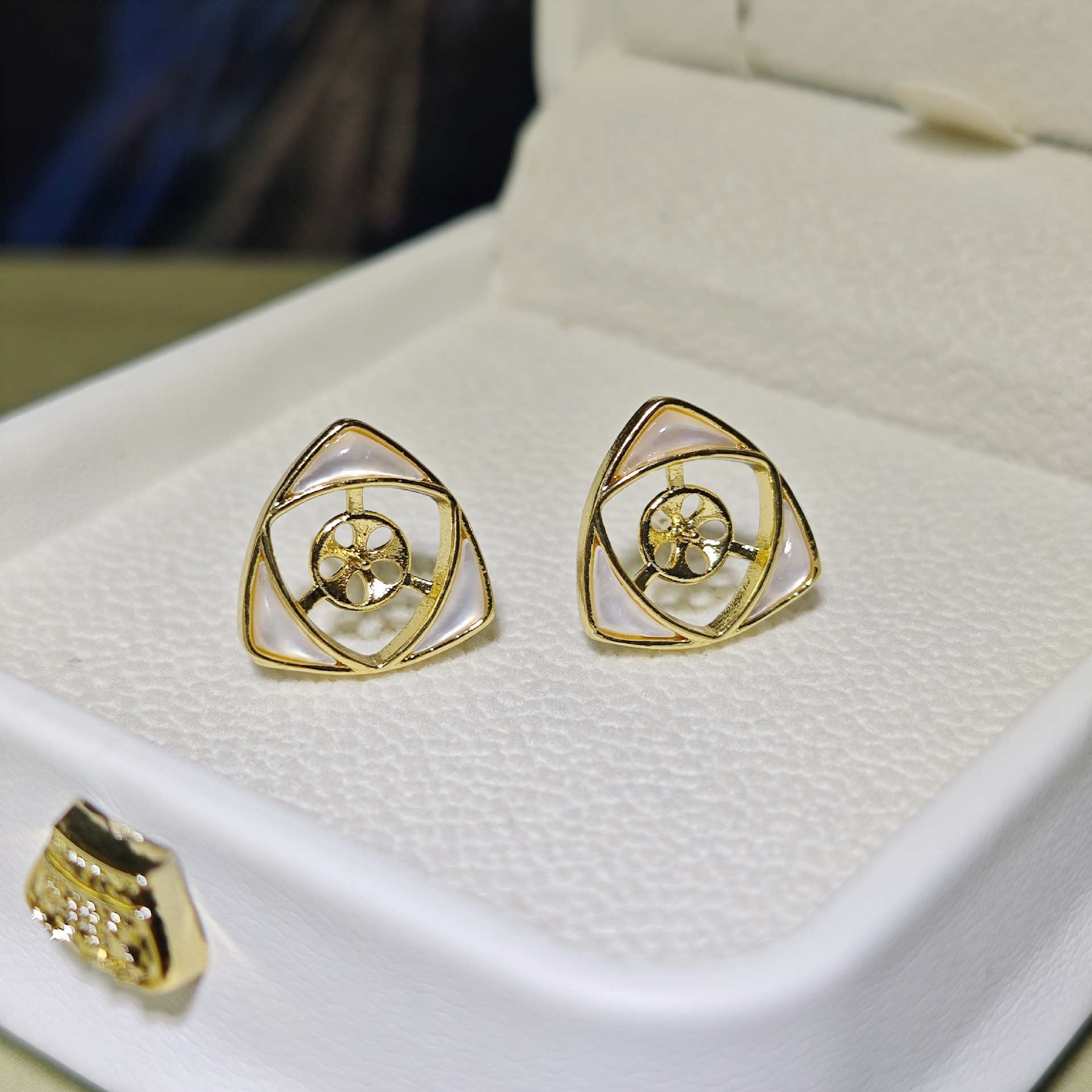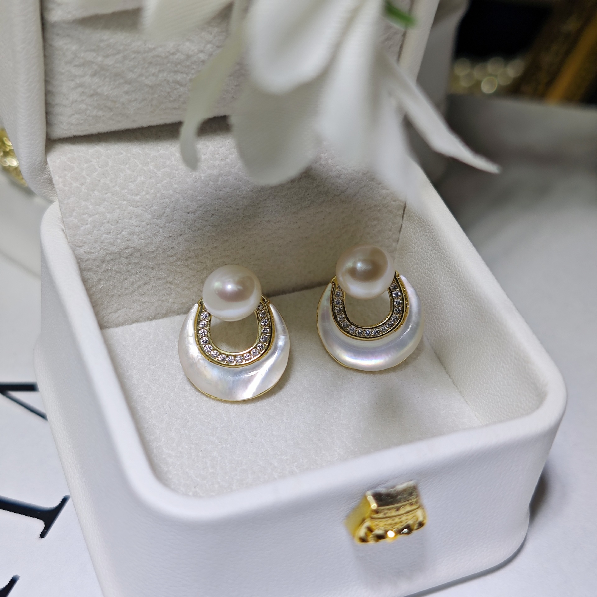 天然贝母手工DIY珍珠耳饰配件女真金电镀18K白金锆石珍珠耳钉空托