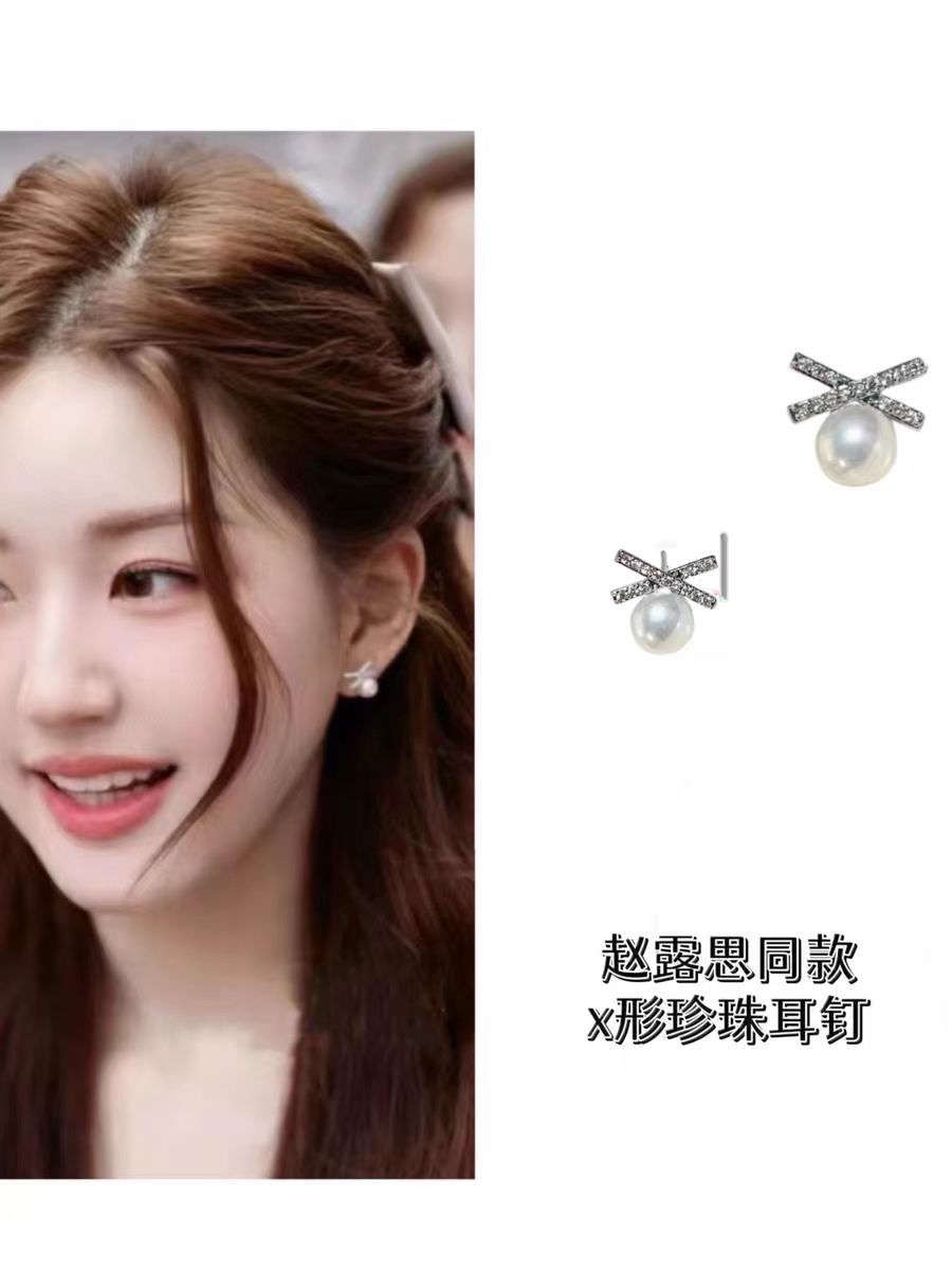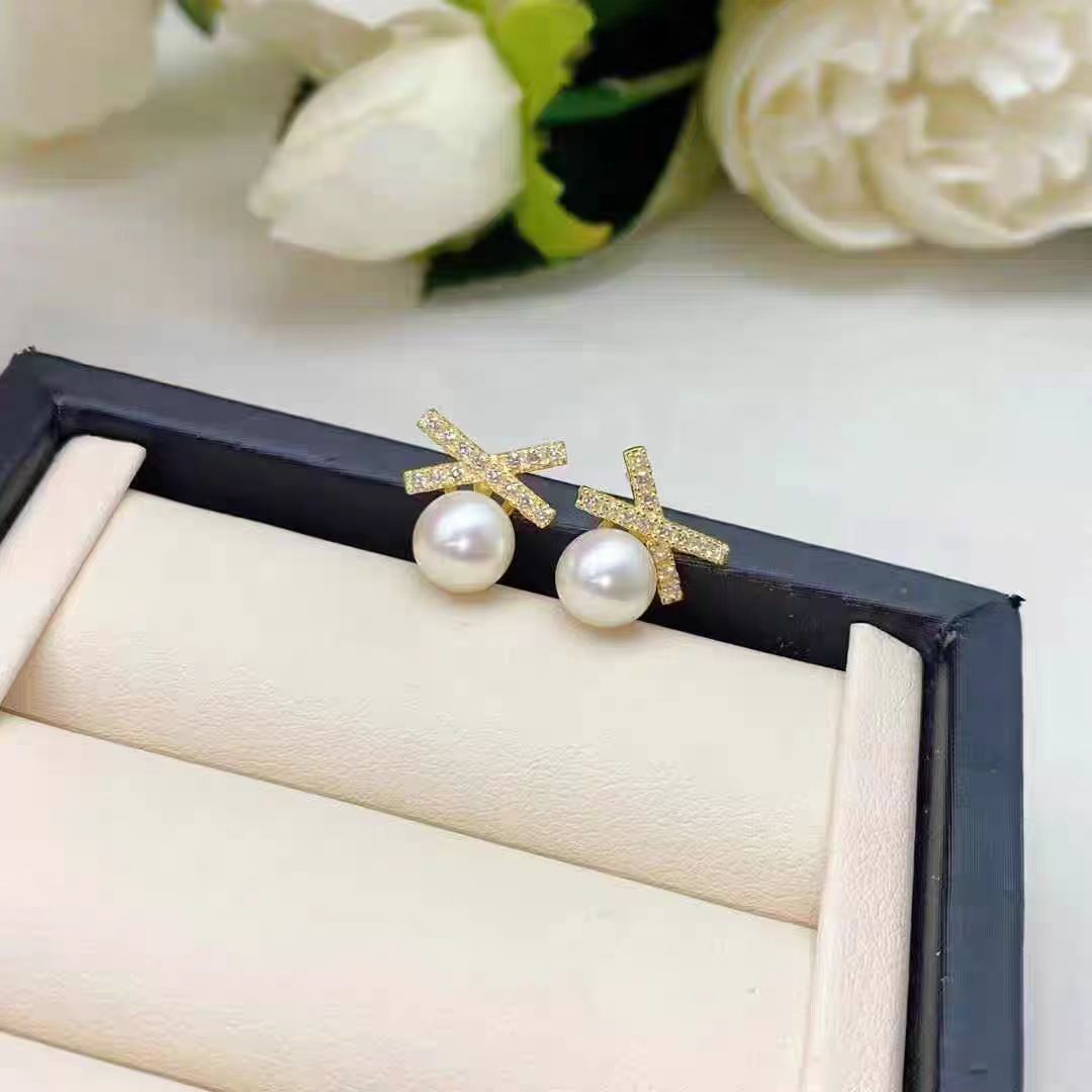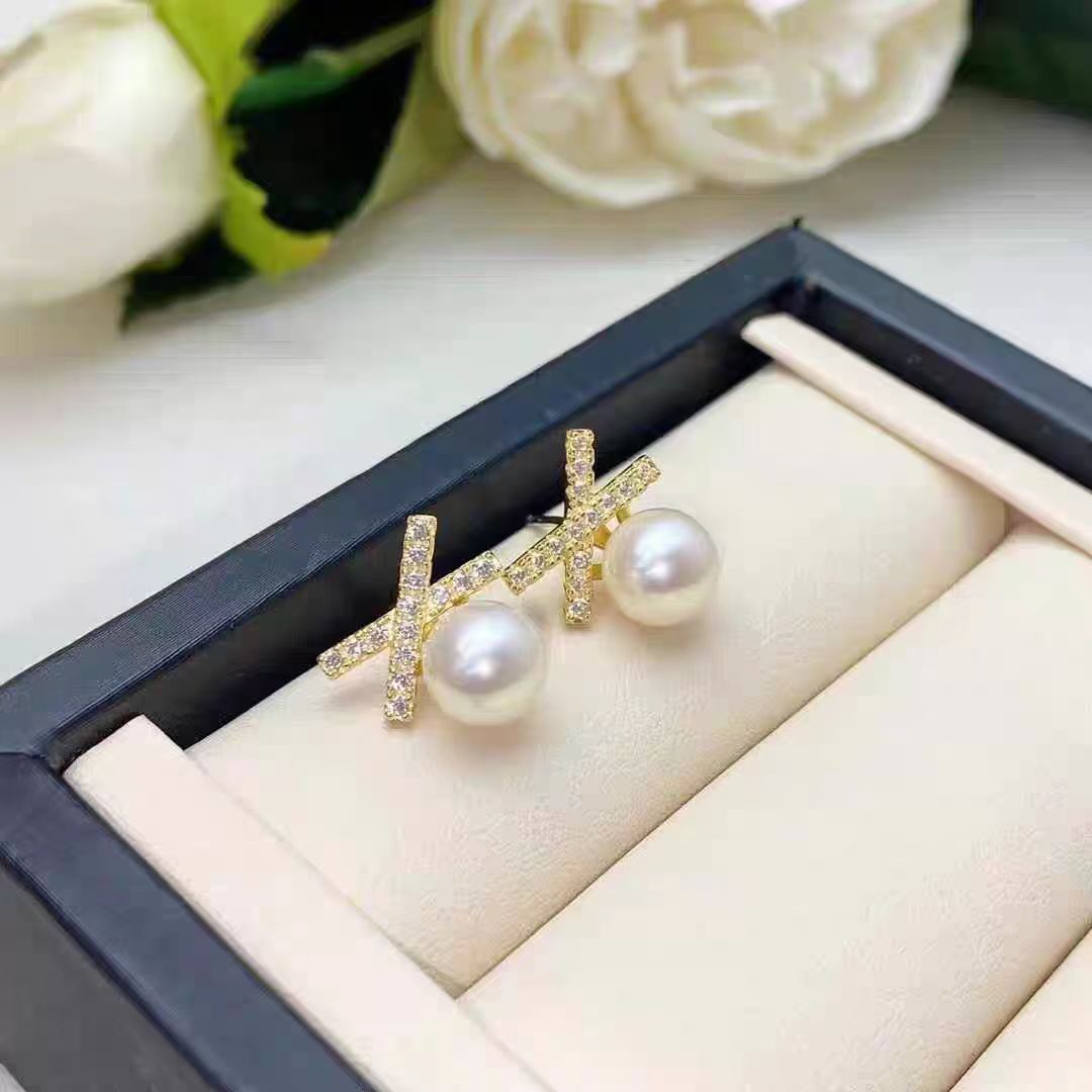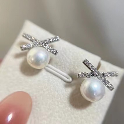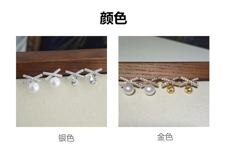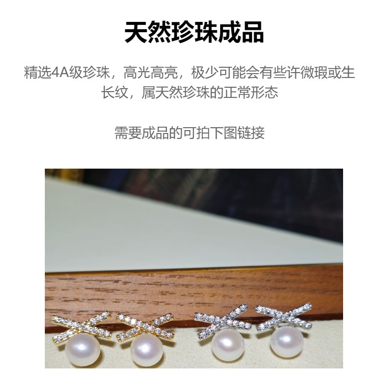 DIY耳钉配件 S925银针赵露思同款高保色珍珠耳钉空托耳饰批发